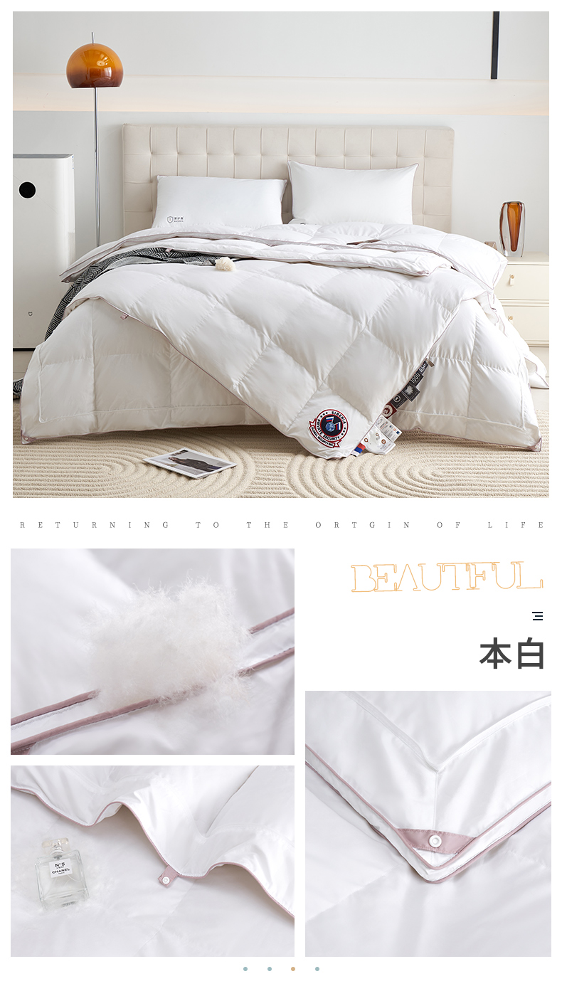 (总)岚司羽 新款全棉羽绒被子母被芯优质95%白鹅绒冬被,白色,豆沙色,灰色,香槟色