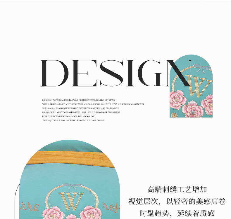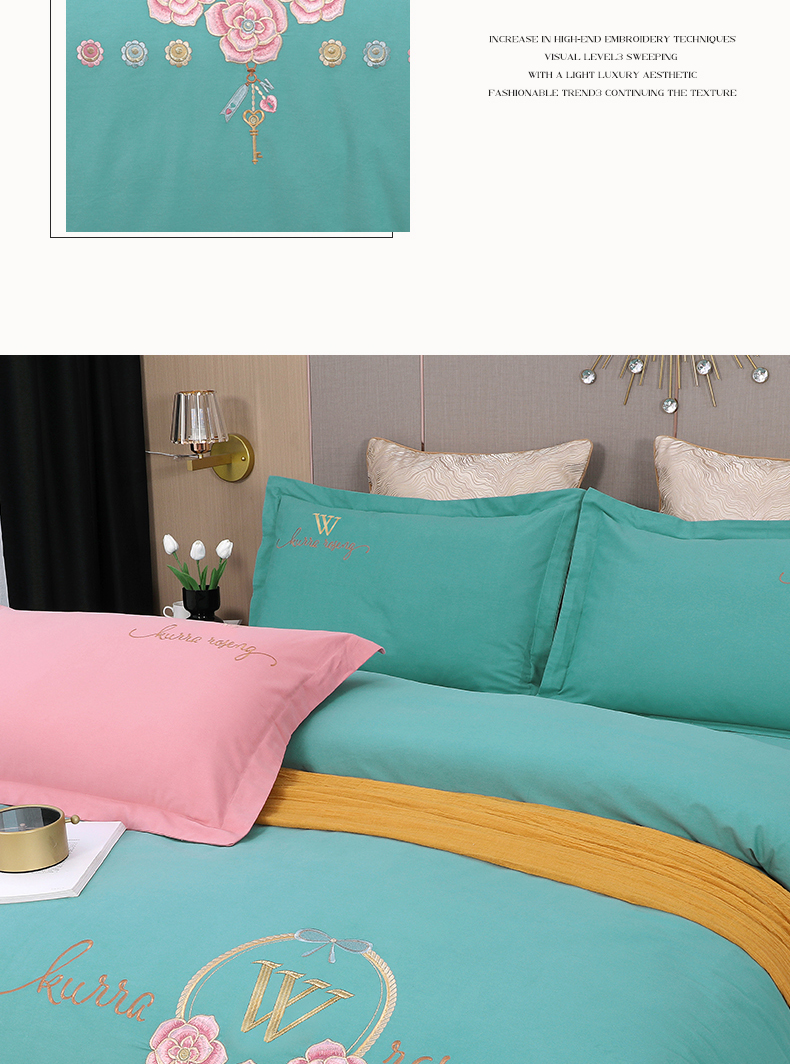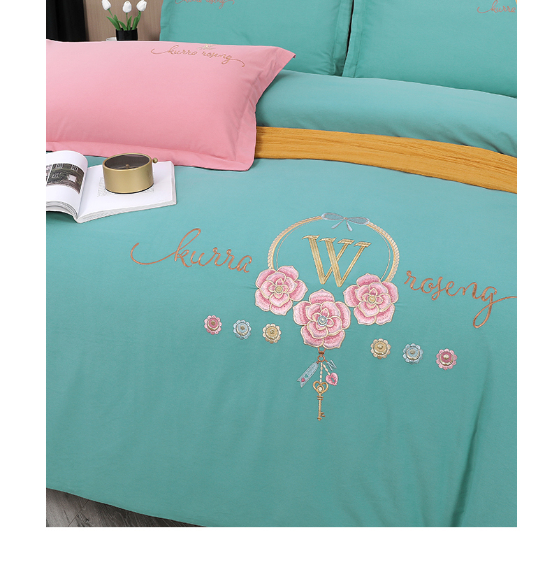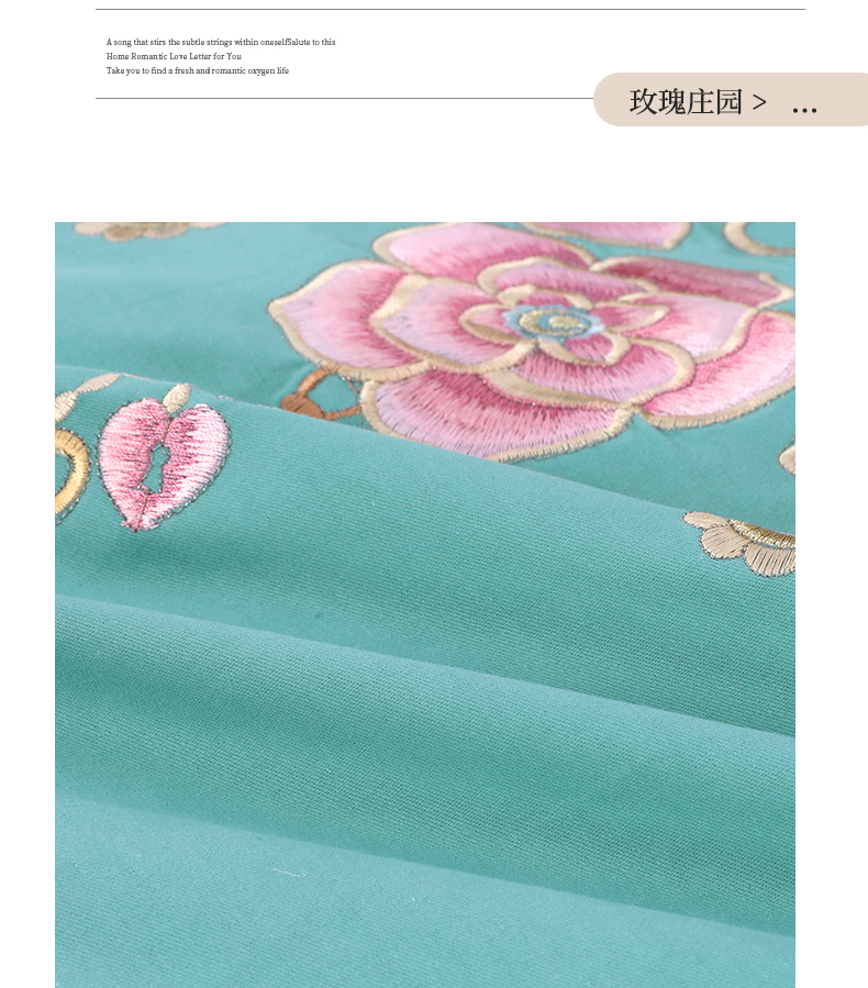 商品名称:2026秋冬新品全棉磨毛刺绣120支四件套系列-玫瑰庄园 玫瑰庄园-碧水兰