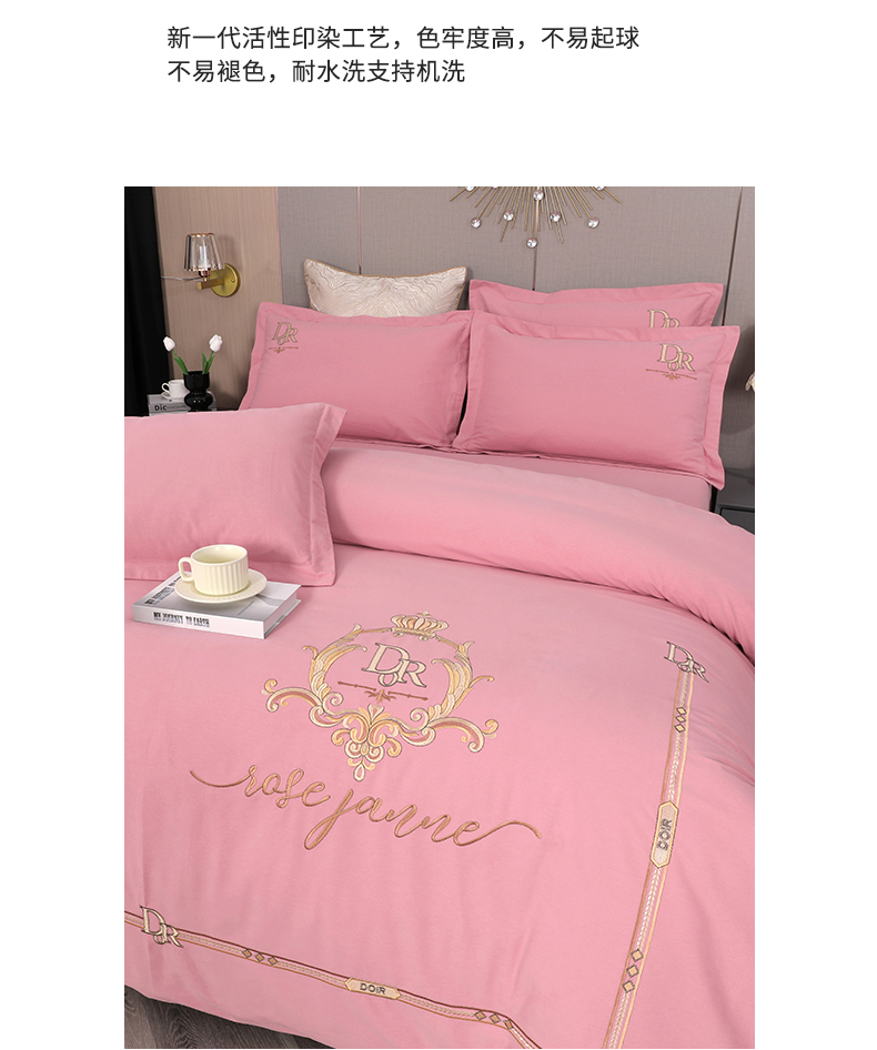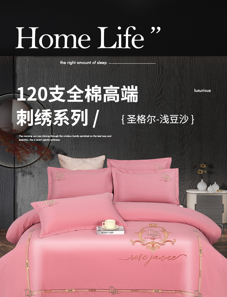 2026秋冬新品全棉磨毛刺绣120支四件套系列-圣格尔 圣格尔-浅豆沙