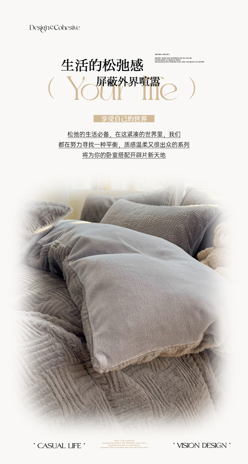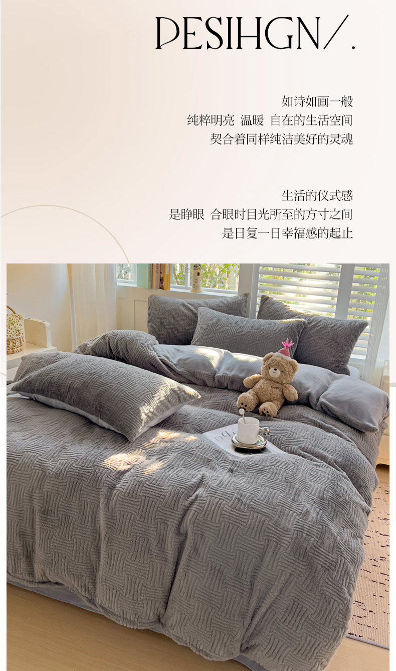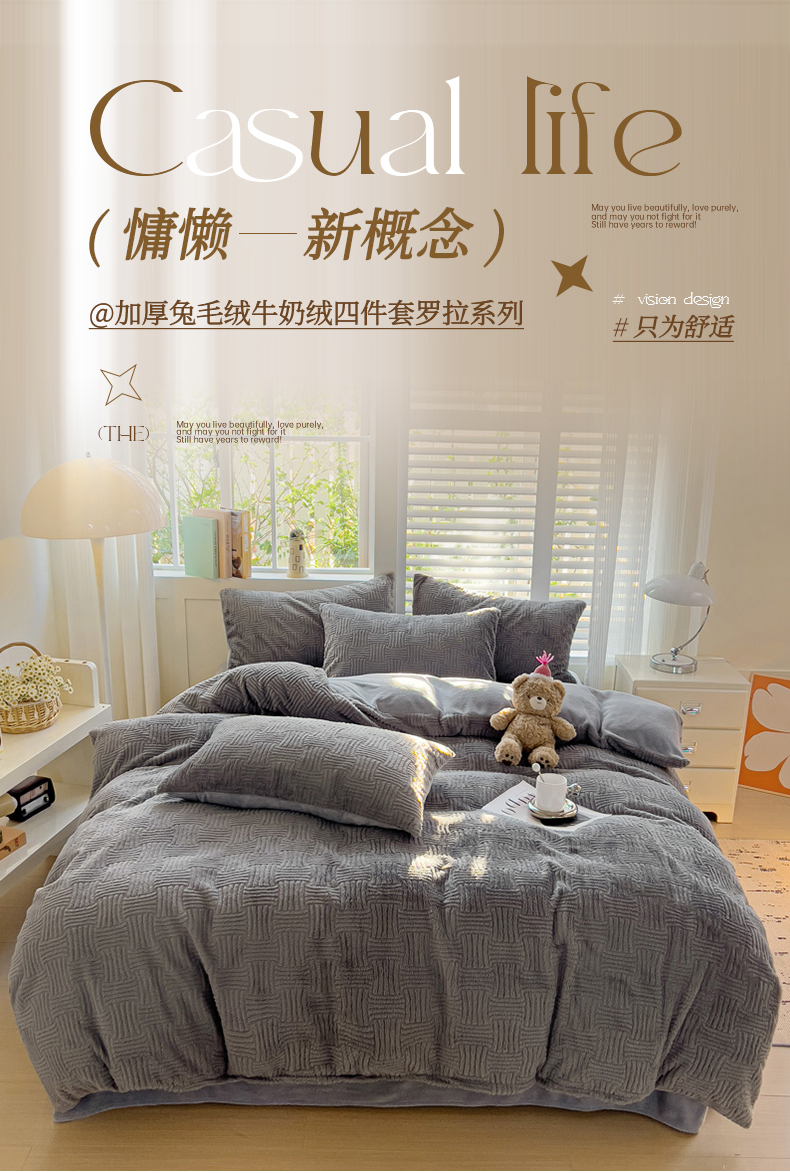 商品名称:N先生 2024新款兔毛绒牛奶绒四件套-罗拉系列 罗拉-灰
