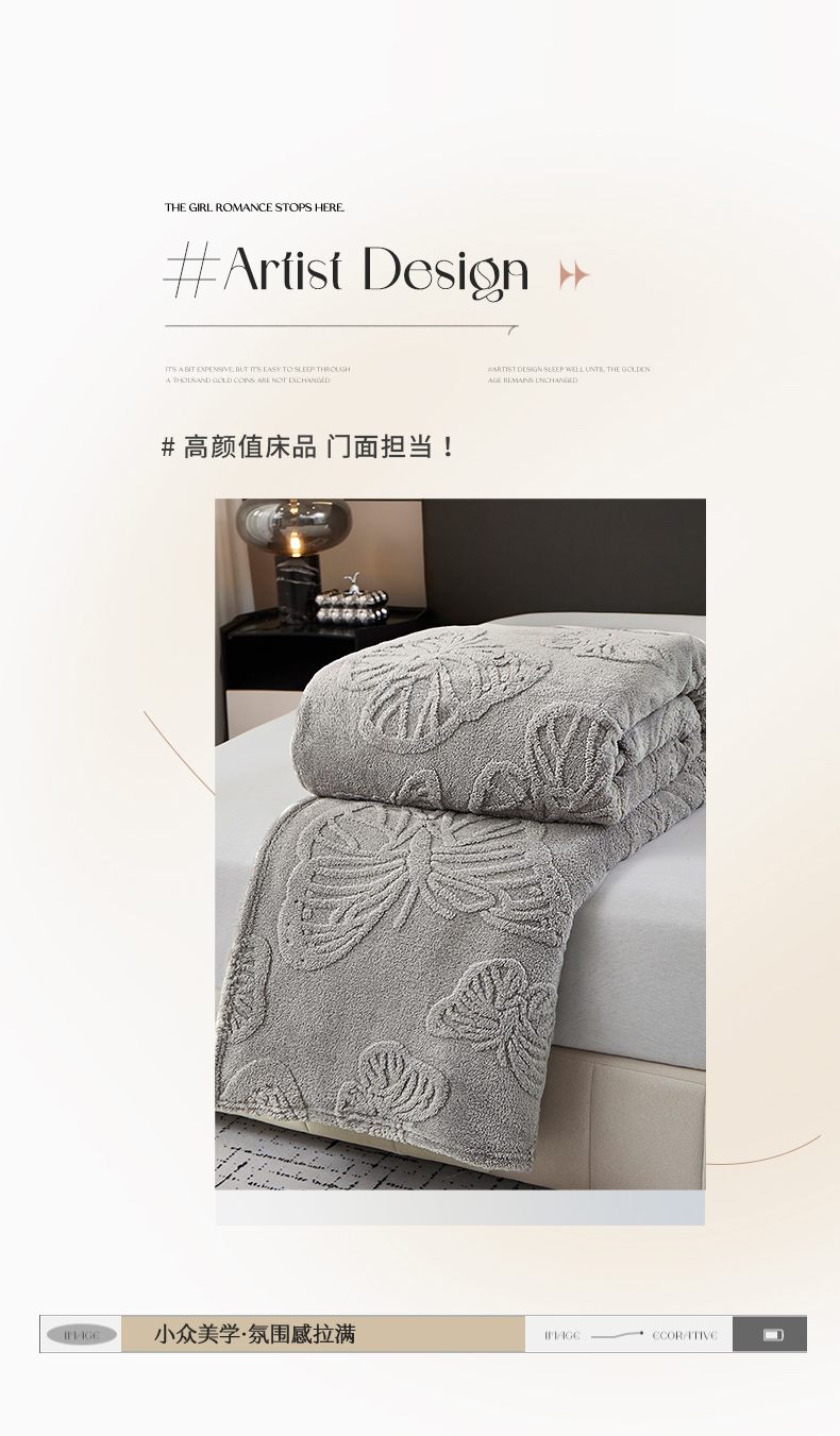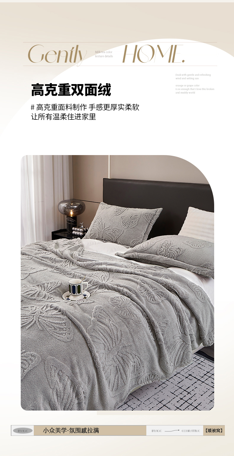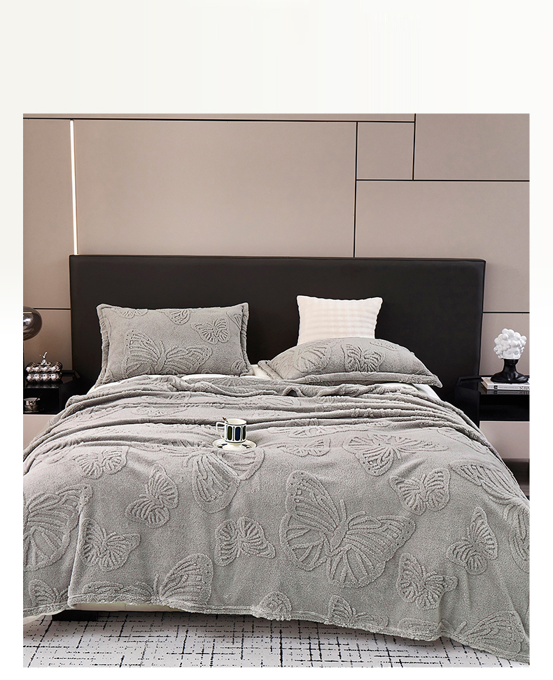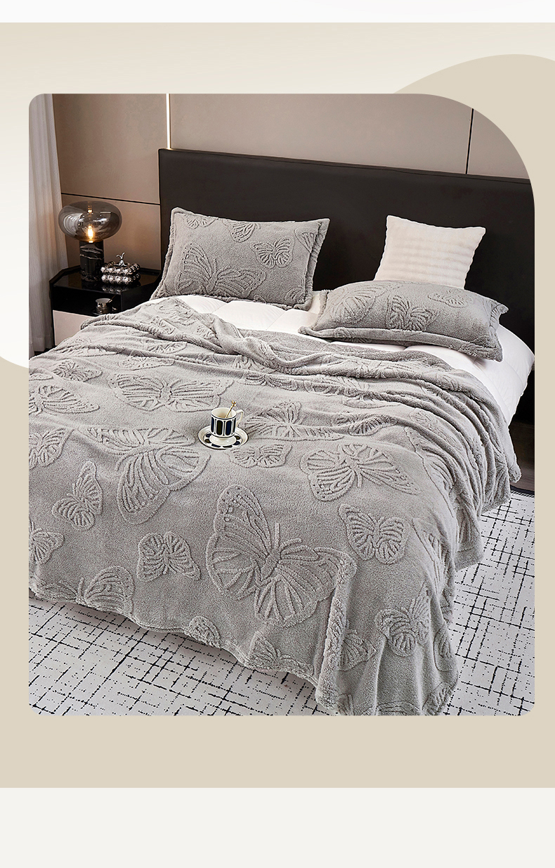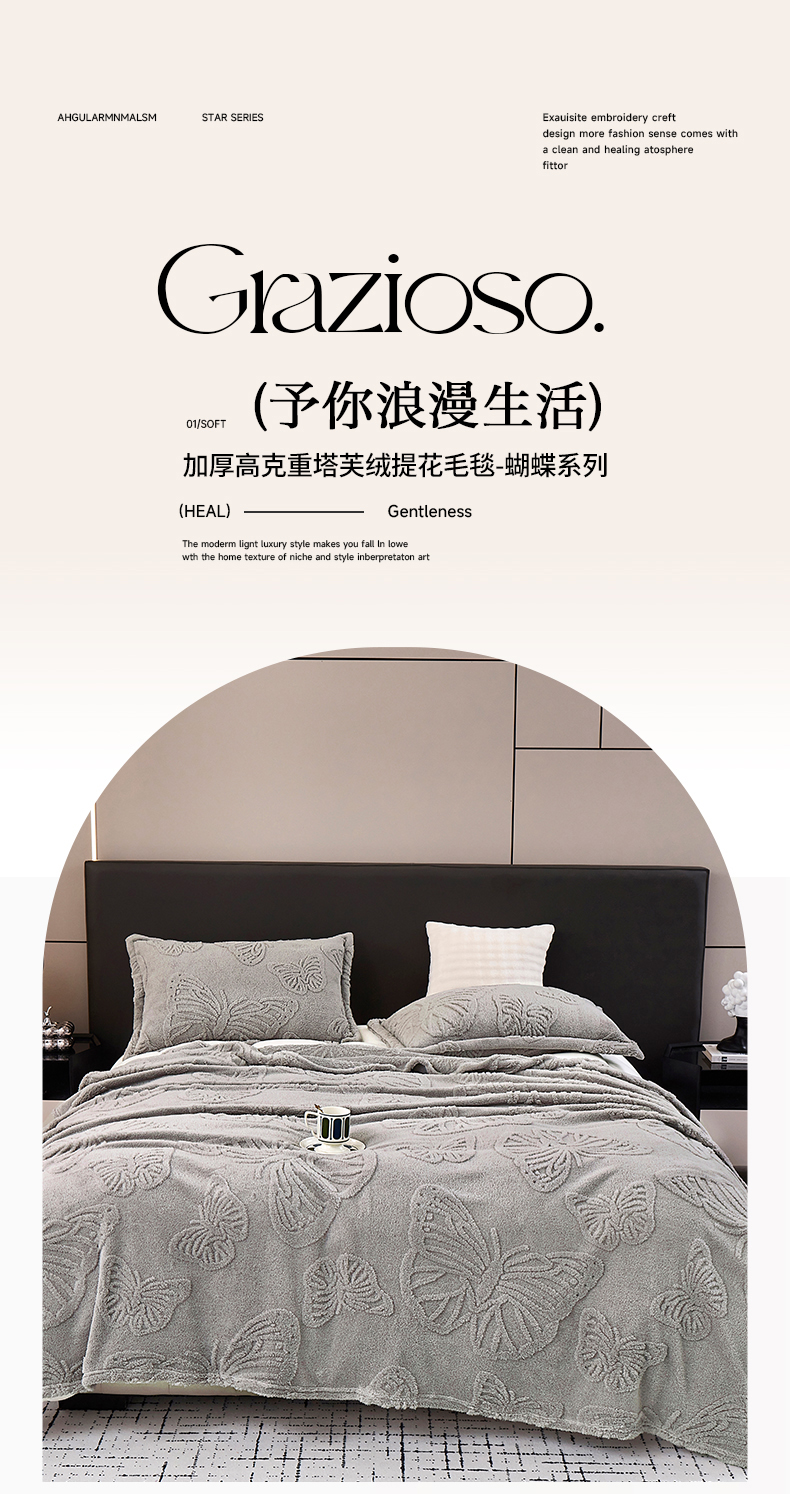 肖恩毯业 2025新款加厚高克重塔芙绒提花毛毯-蝴蝶系列 蝴蝶-浅灰色