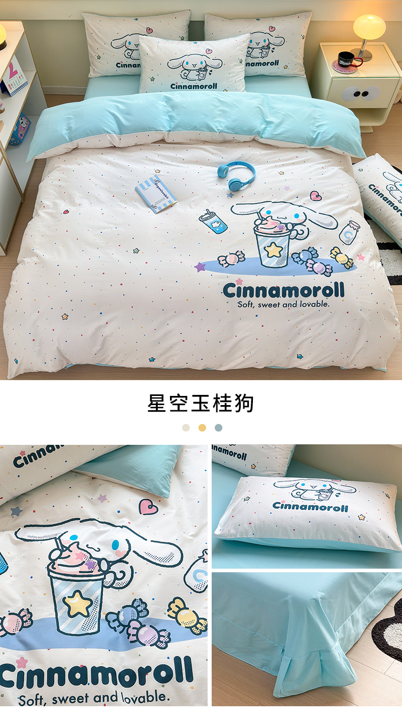 当前位置: 91家纺网 > 商品网购 > 床品套件 > 四件套 > 全棉活性四件套 > 孩子王家纺 2025新款三丽鸥系列全棉活性大版印花卡通学生宿舍四件套(第二批) 星空玉桂狗