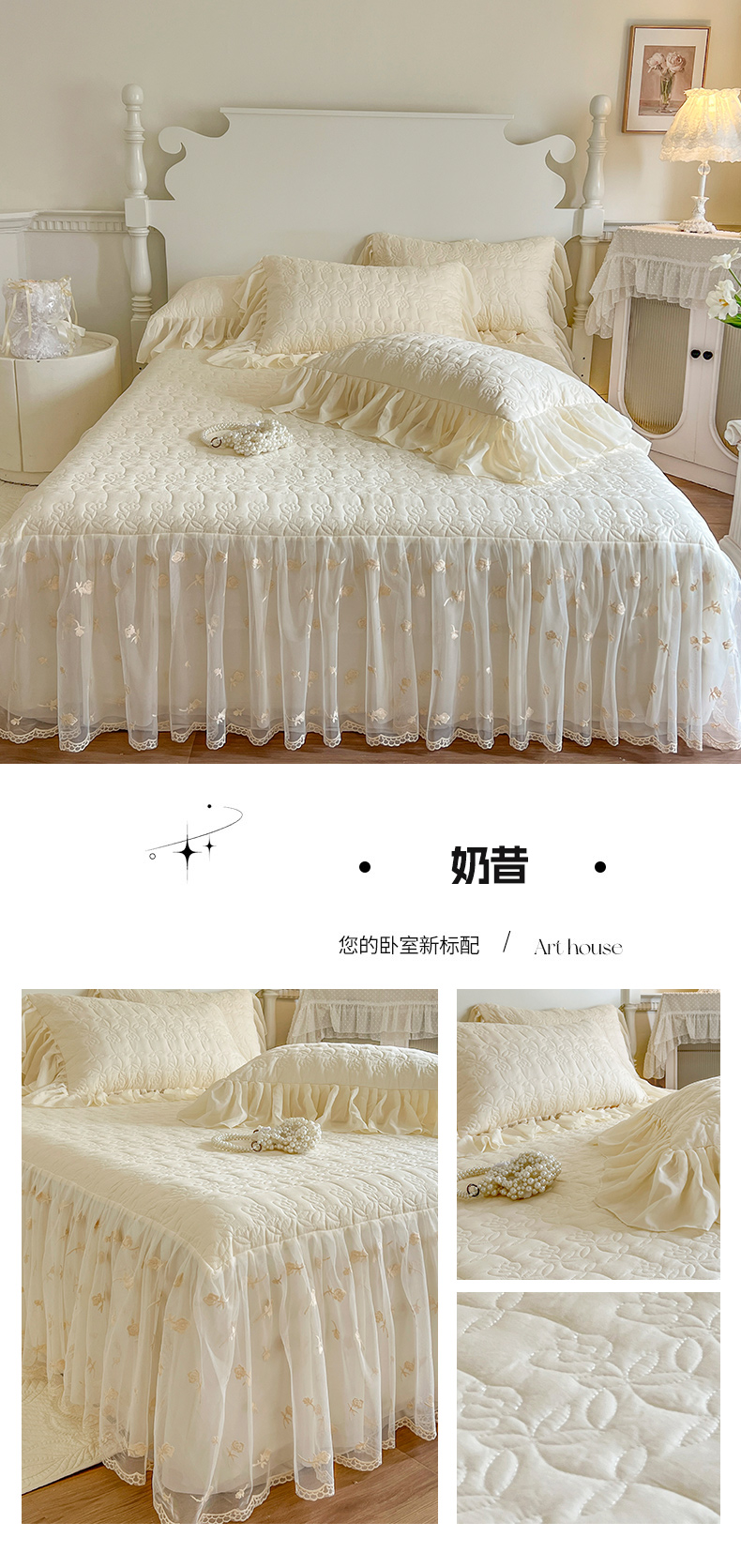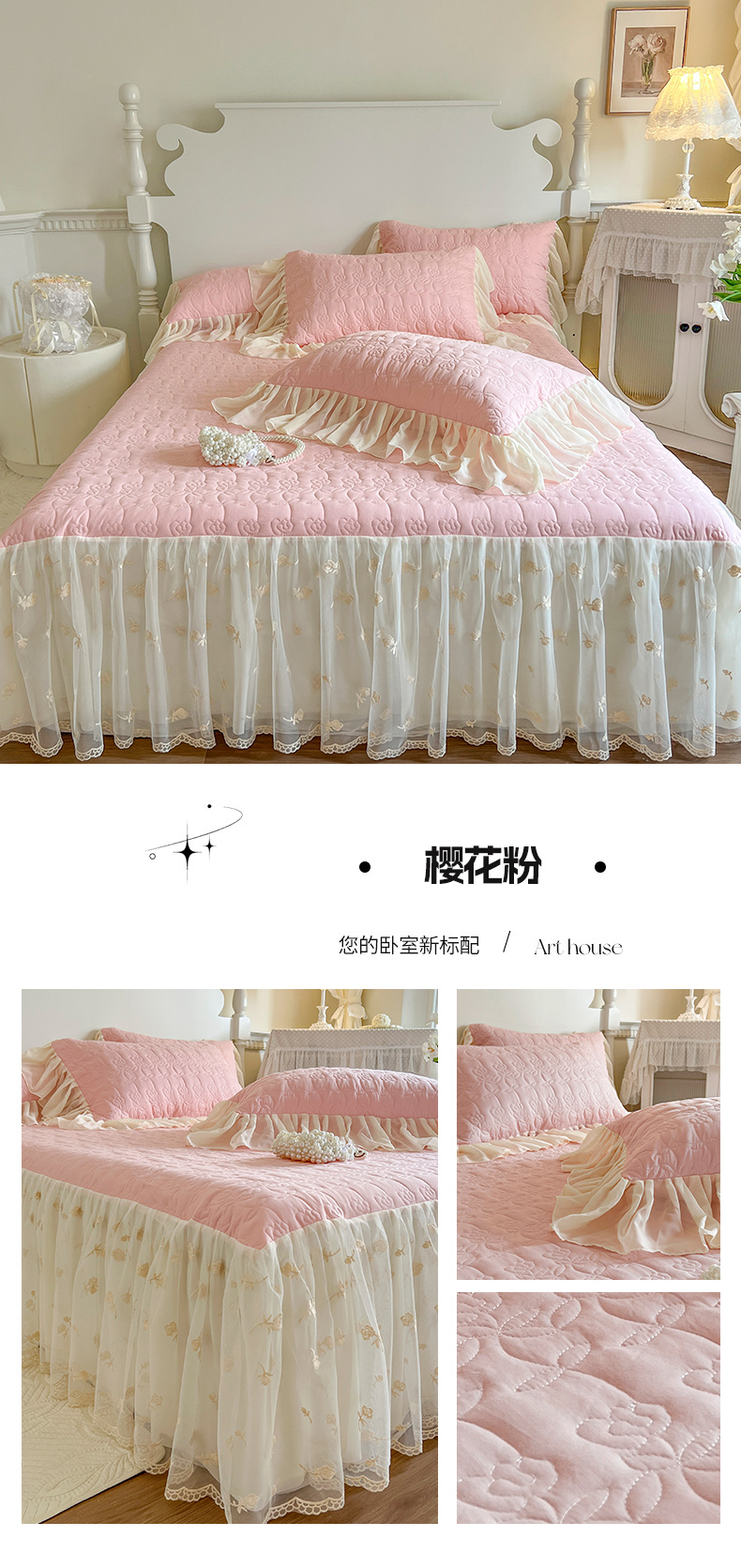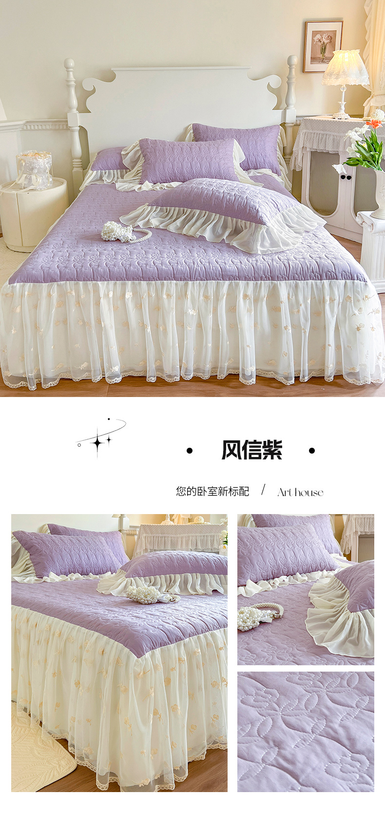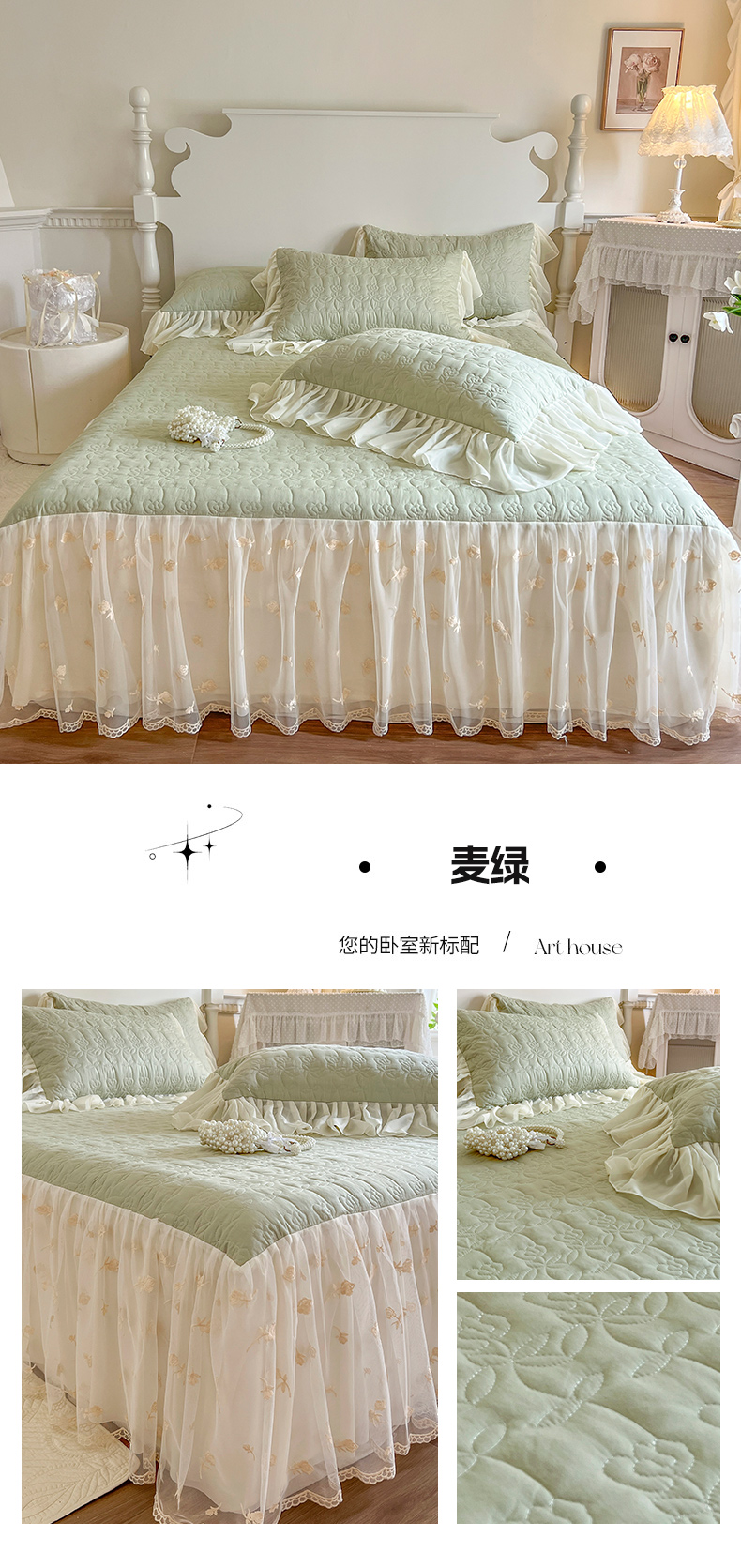(总)网红馆(ck家纺) 2025新款牛奶绒花边床盖四件套-甜蜜蜜,甜蜜蜜-粉,甜蜜蜜-咖,甜蜜蜜-绿,甜蜜蜜-米,甜蜜蜜-紫