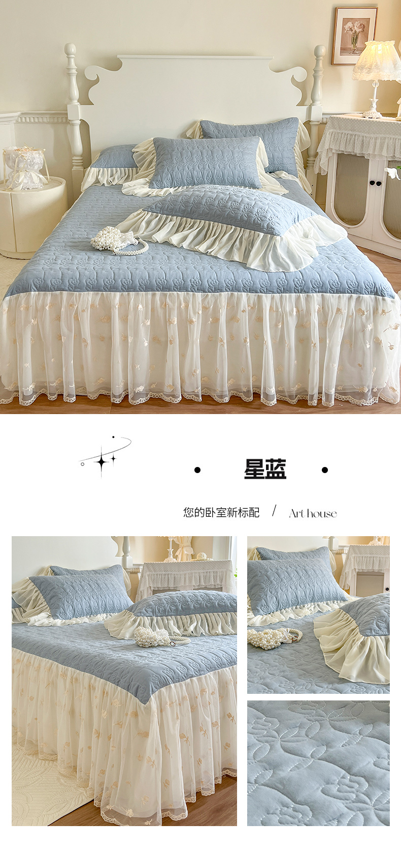 (总)网红馆(ck家纺) 2025新款色织提花牛奶绒床裙四件套-洛丽塔系列,洛丽塔-豆沙,洛丽塔-蓝色,洛丽塔-米色
