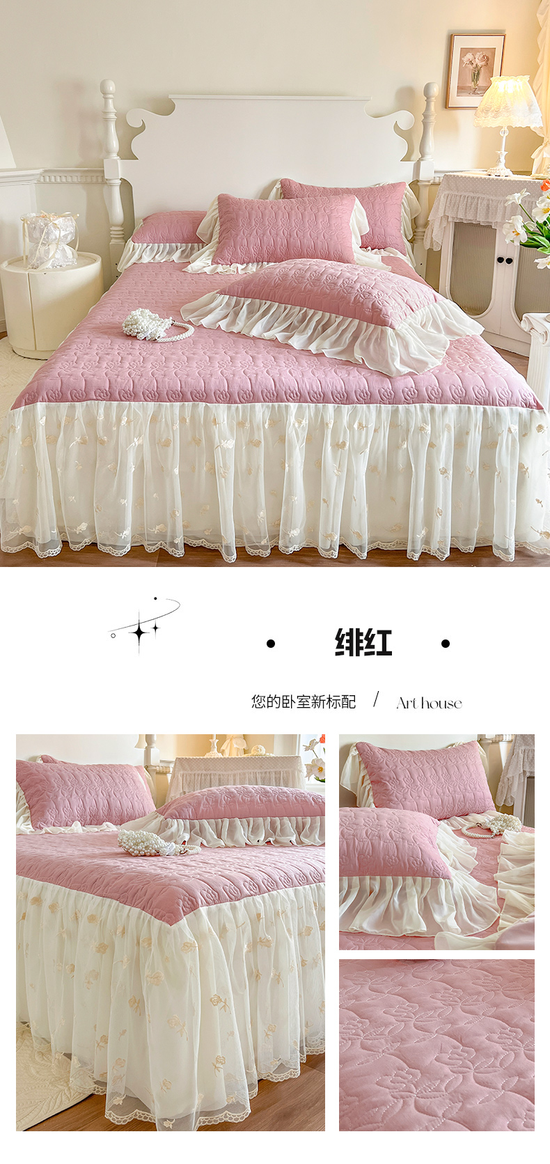 (总)网红馆 2025新款全棉床裙三件套-玫瑰花园