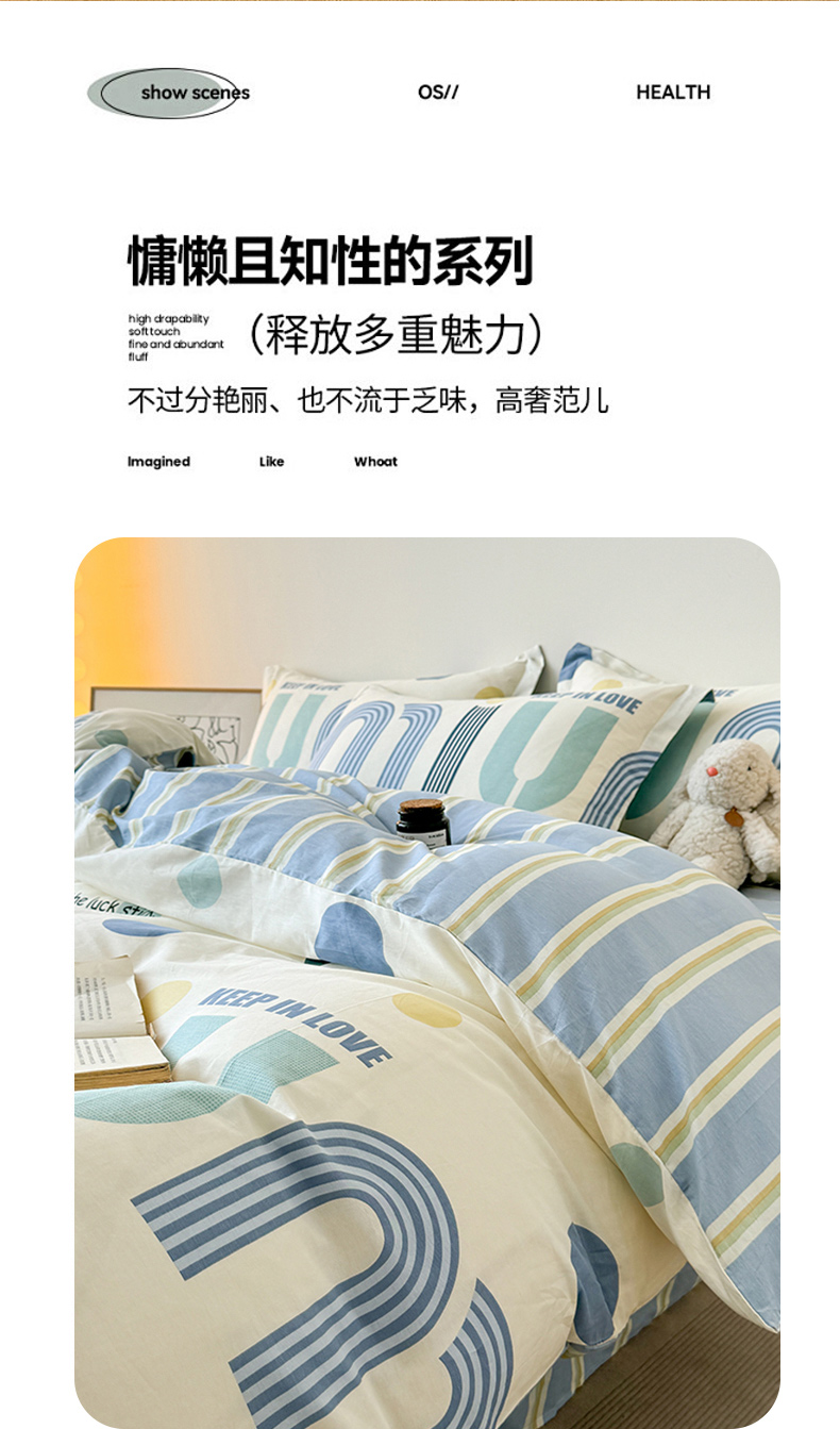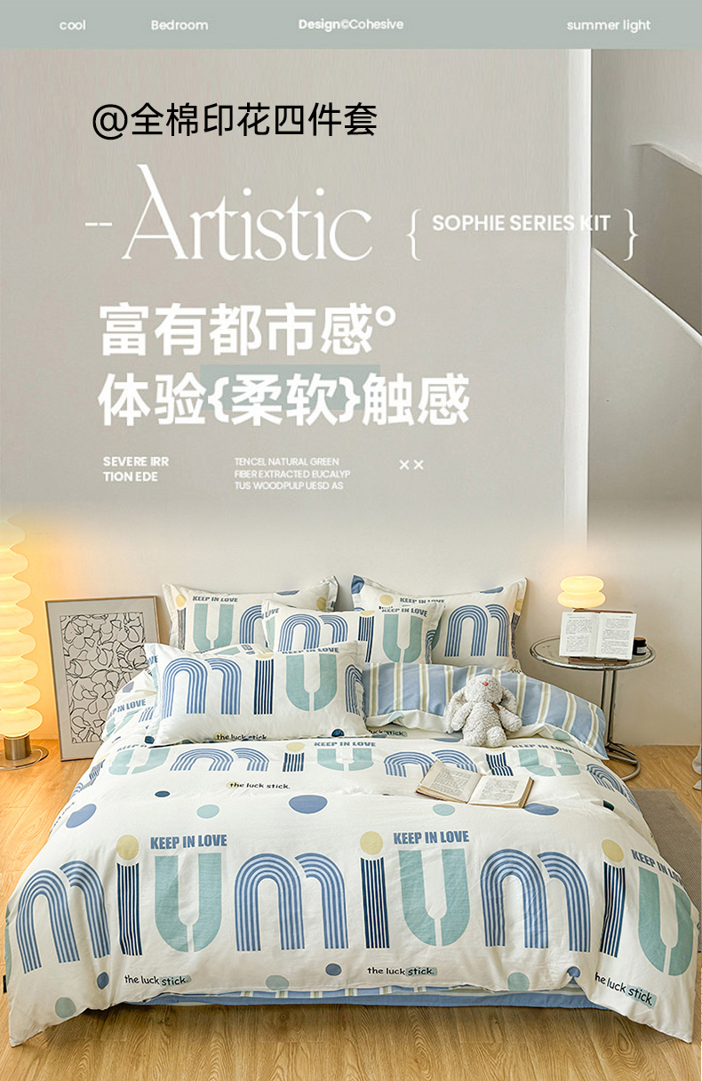 商品名称:慕木家纺 2025新款全棉印花四件套 慕白