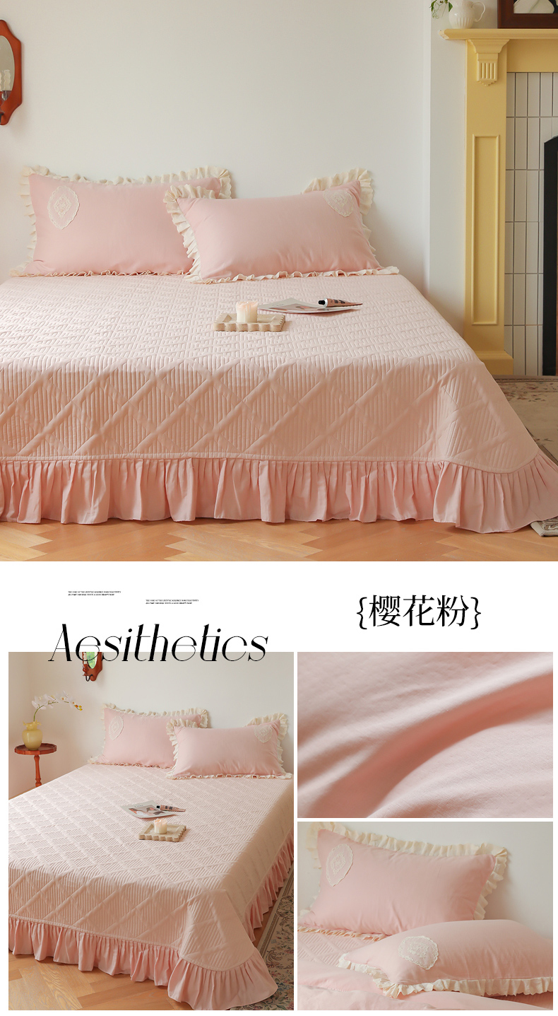 商品名称:菊上 2024新款复古法式蕾丝贴布款全棉双层纱床盖款三件套 樱花粉