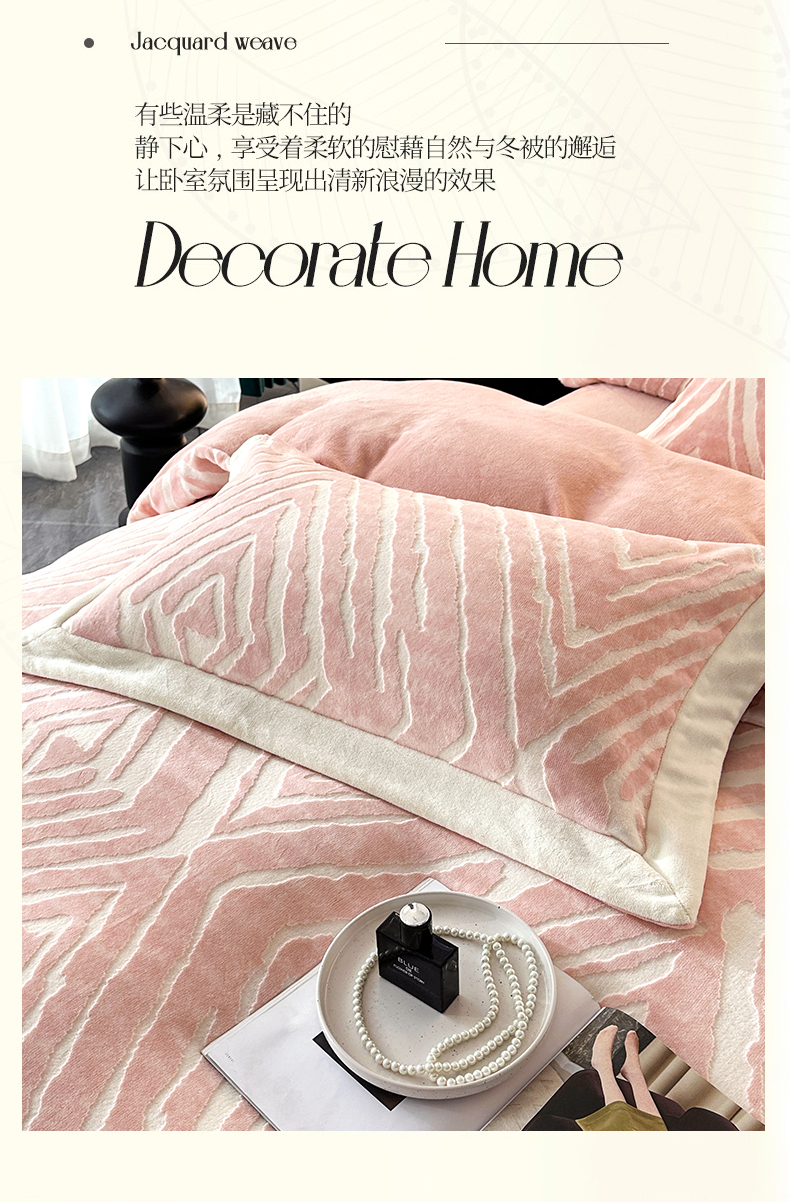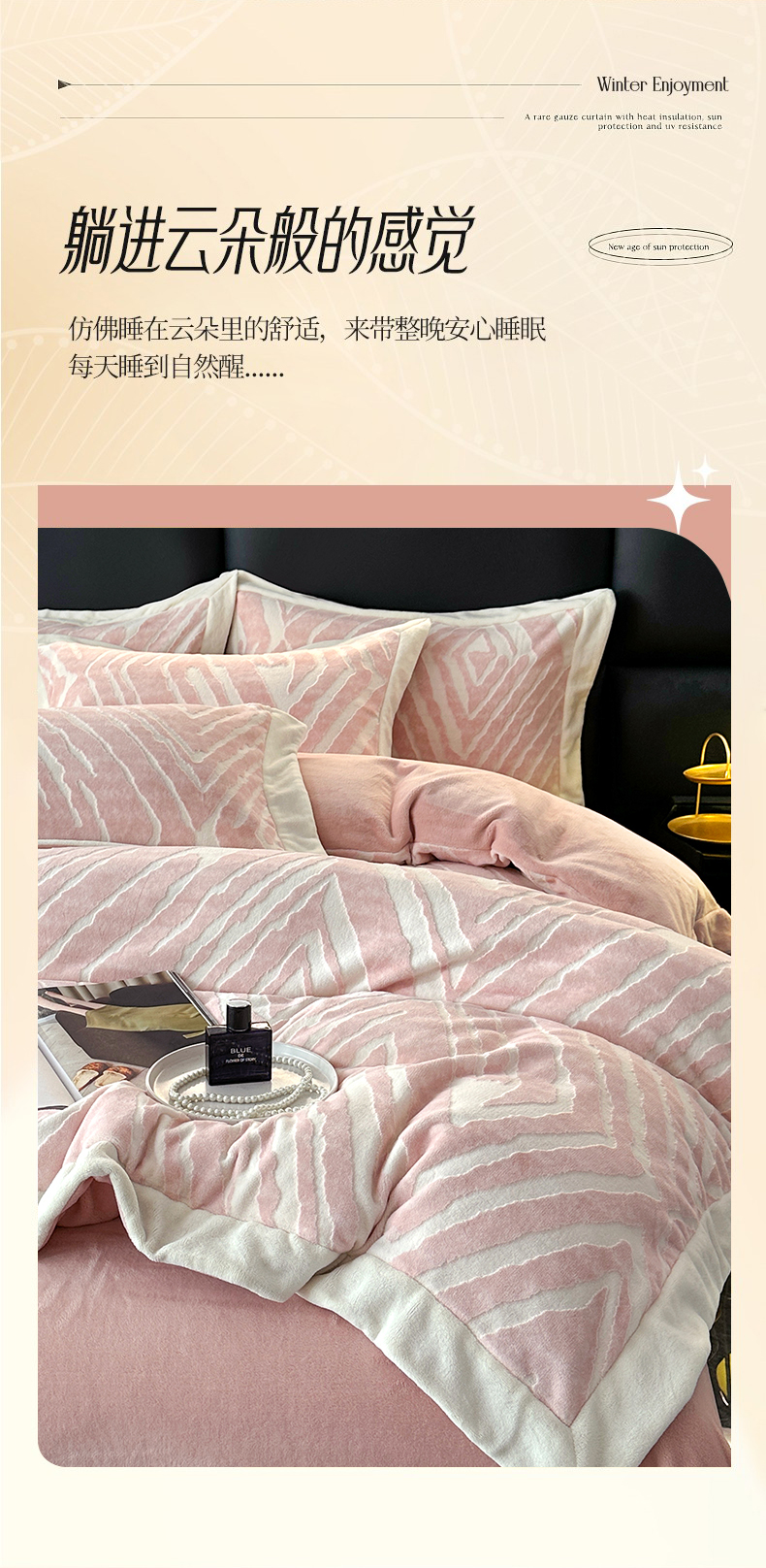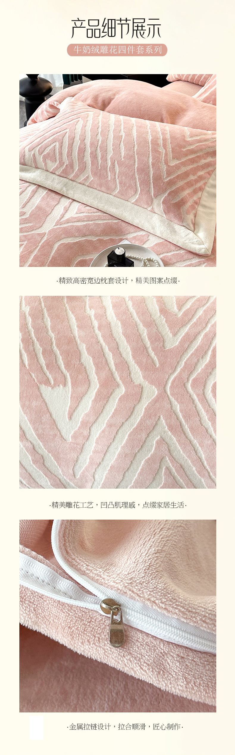 商品名称:羽梦家纺 2024新款牛奶绒雕花四件套 巴洛克-樱花粉