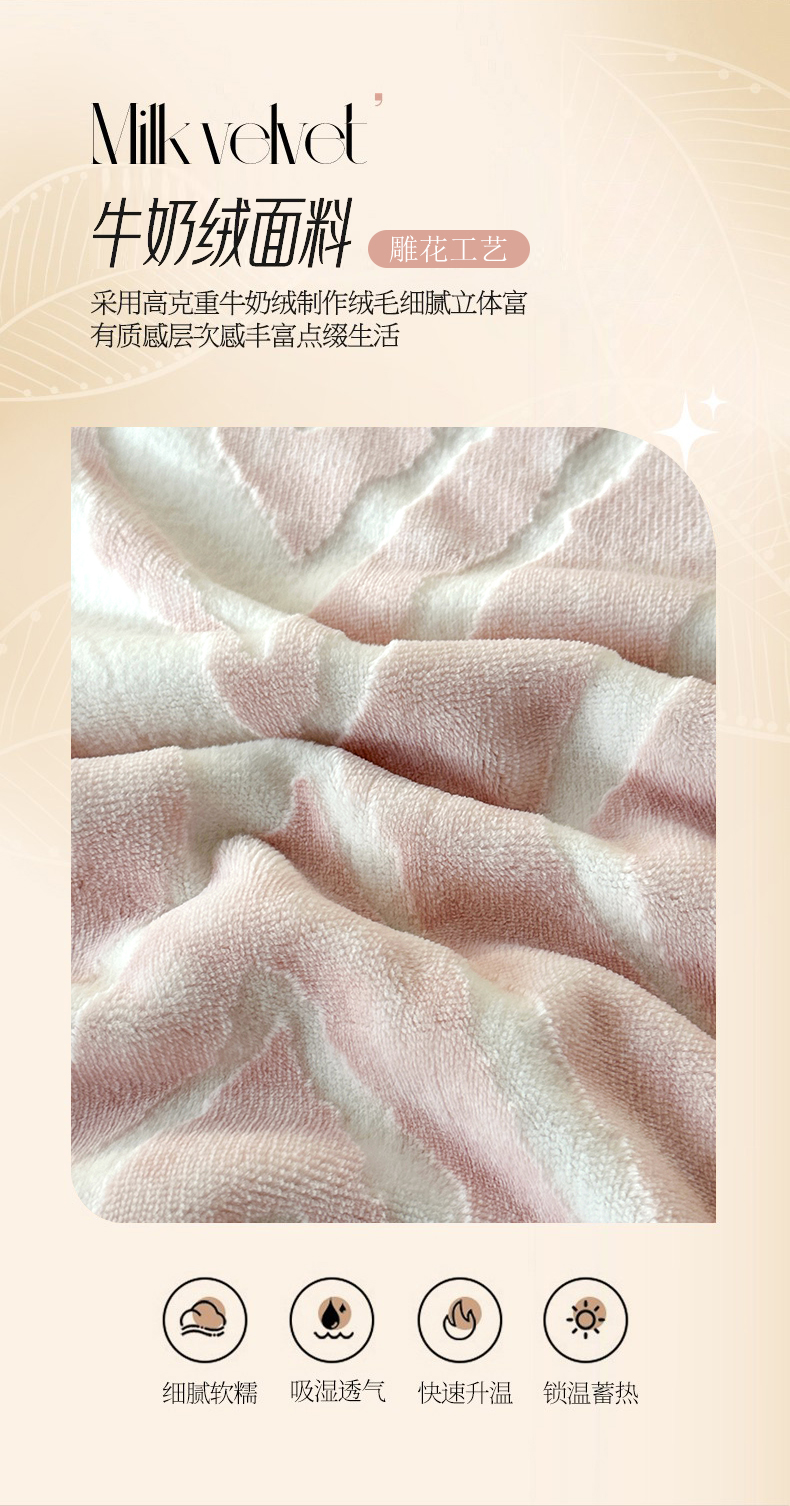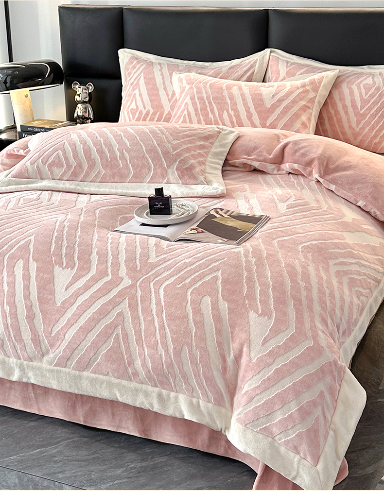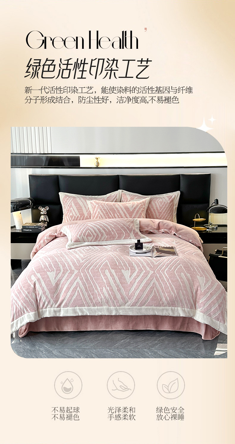 商品名称:羽梦家纺 2024新款牛奶绒雕花四件套 巴洛克-樱花粉