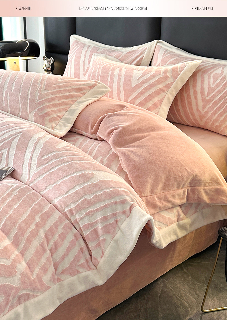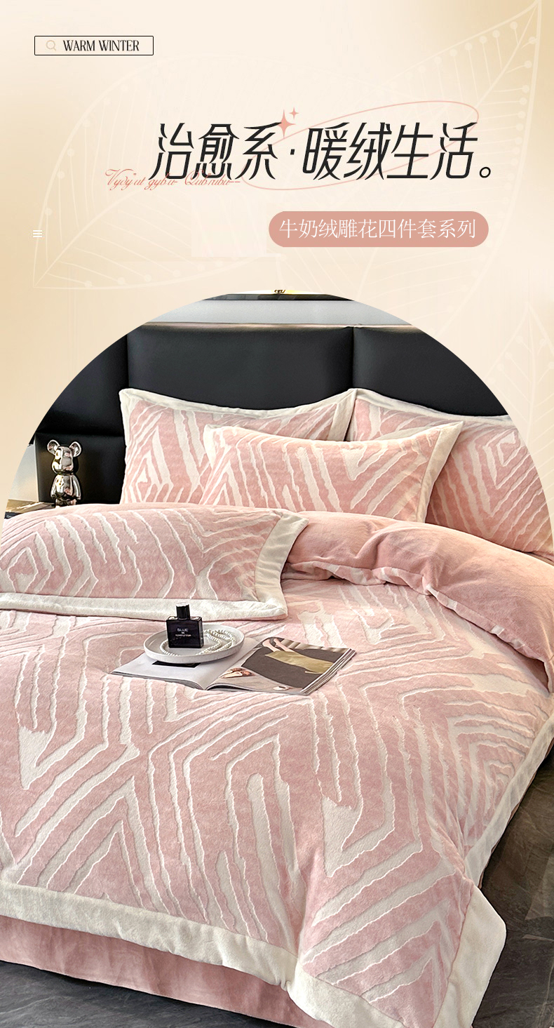 羽梦家纺 2024新款牛奶绒雕花四件套 巴洛克-樱花粉