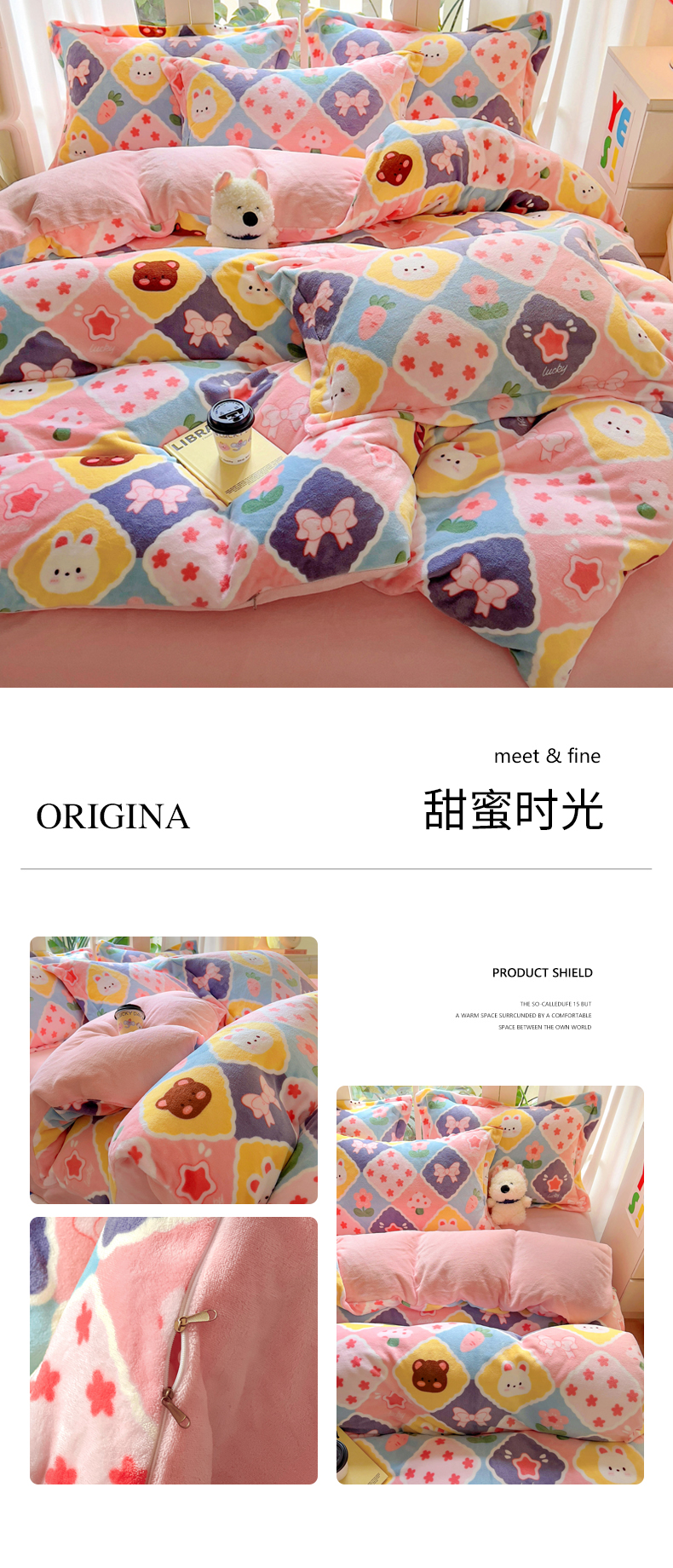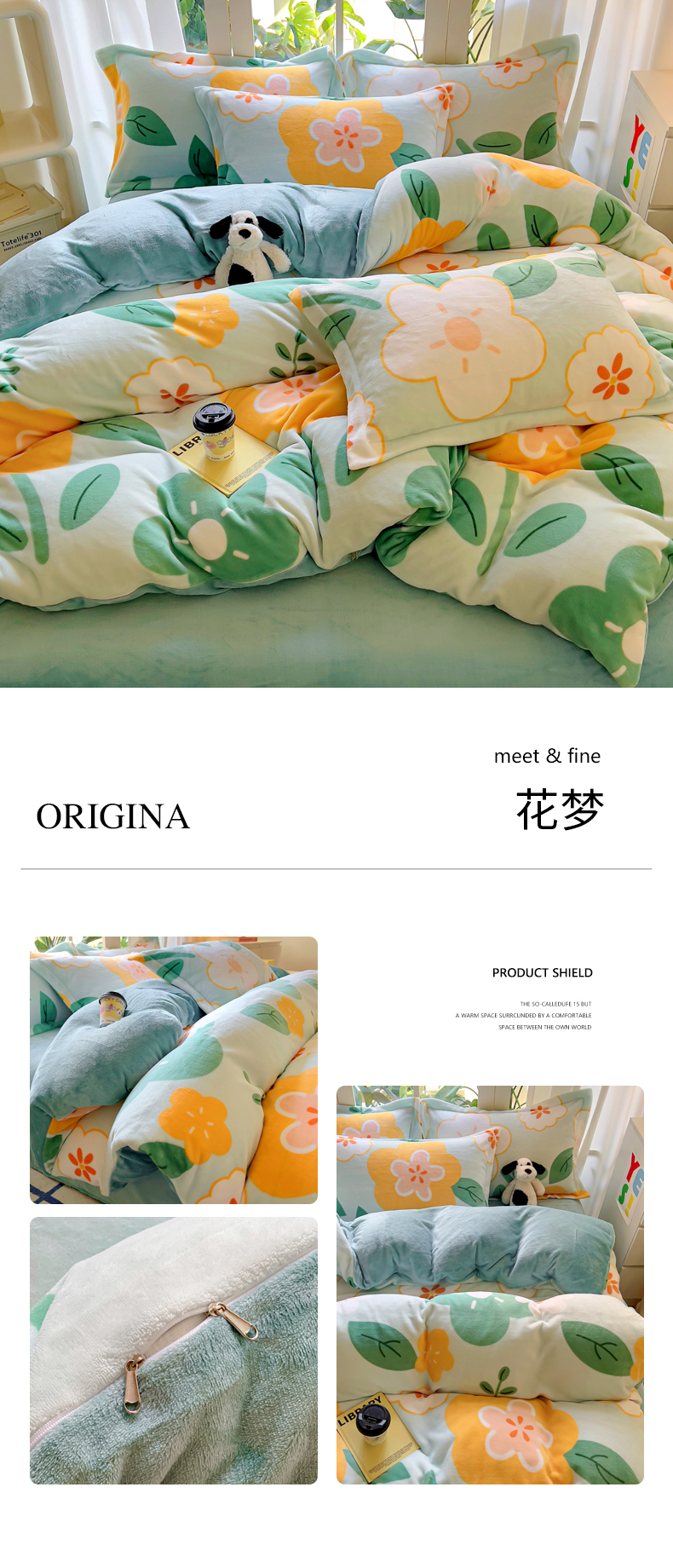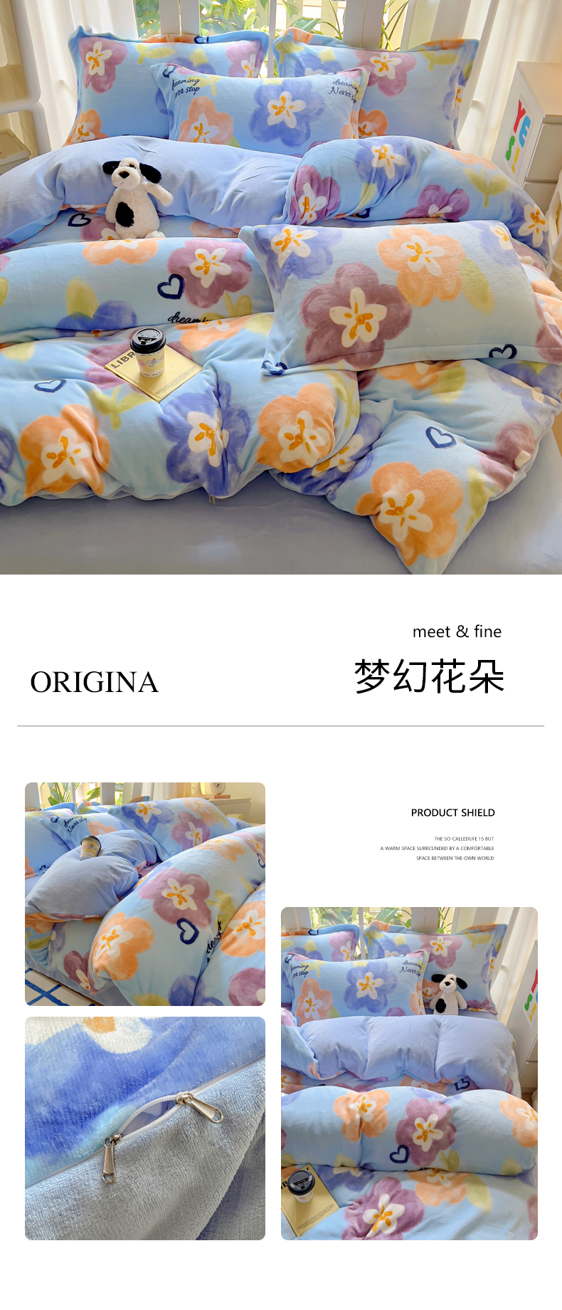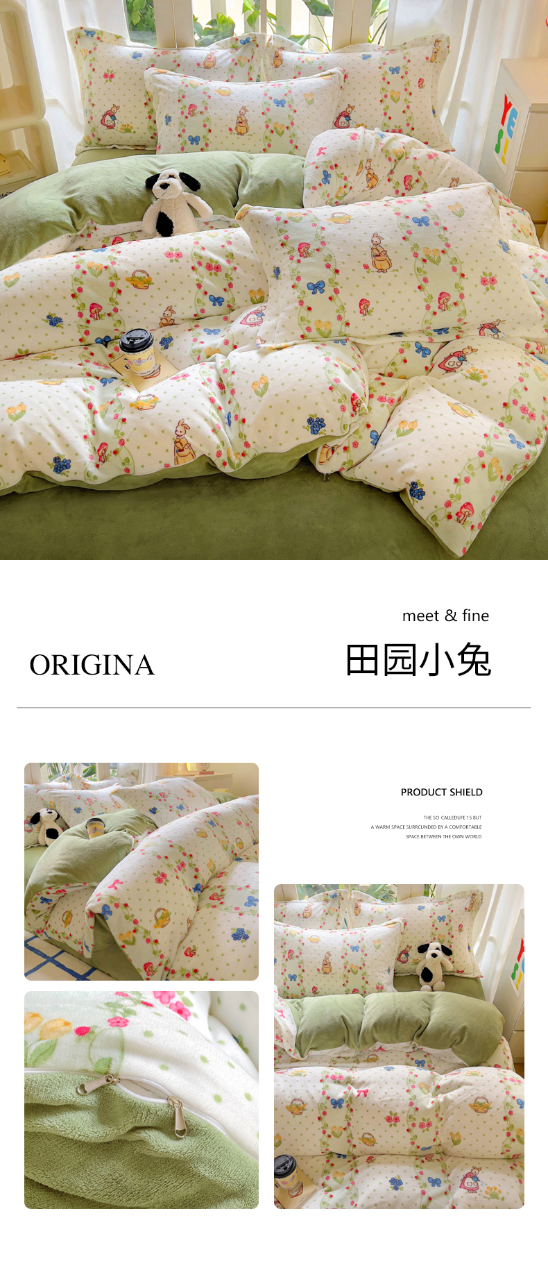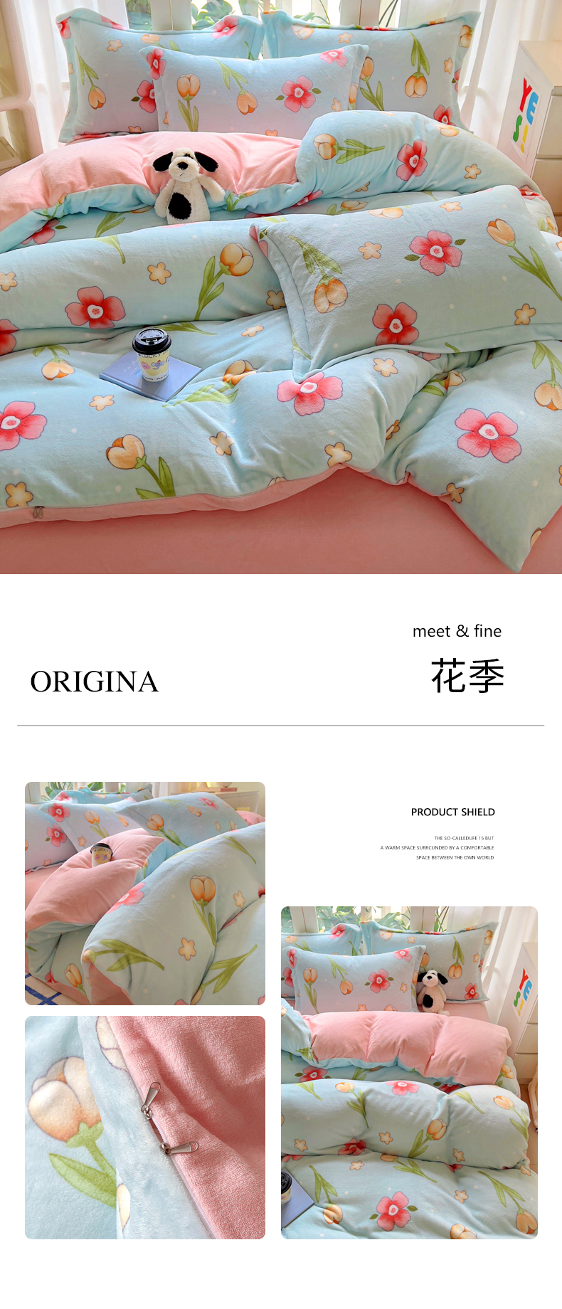 商品名称:(总)丝羽坊 2024新款加厚小清新牛奶绒印花四件套单被套床笠四件套-场景二