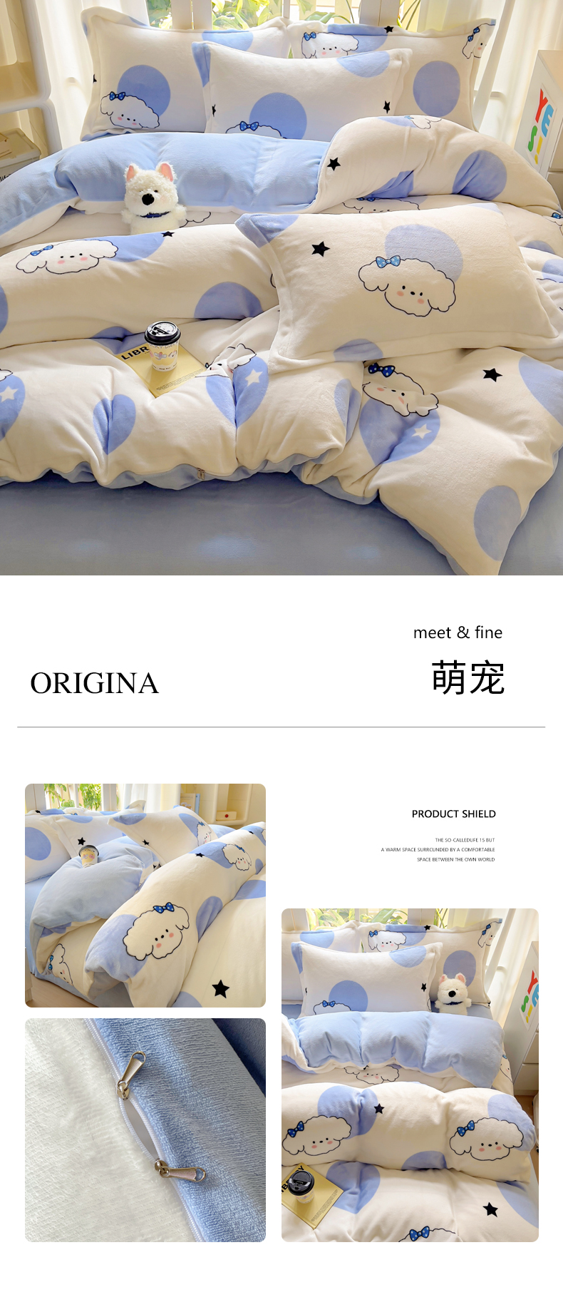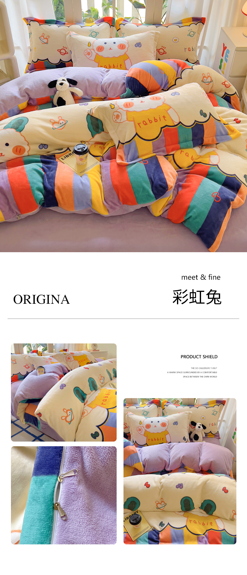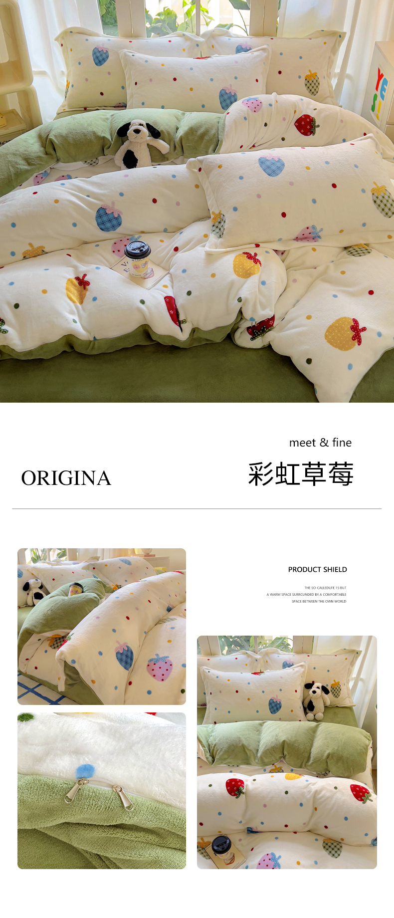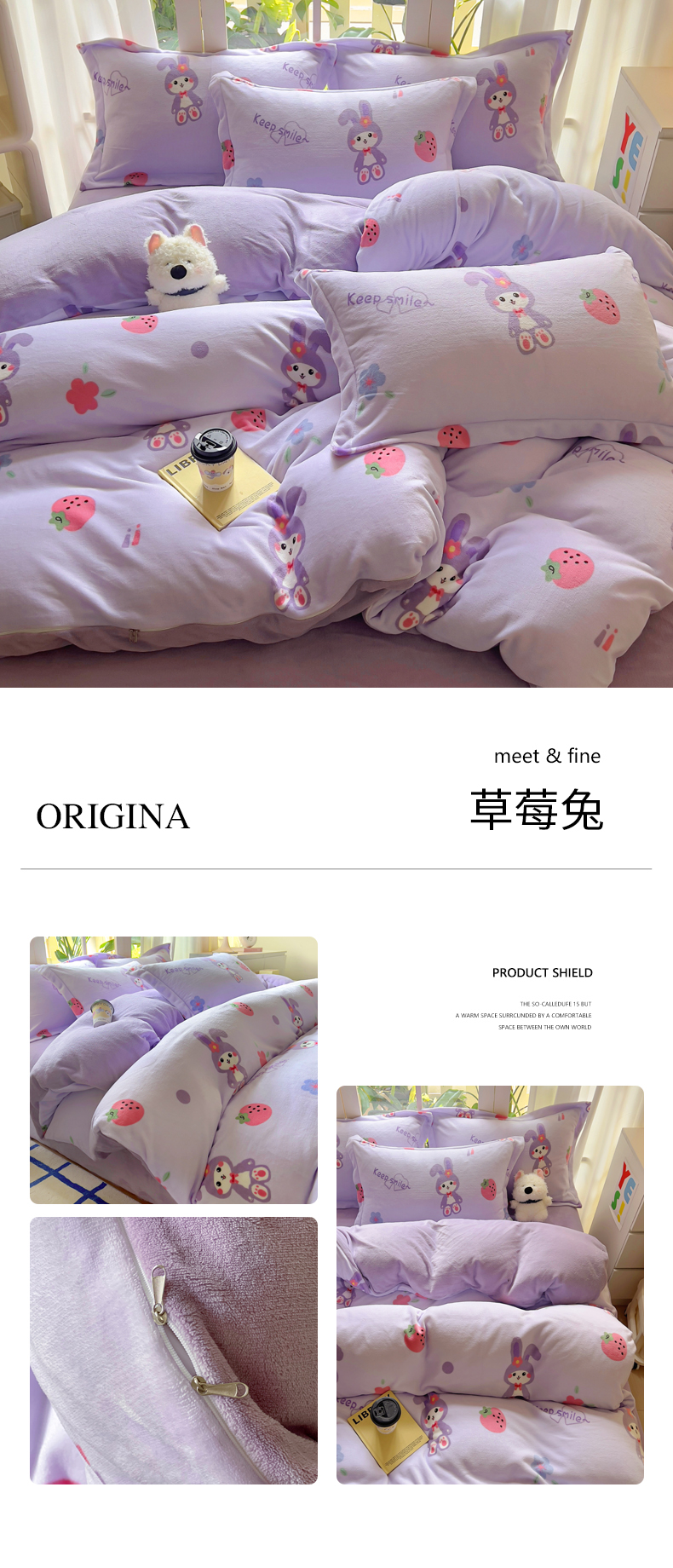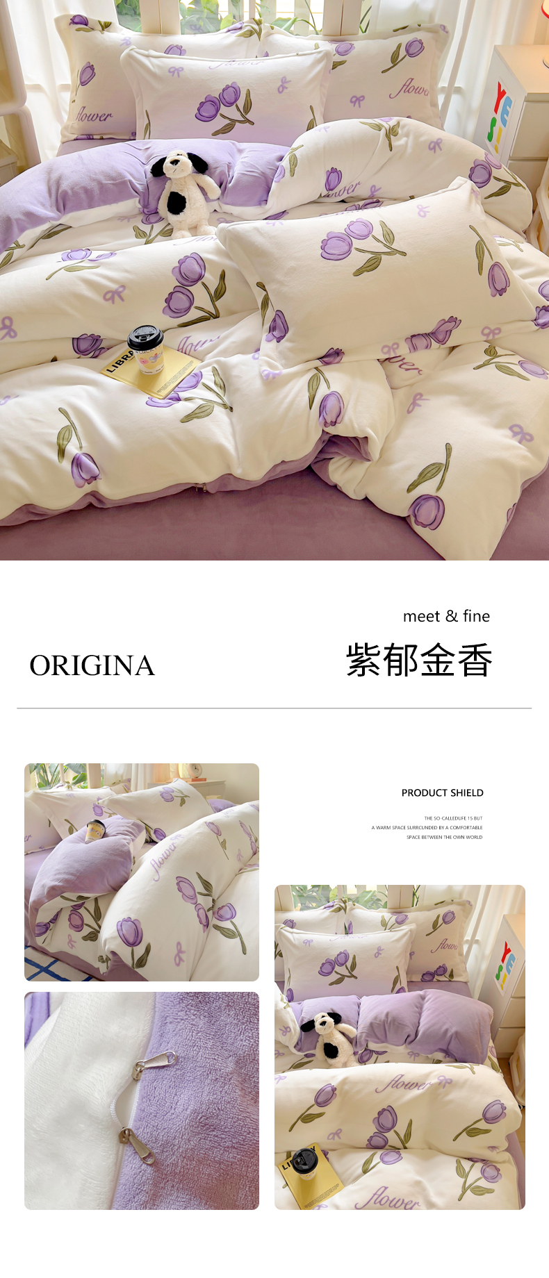 商品名称:(总)丝羽坊 2024新款加厚小清新牛奶绒印花四件套单被套床笠四件套-场景二