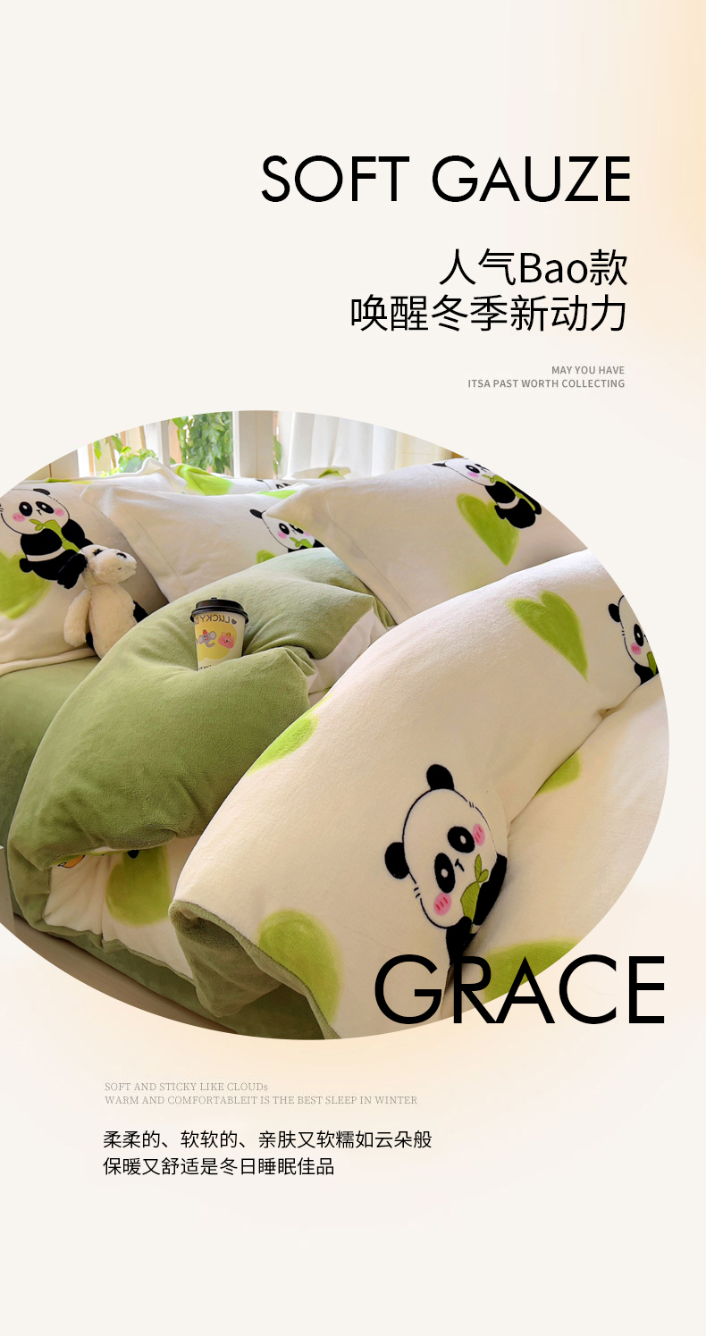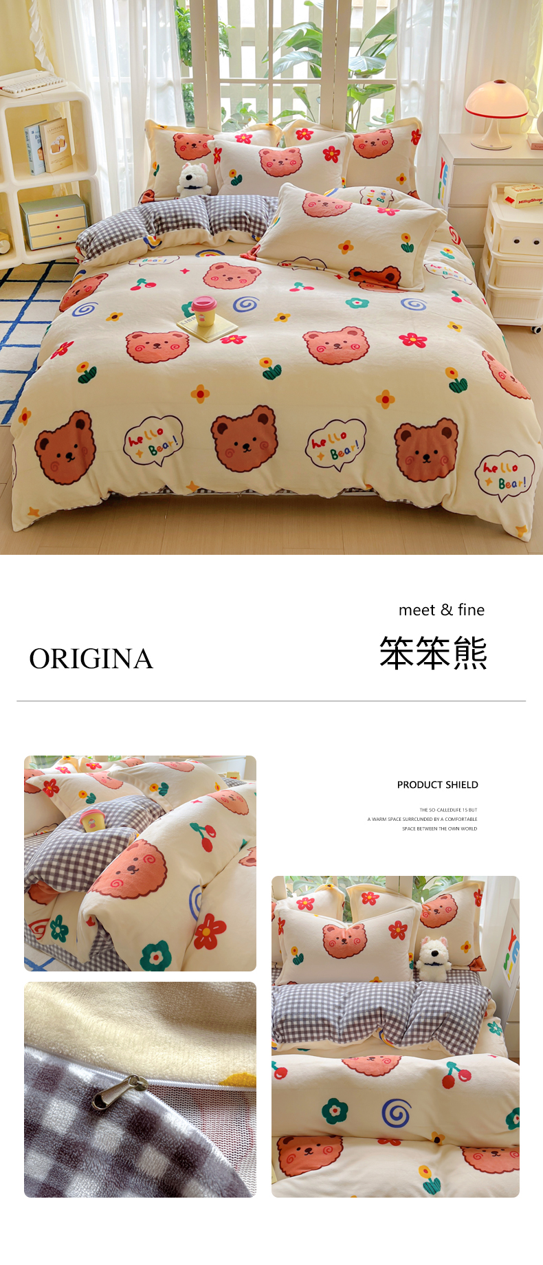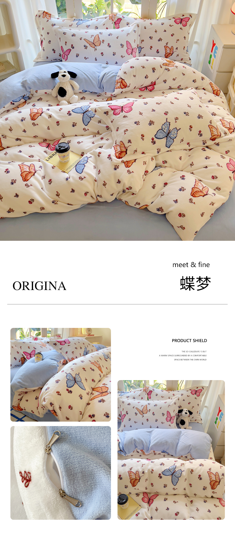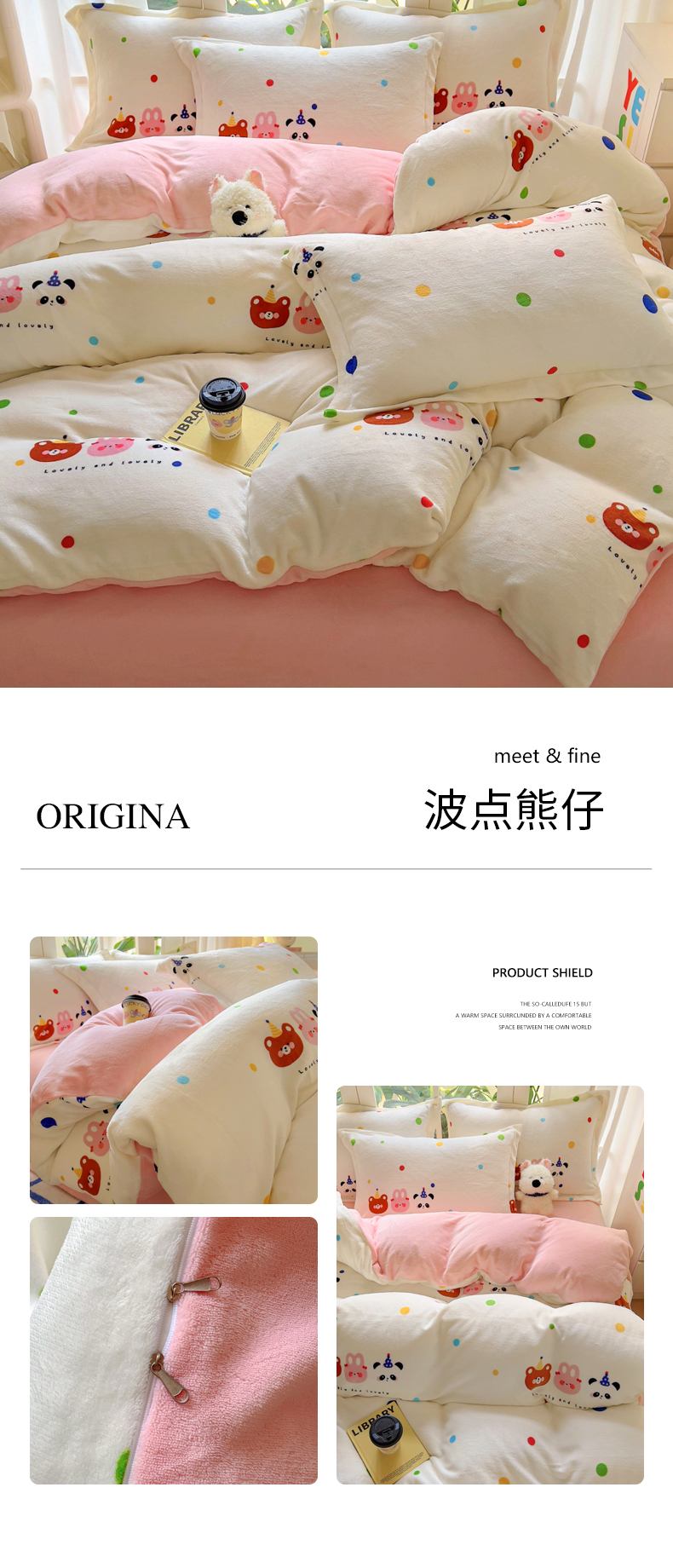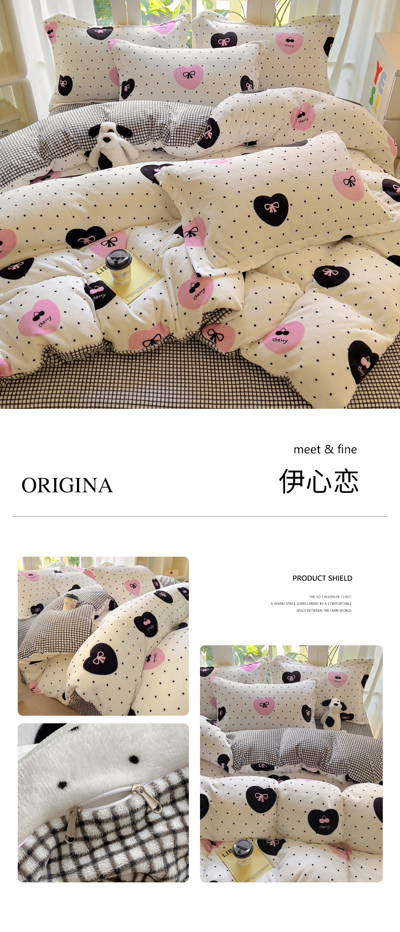 商品名称:(总)丝羽坊 2024新款加厚小清新牛奶绒印花四件套单被套床笠四件套-场景二