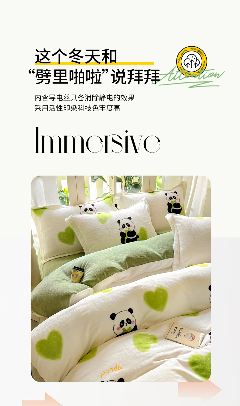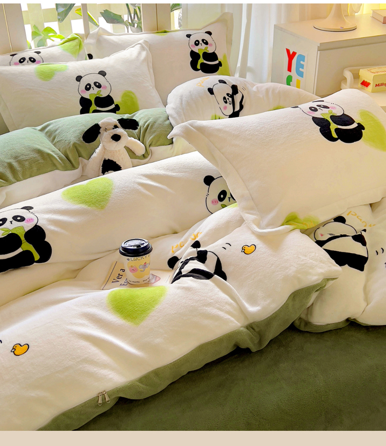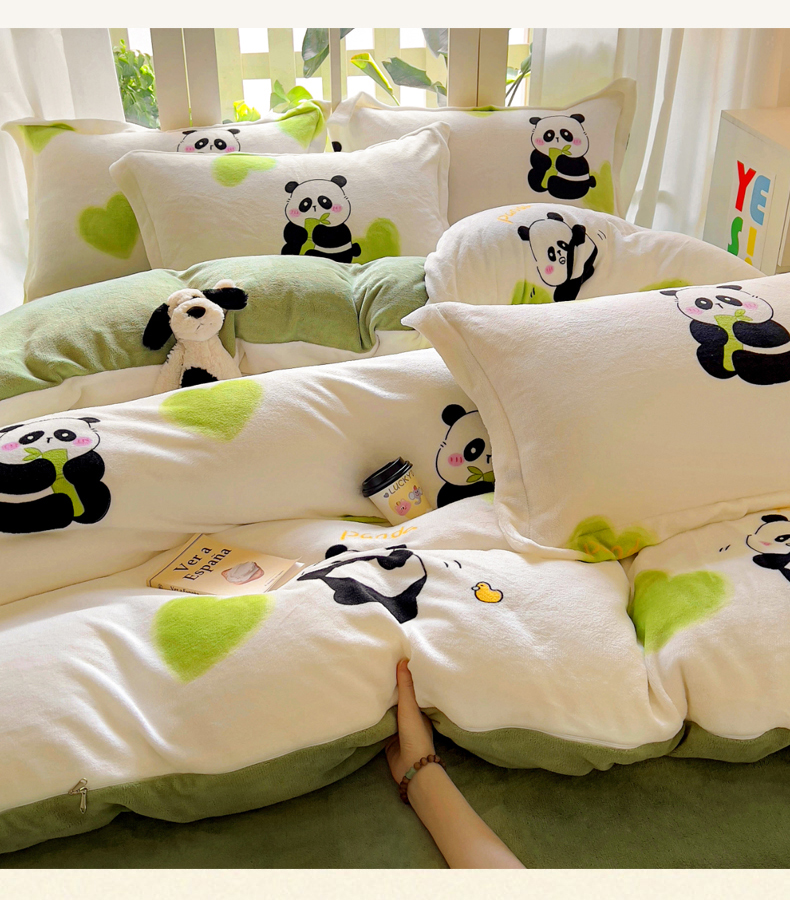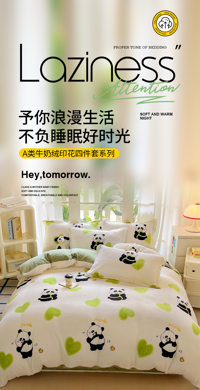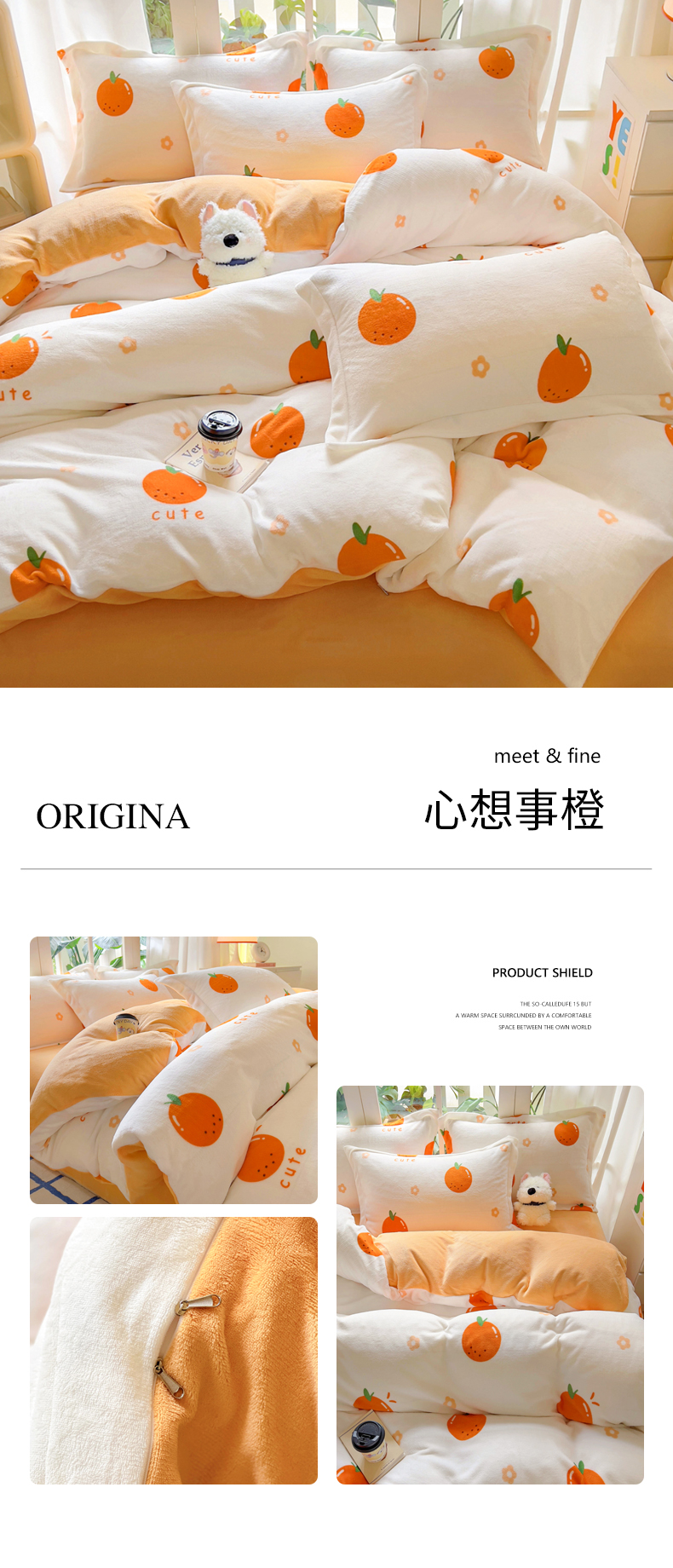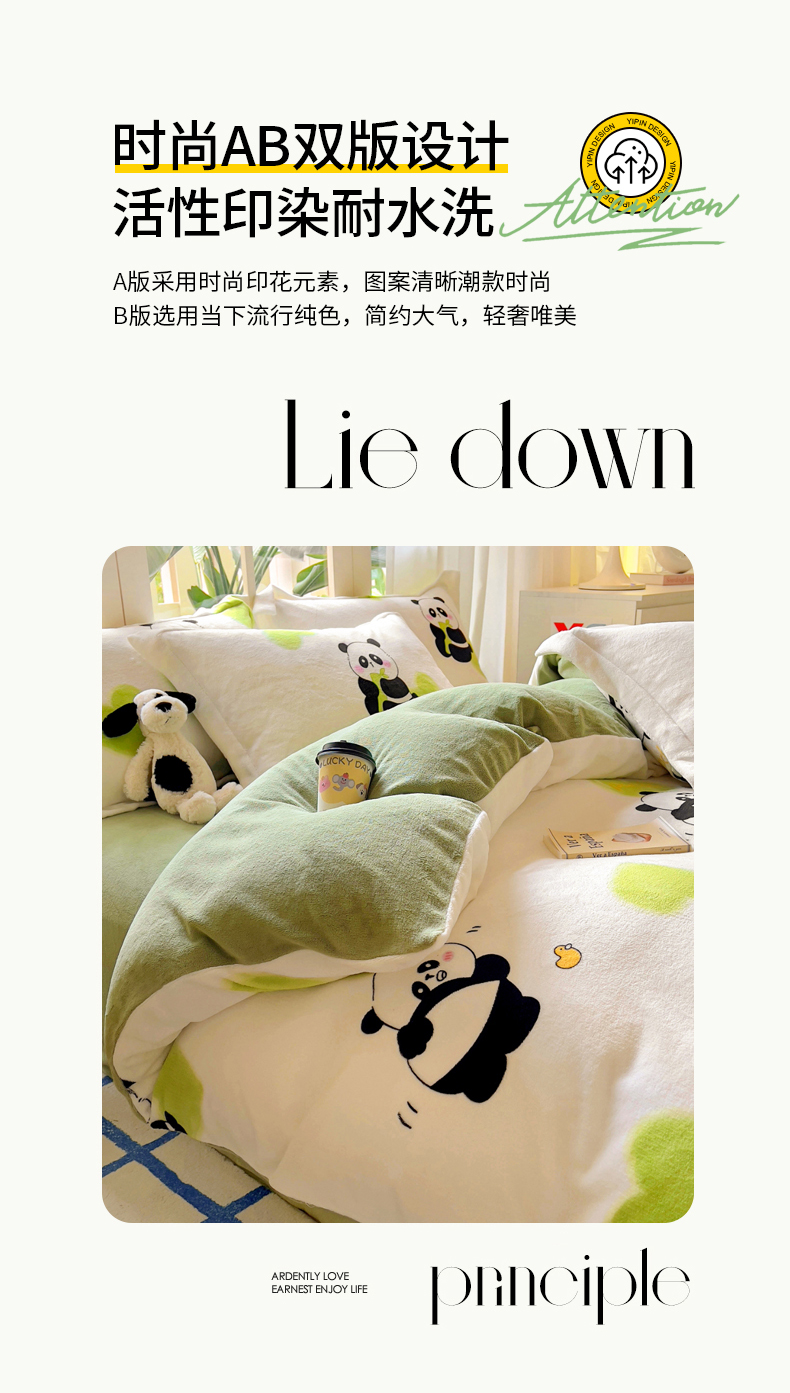 商品名称:(总)丝羽坊 2024新款加厚小清新牛奶绒印花四件套单被套床笠四件套-场景二