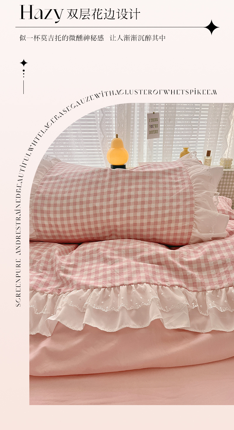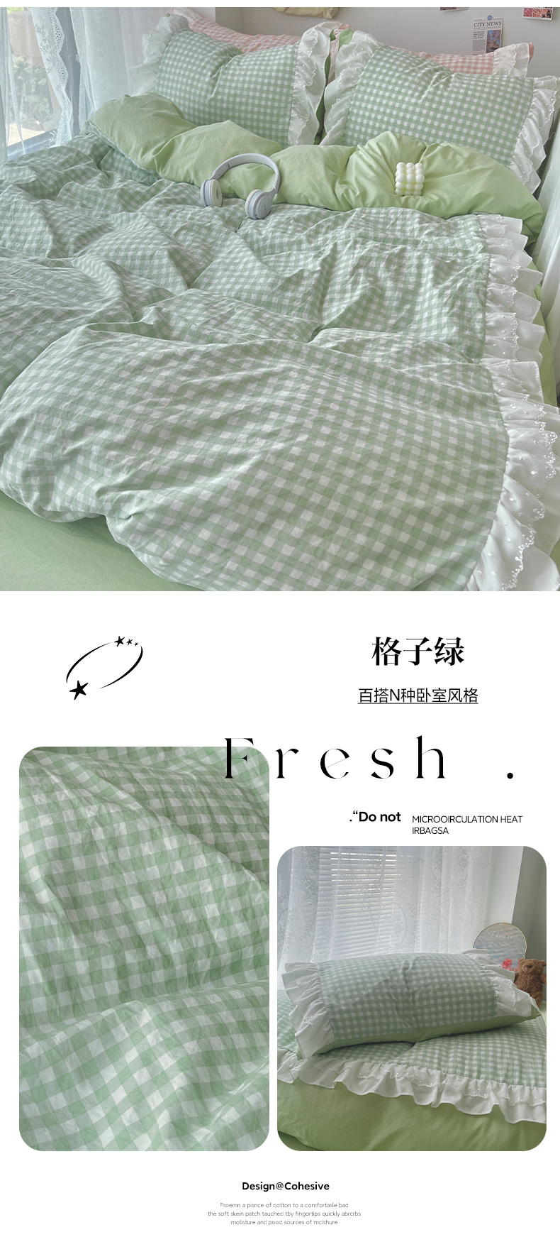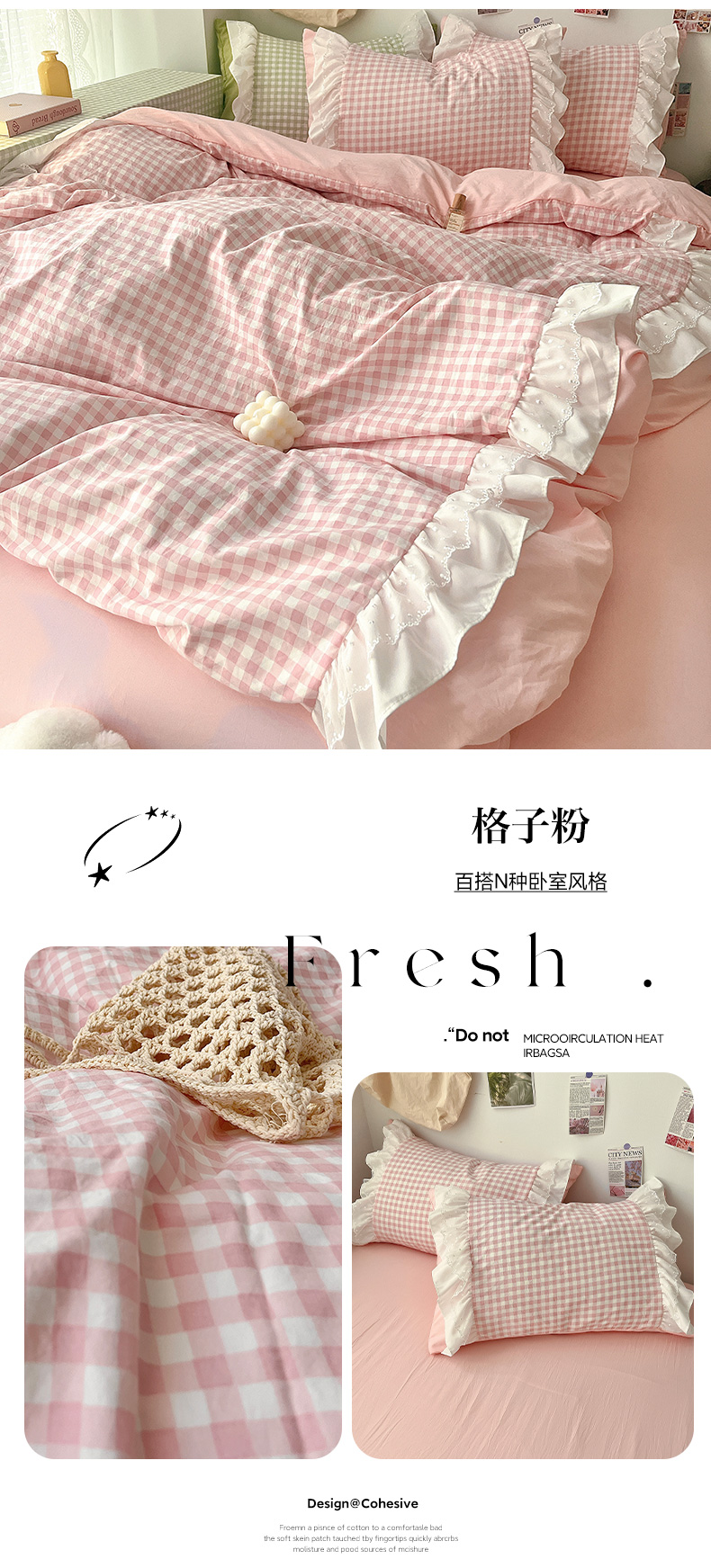 (总)山茶 2024新款格子水洗棉花边款四件套