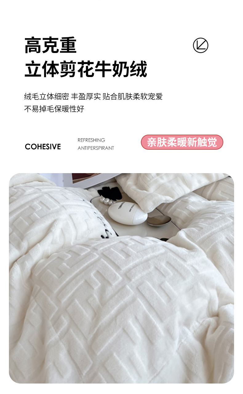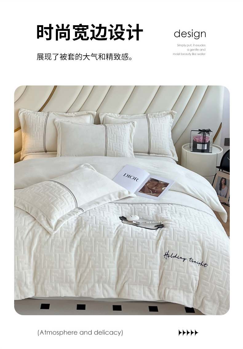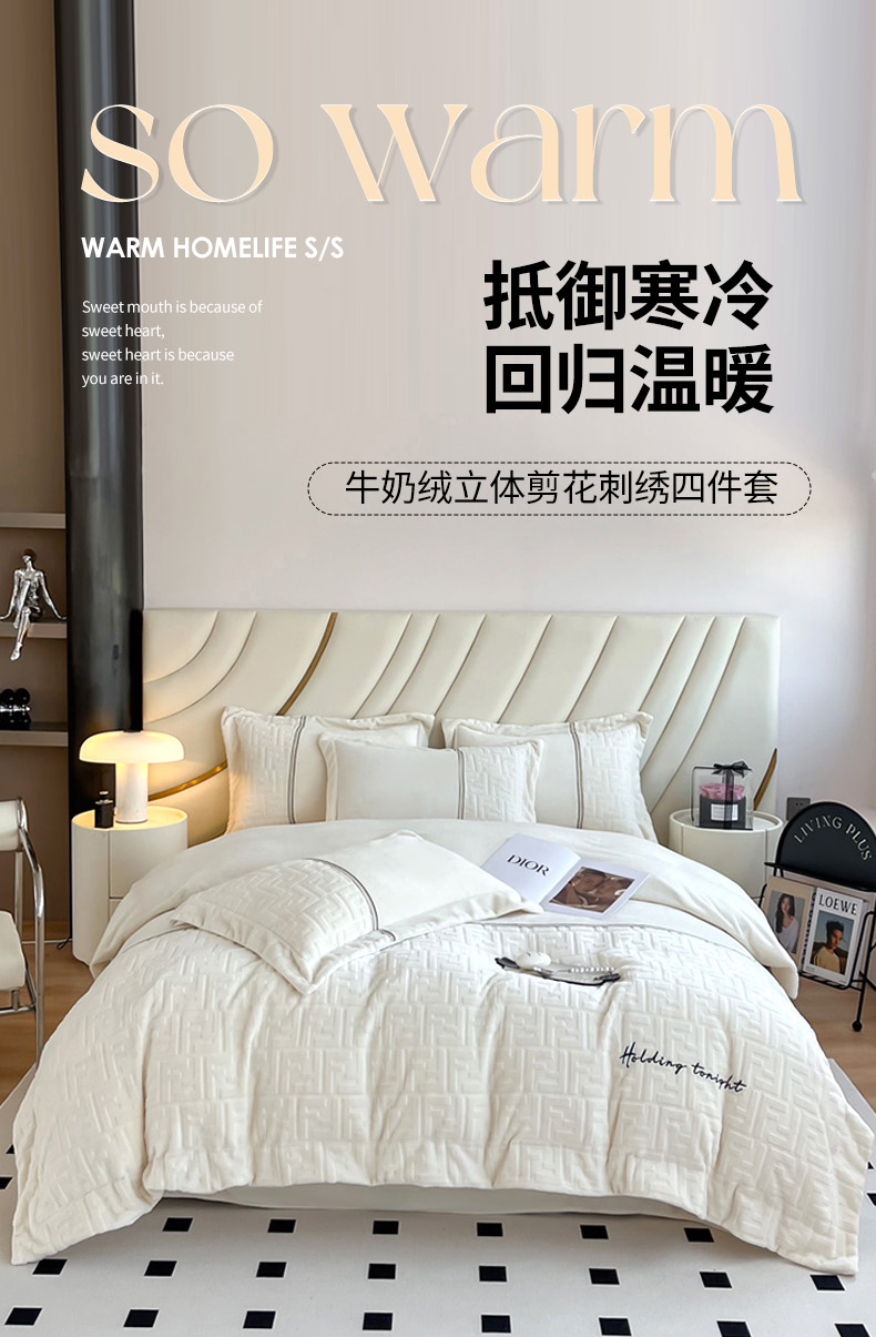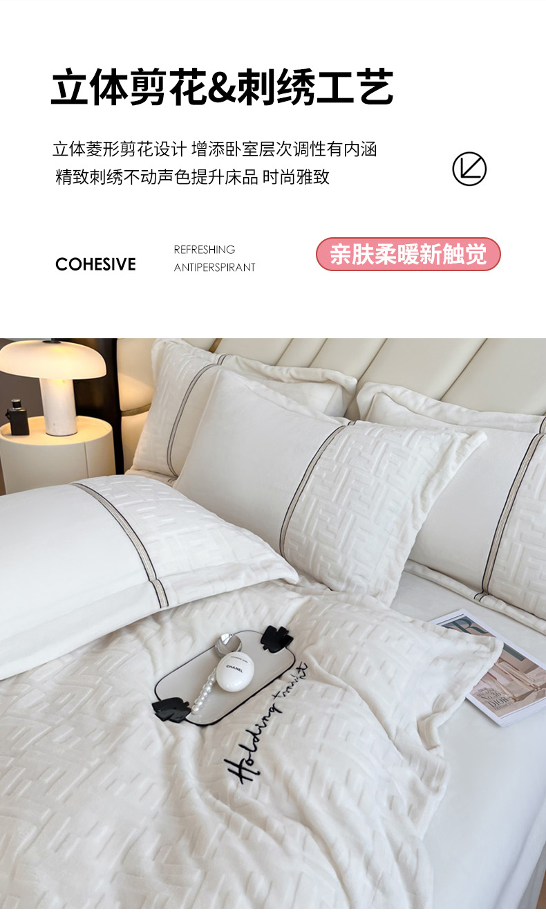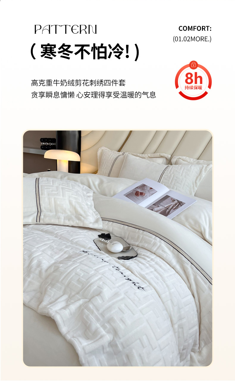 2024秋冬新款时尚宽边立体剪花刺绣加厚牛奶绒四件套-赫莲娜系列 赫莲娜奶白