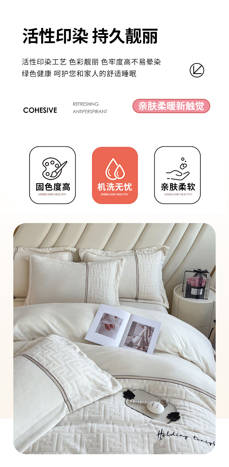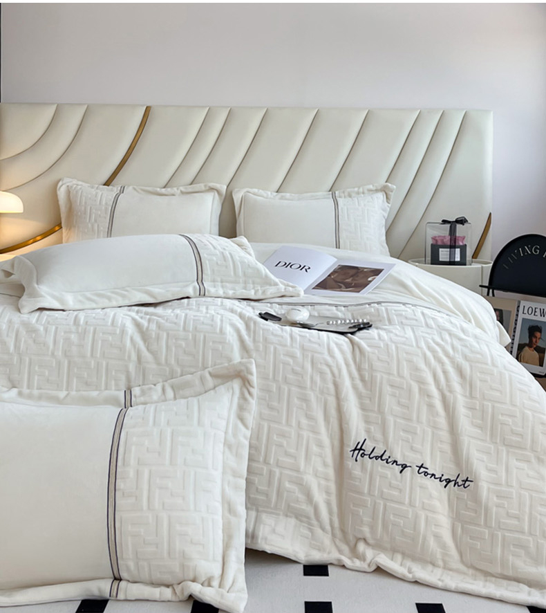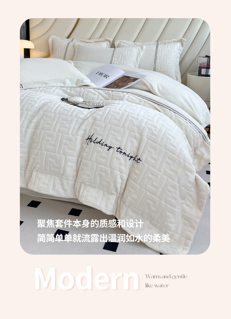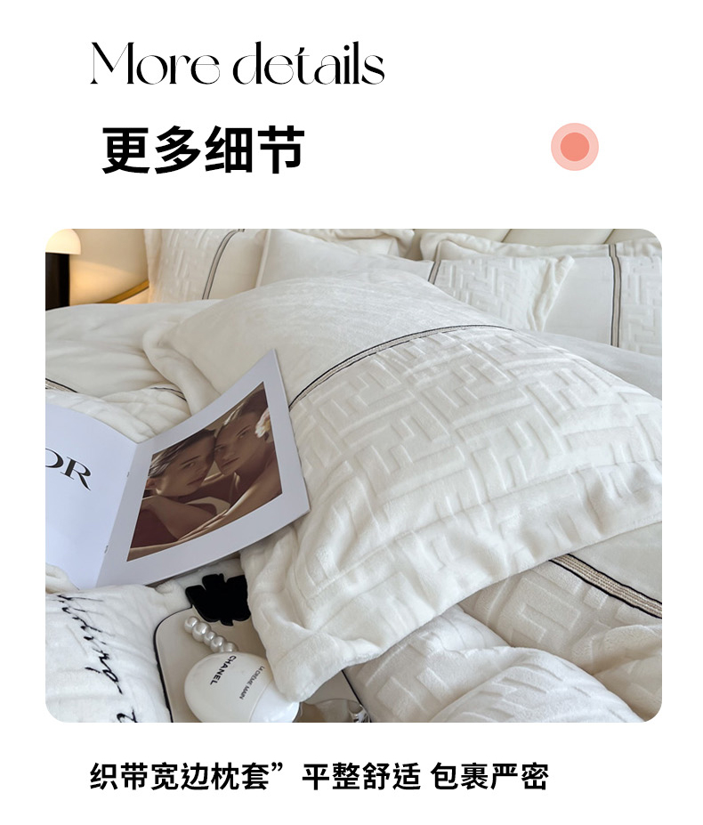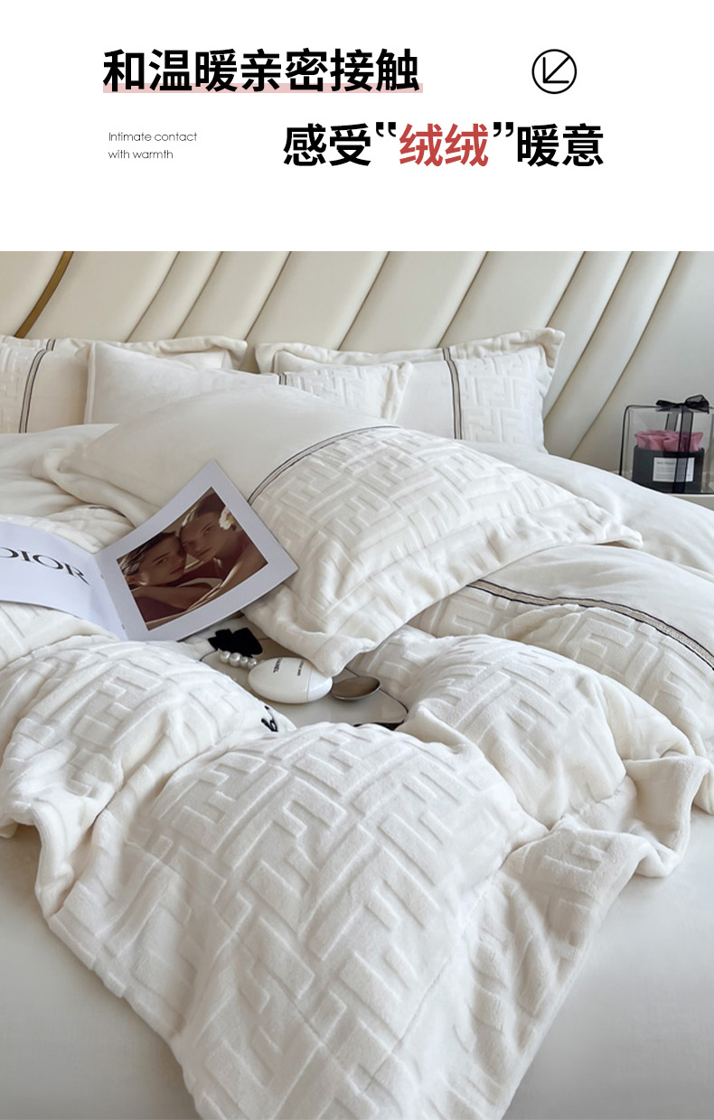 2024秋冬新款时尚宽边立体剪花刺绣加厚牛奶绒四件套-赫莲娜系列 赫莲娜奶白