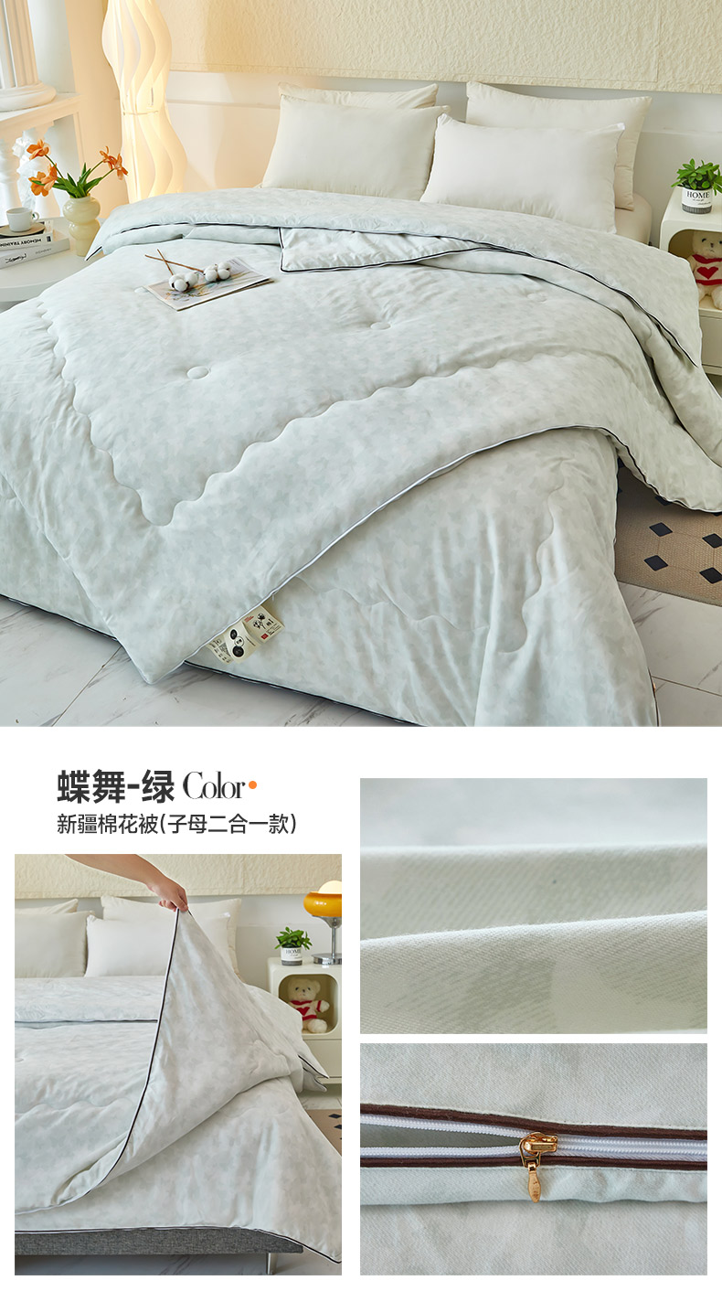 美之润家纺 2025新款新疆棉花子母被二合一款 蝶舞-绿