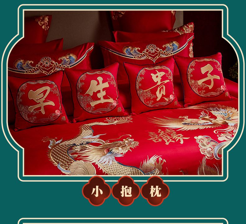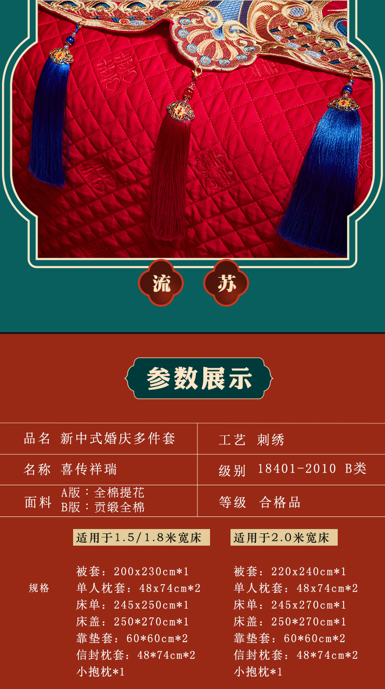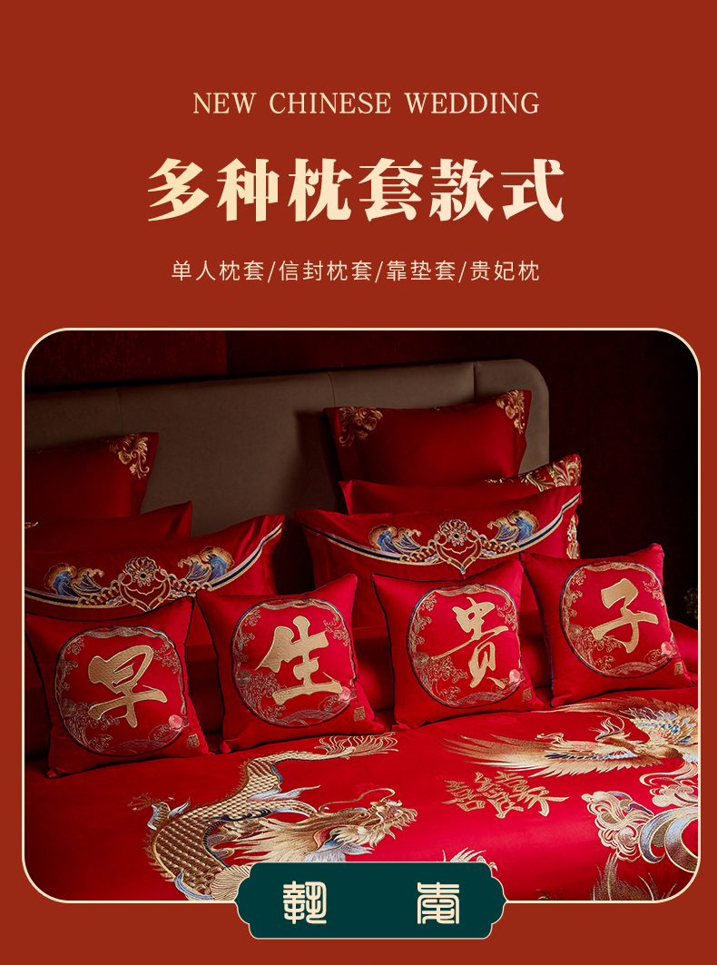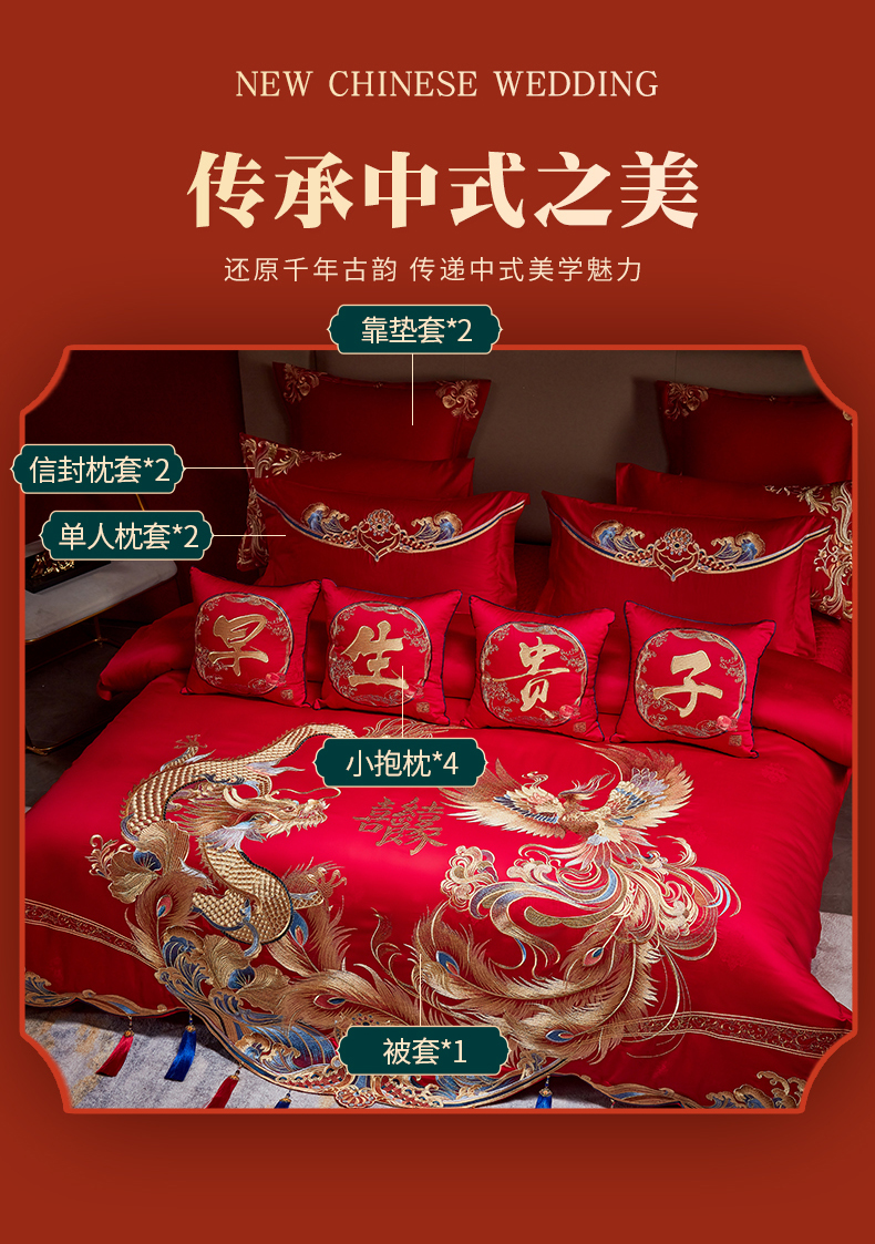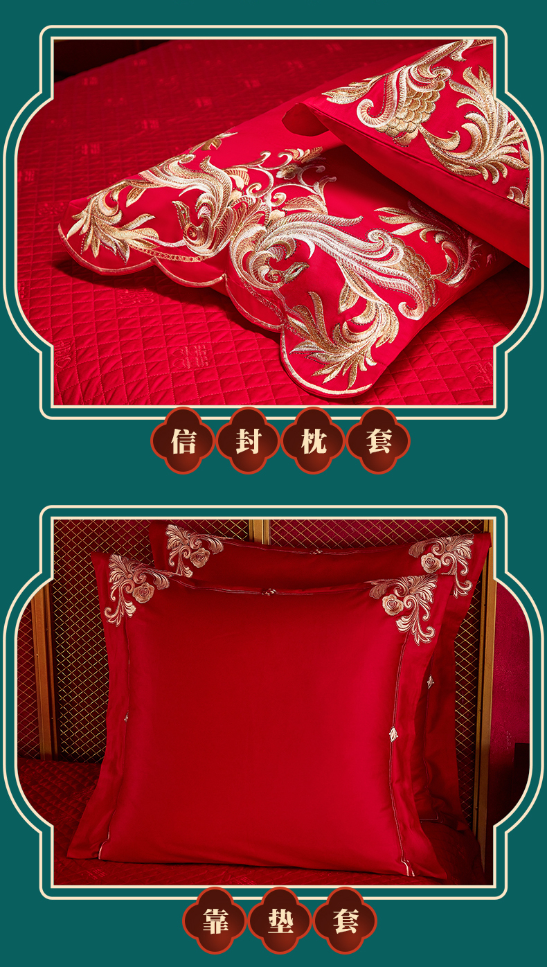 当前位置: 91家纺网 > 商品网购 > 床品套件 > 四件套 > 婚庆四件套 > 宏羽纺家纺 2024新款高支高密纯棉提花婚庆套件系列(控价680)喜传祥瑞