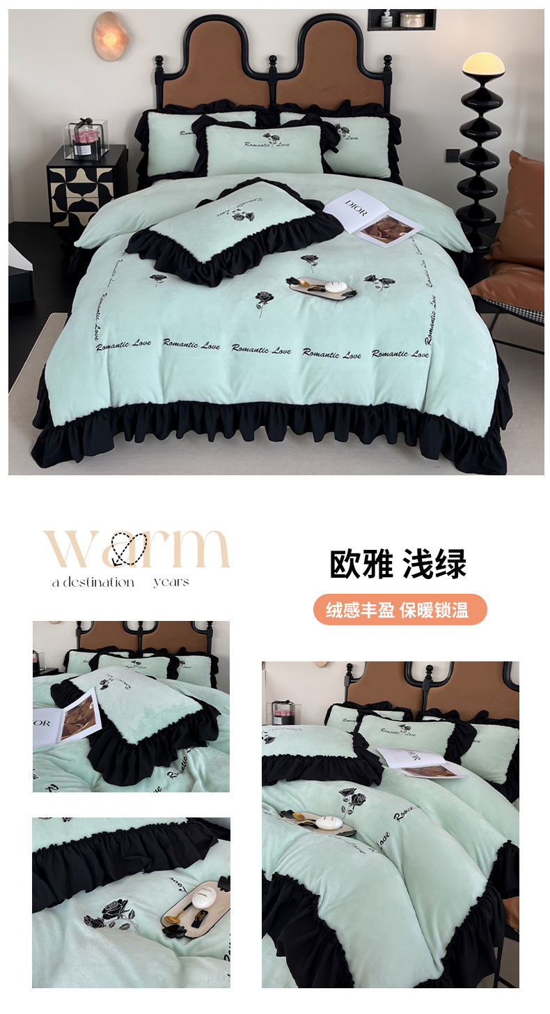 (总)凯美家居 2025新款牛奶绒重工刺绣特种工艺四件套-可露丽,可露丽-粉玉,可露丽-蓝,可露丽-奶白,可露丽-浅绿