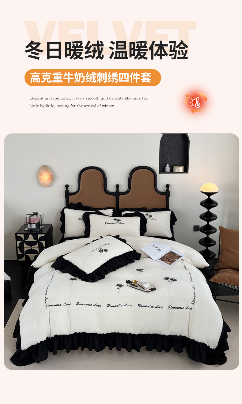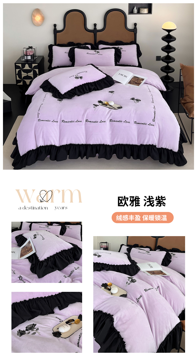 (总)凯美家居 2024新款法式牛奶绒刺绣四件套-欧雅