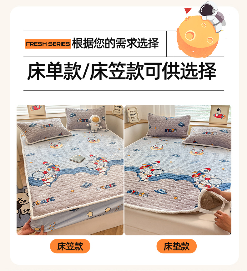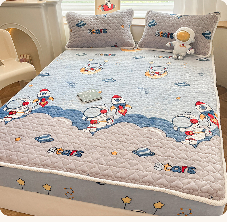 当前位置: 91家纺网 > 商品网购 > 床上用品 > 床笠 > 孩子王 2024新款印花牛奶绒薄款床垫加厚绒保暖床护垫床笠 床单款-淘气火箭