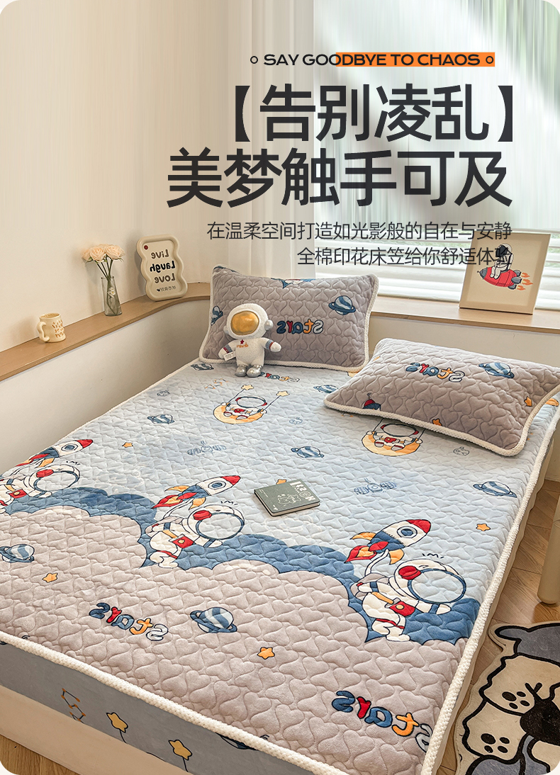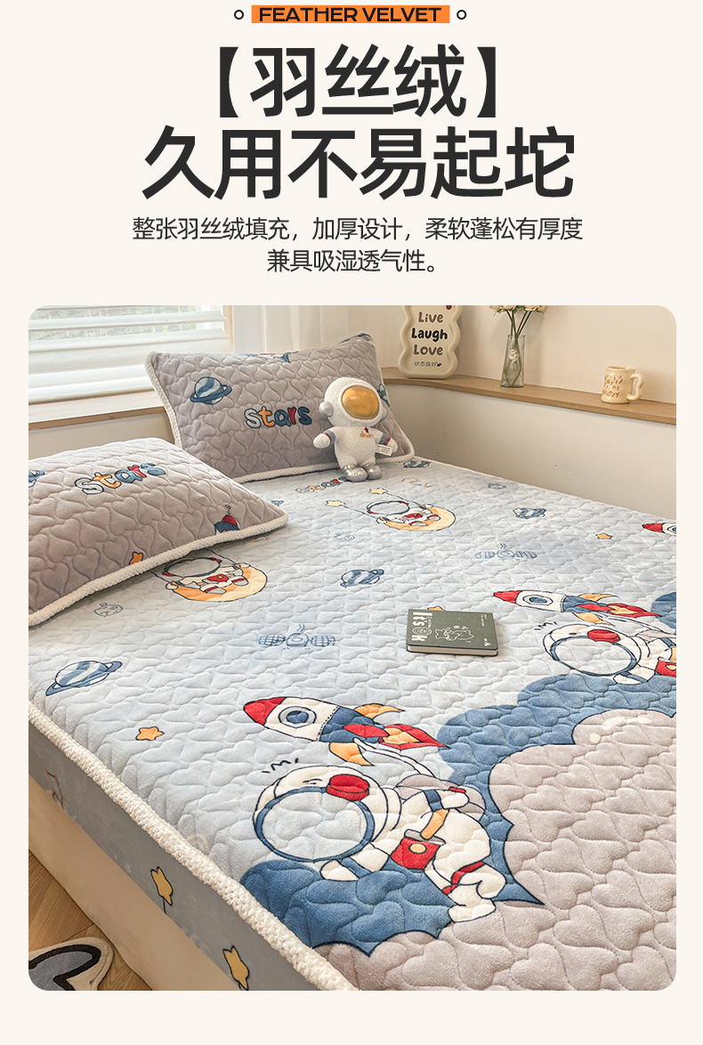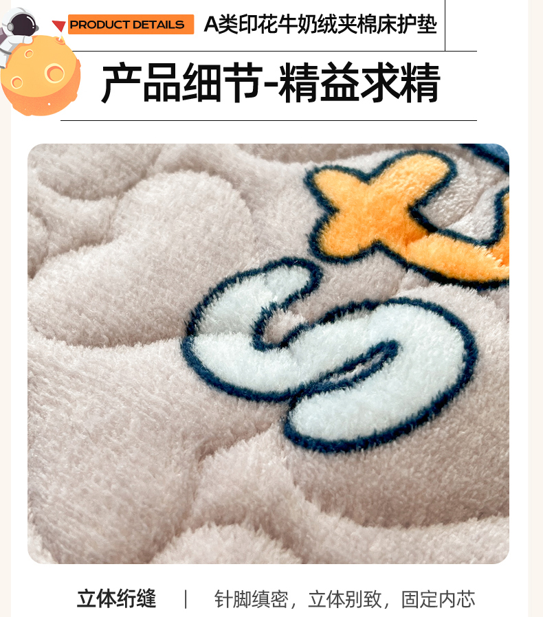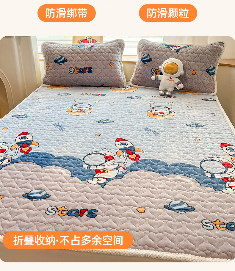 • 91家纺网 家纺一手货源 找家纺 孩子王 2024新款印花牛奶绒薄款床垫加厚绒保暖床护垫床笠 床单款-淘气火箭