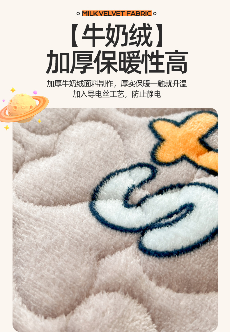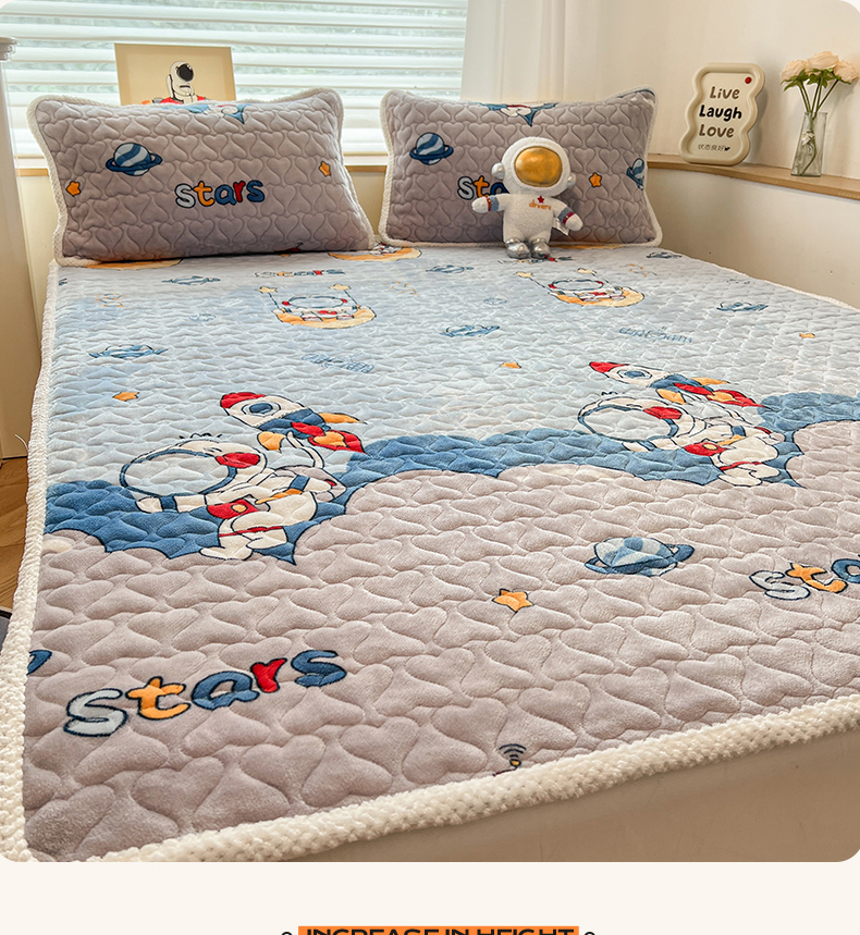 孩子王 2024新款印花牛奶绒薄款床垫加厚绒保暖床护垫床笠 床单款-淘气火箭