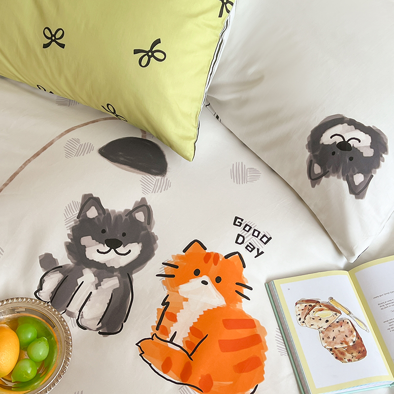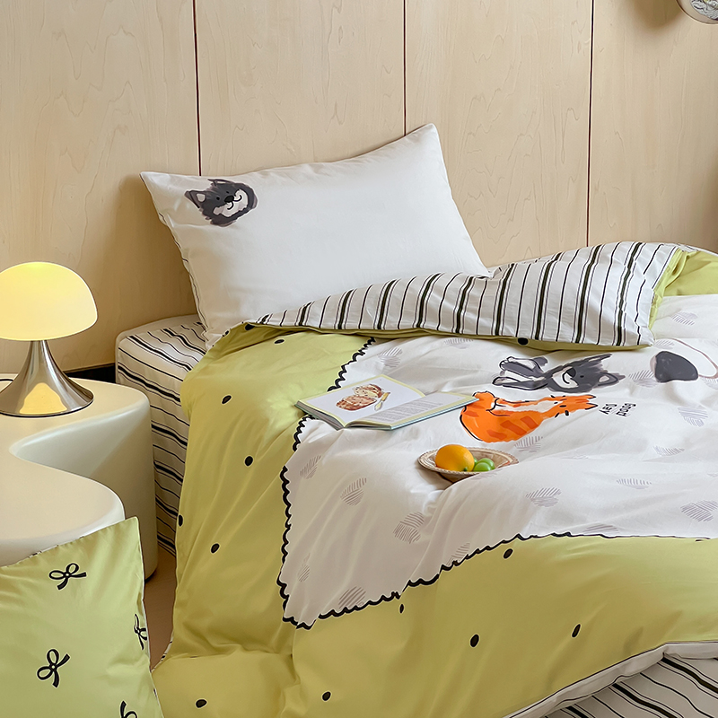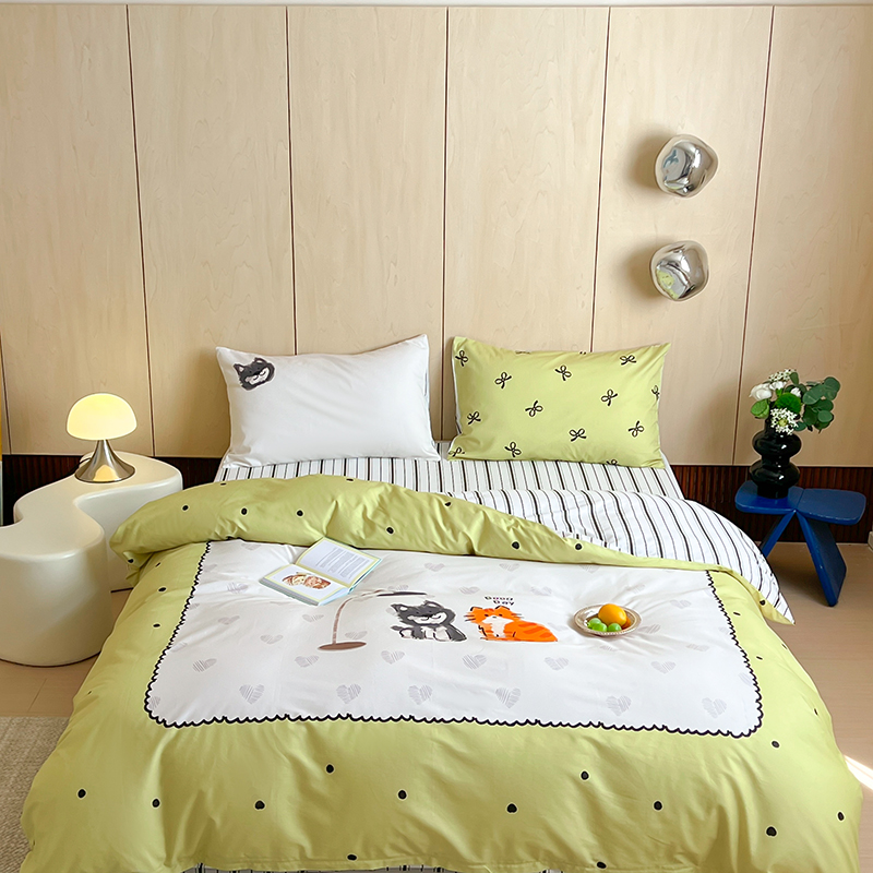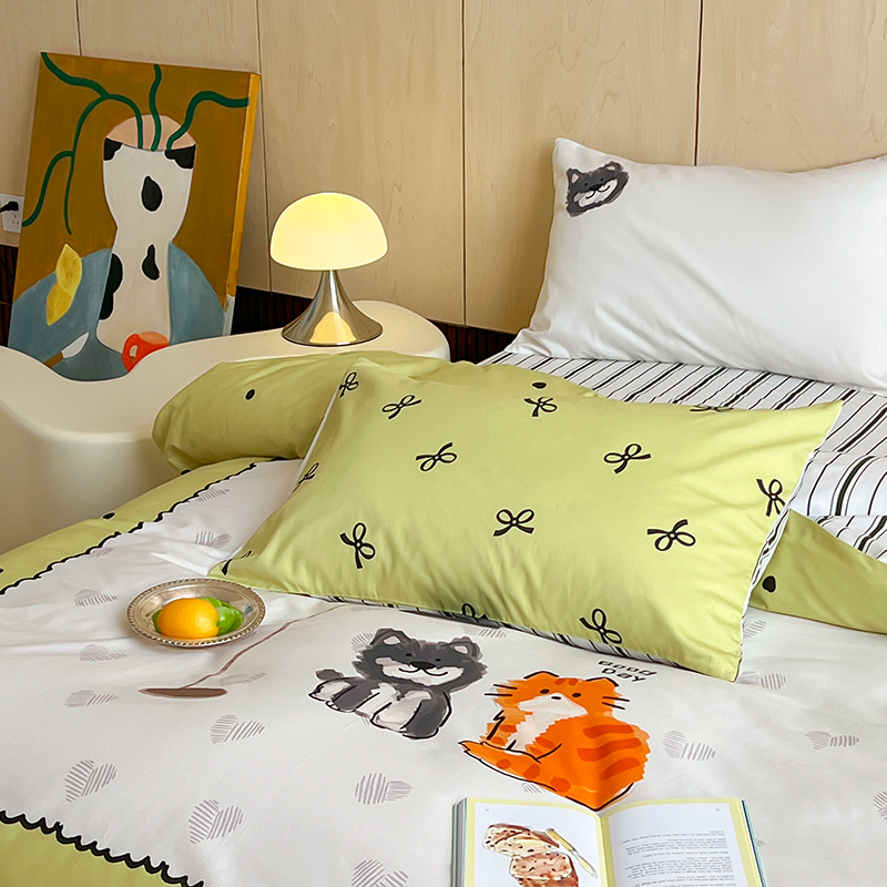 2024新款40S设计师款全棉大版趣味印花系列四件套 美好生活