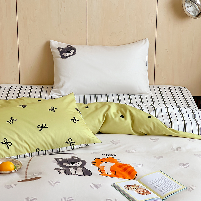 (总)时年 2021新款40S全棉印花四件套小可爱系列,贝尔先生,彩虹云朵,花西子,欢乐字母,金刚,奇思妙想,气球皮皮,树林生活