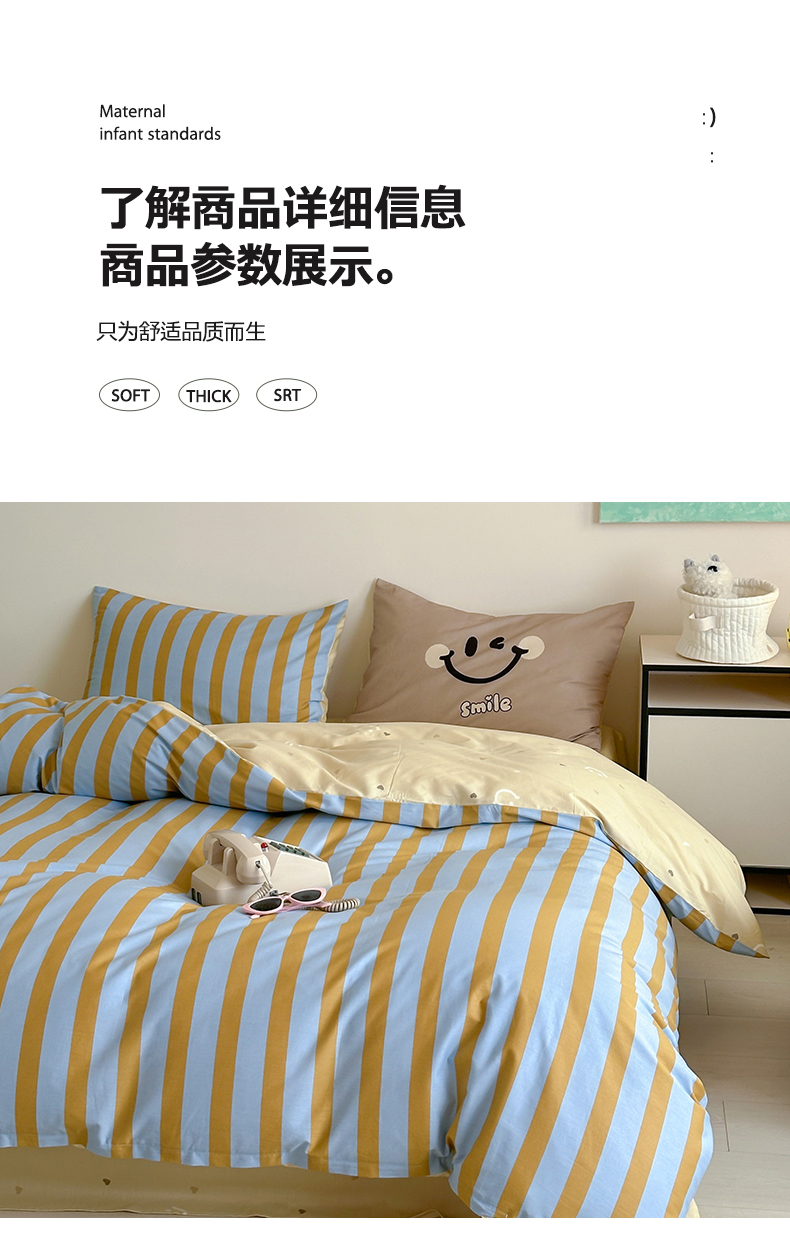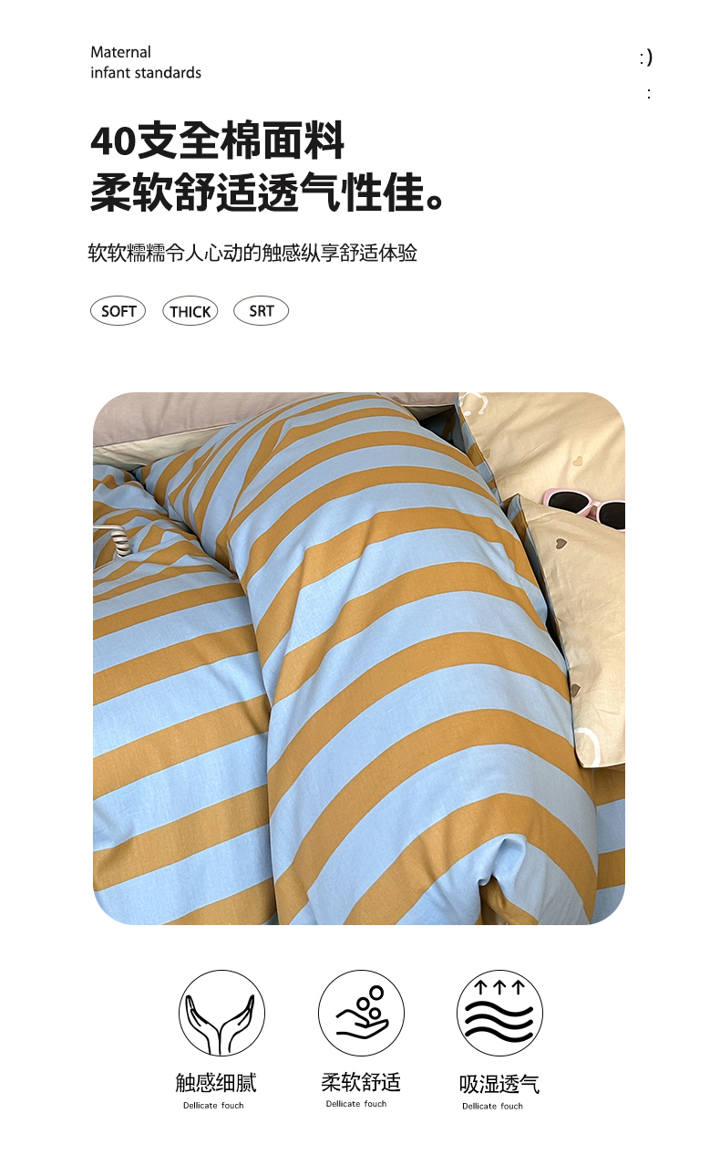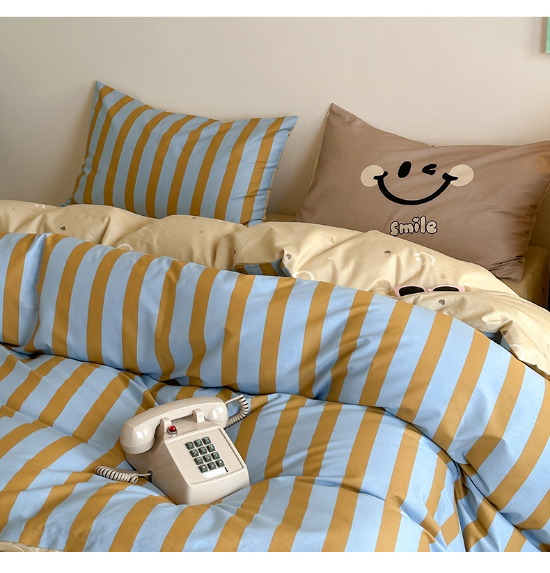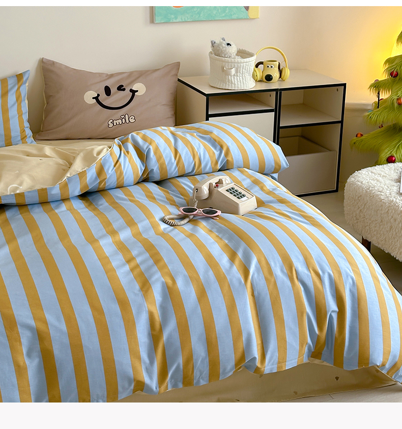 (总)时年2022新款全棉40支13372ins条纹款四件套,复古钴蓝,复古奶绿