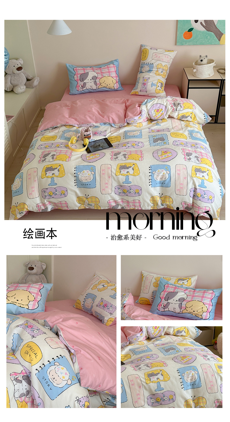 (总)时年 2021新款40S全棉印花四件套小可爱系列,贝尔先生,彩虹云朵,花西子,欢乐字母,金刚,奇思妙想,气球皮皮,树林生活