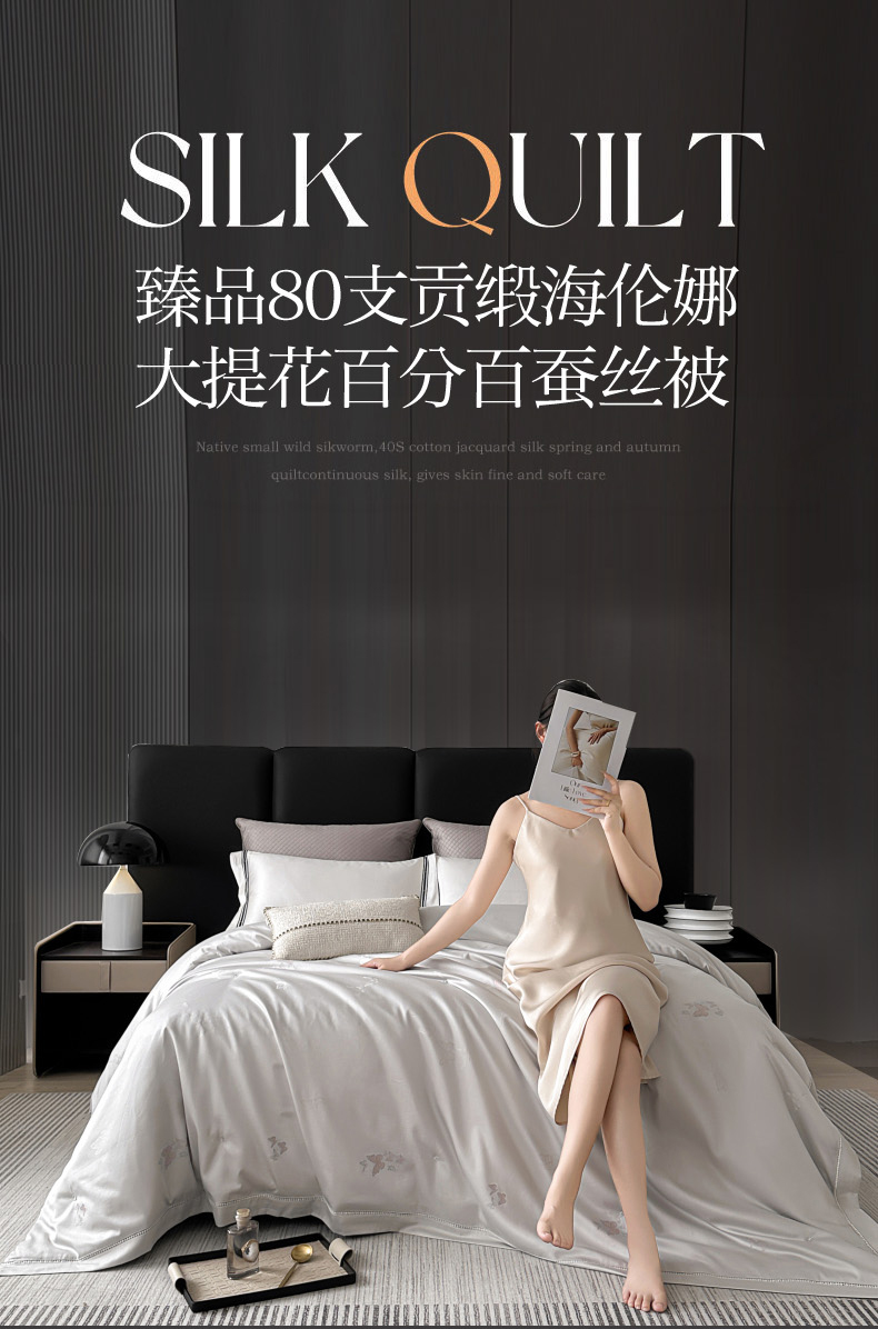 • 91家纺网 家纺一手货源 找家纺 雅高 海伦娜-臻品80支贡缎海伦娜大提花百分百桑蚕丝被 海伦娜灰