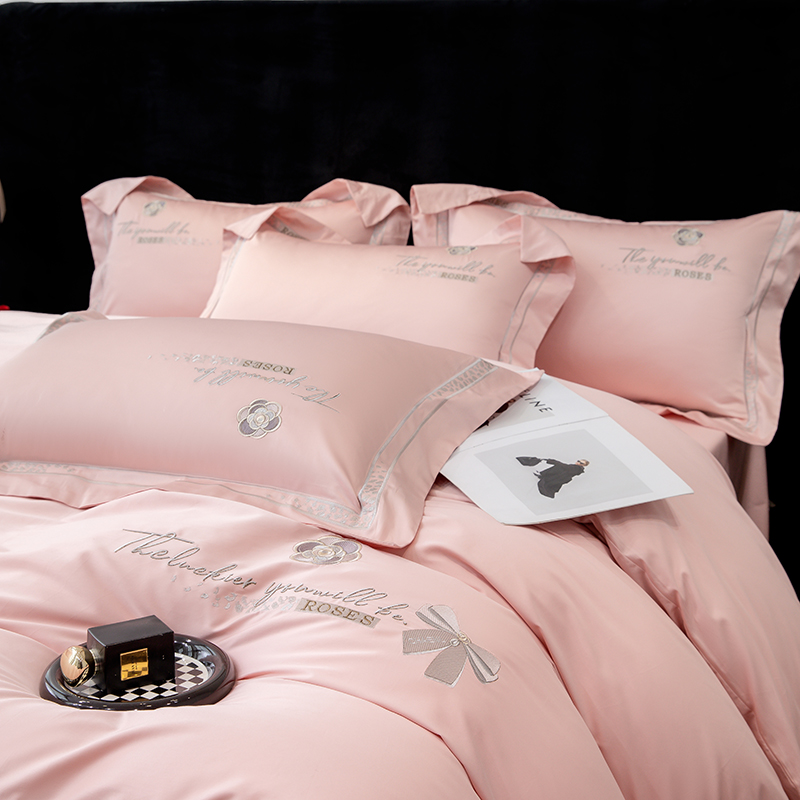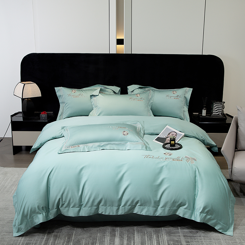(总)绒博士 2025新款270克牛奶绒双拼角刺绣宽边款四件套--维也纳系列,维也纳-粉豆沙,维也纳-果绿,维也纳-浅咖,维也纳-浅蓝