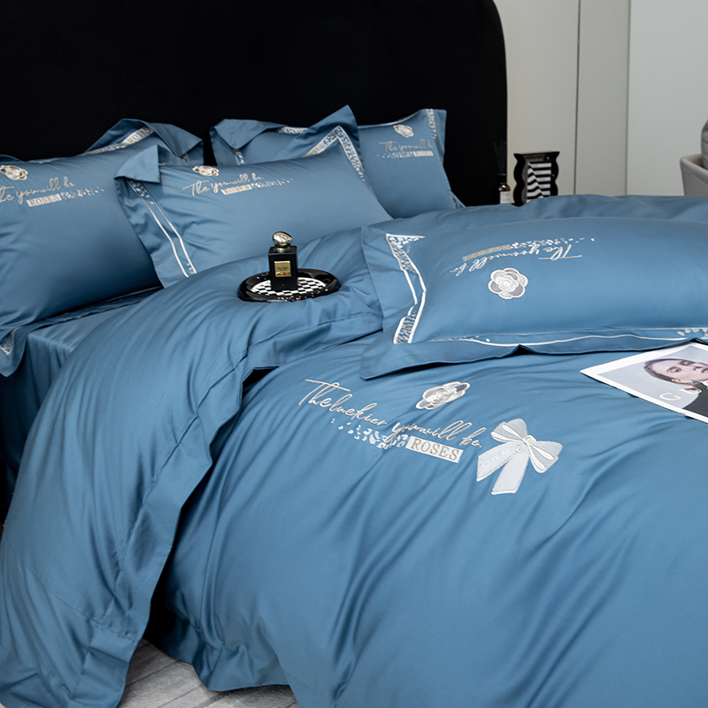 商品名称:绒博士 2024新款160支长绒棉四件套-巴黎之约 星耀蓝