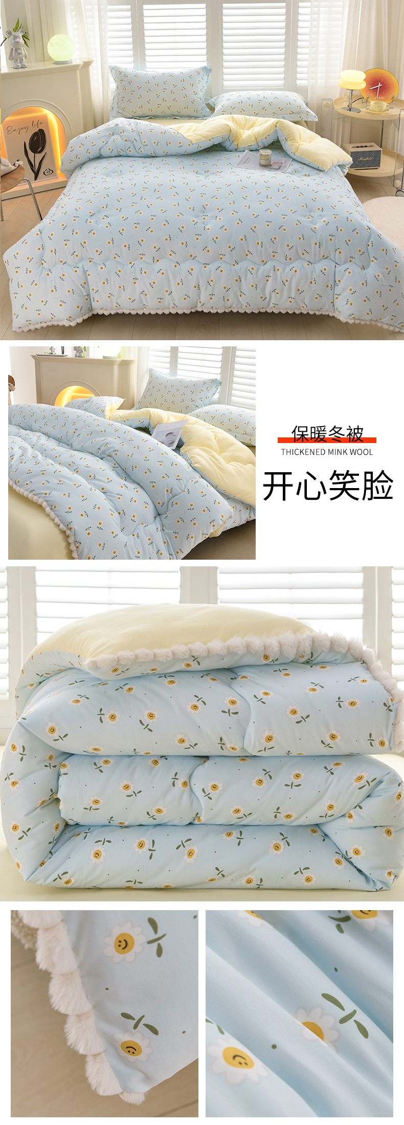 圣楚家纺 2024新款加厚保暖云朵棉毛球冬被 笑脸甜心