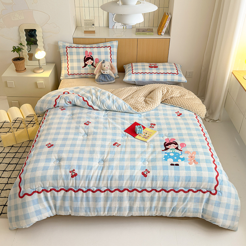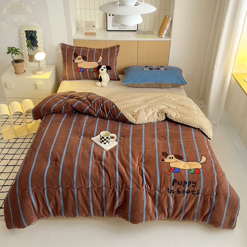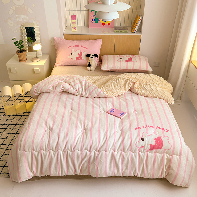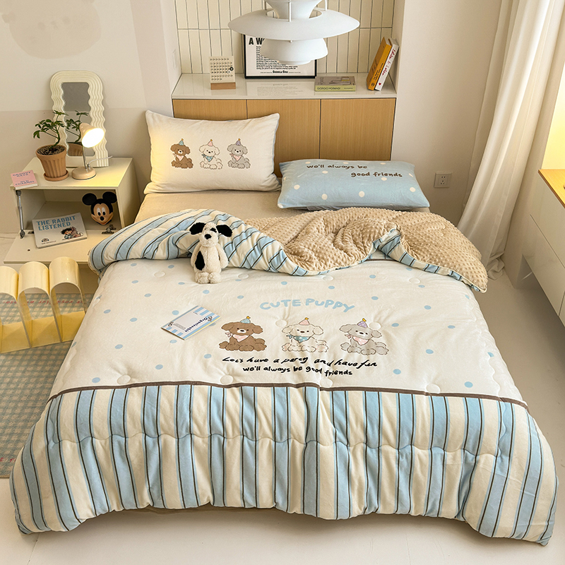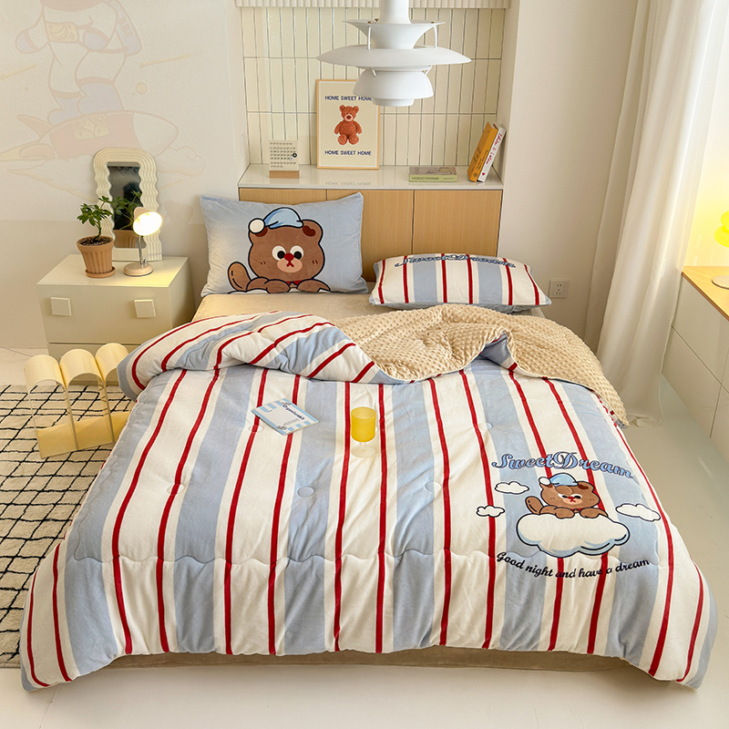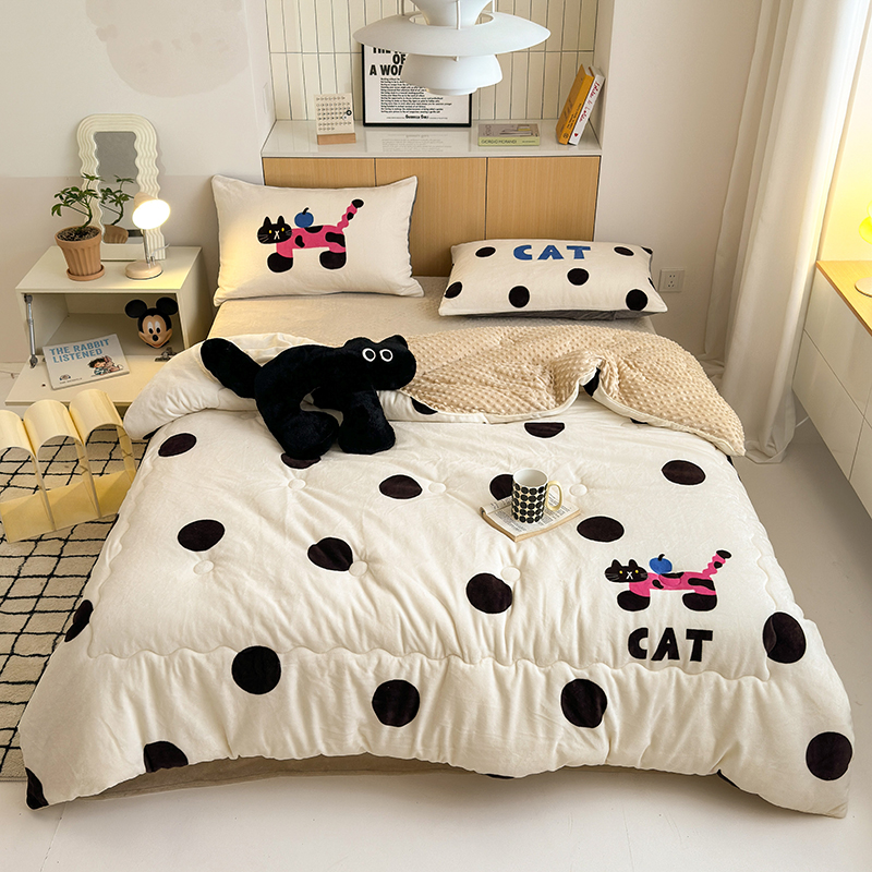 (总)2024新款卡通大版高克重牛奶绒豆豆被四件套