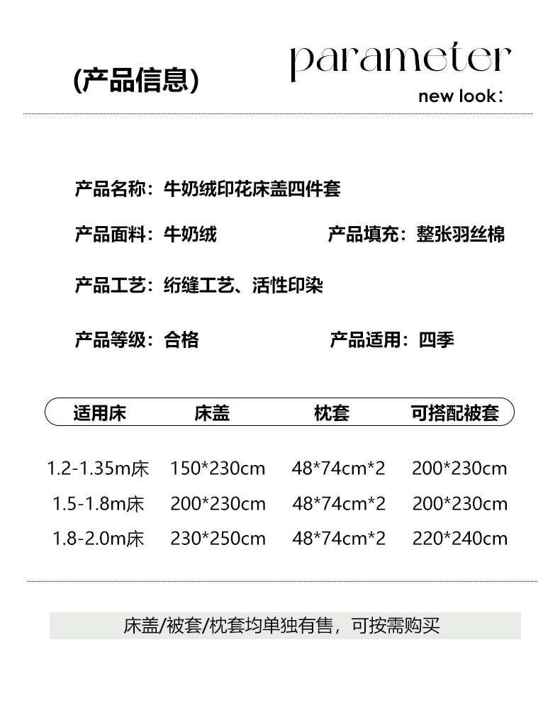 2.0床盖四件套-被套200x230 | ¥117.00 |