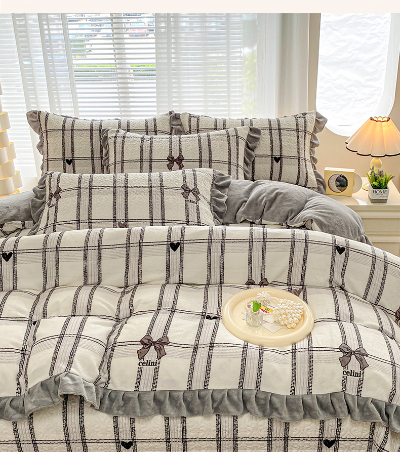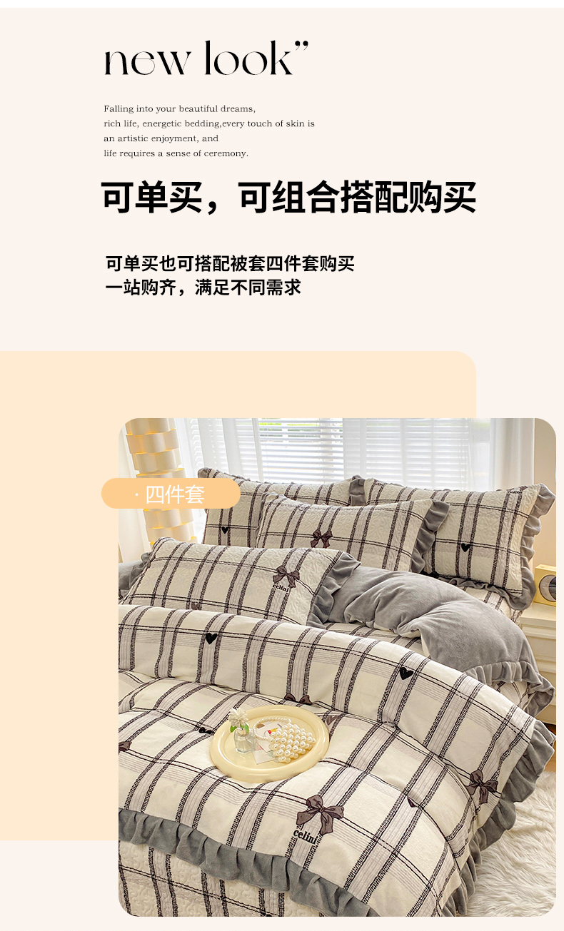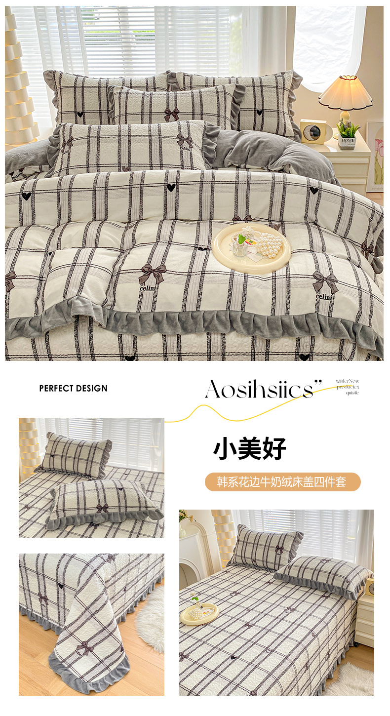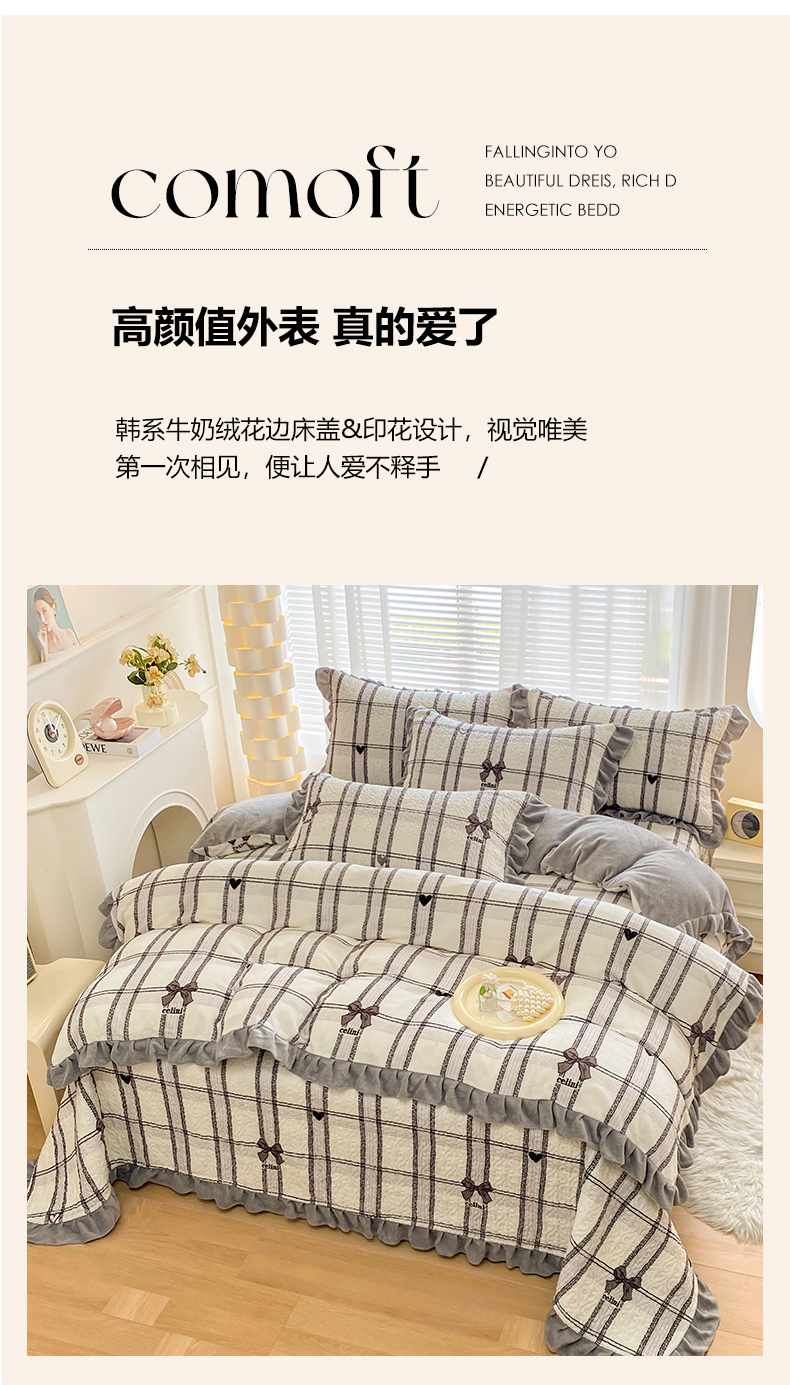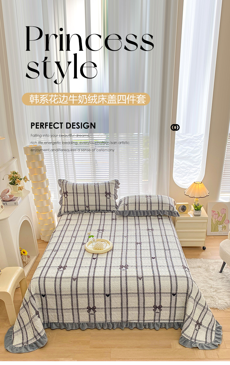 当前位置: 91家纺网 > 商品网购 > 床品套件 > 四件套 > 牛奶绒四件套 > 梦精灵家纺 2025新款牛奶绒花边床盖四件套 花边款-小美好