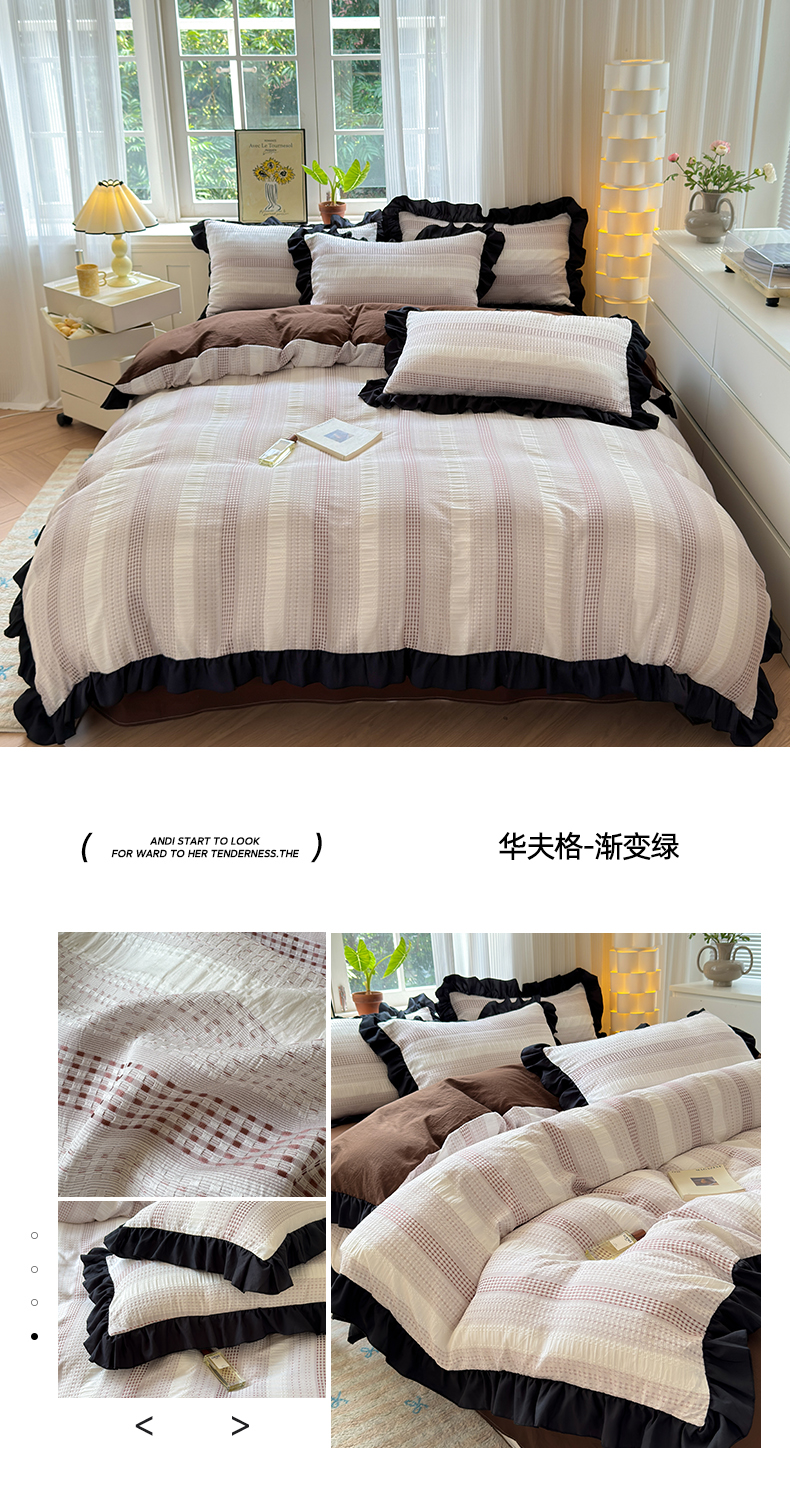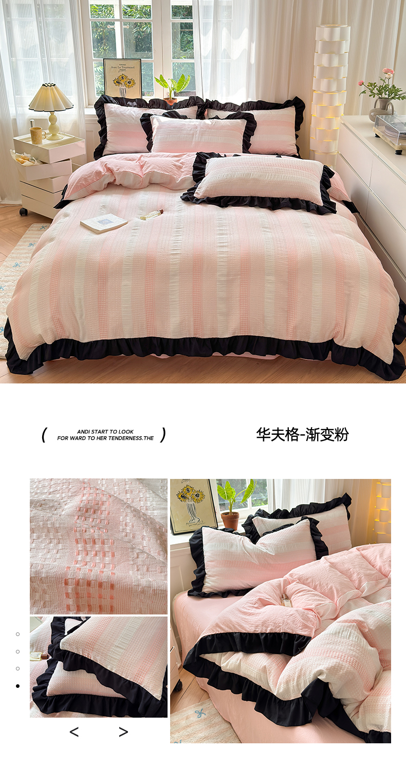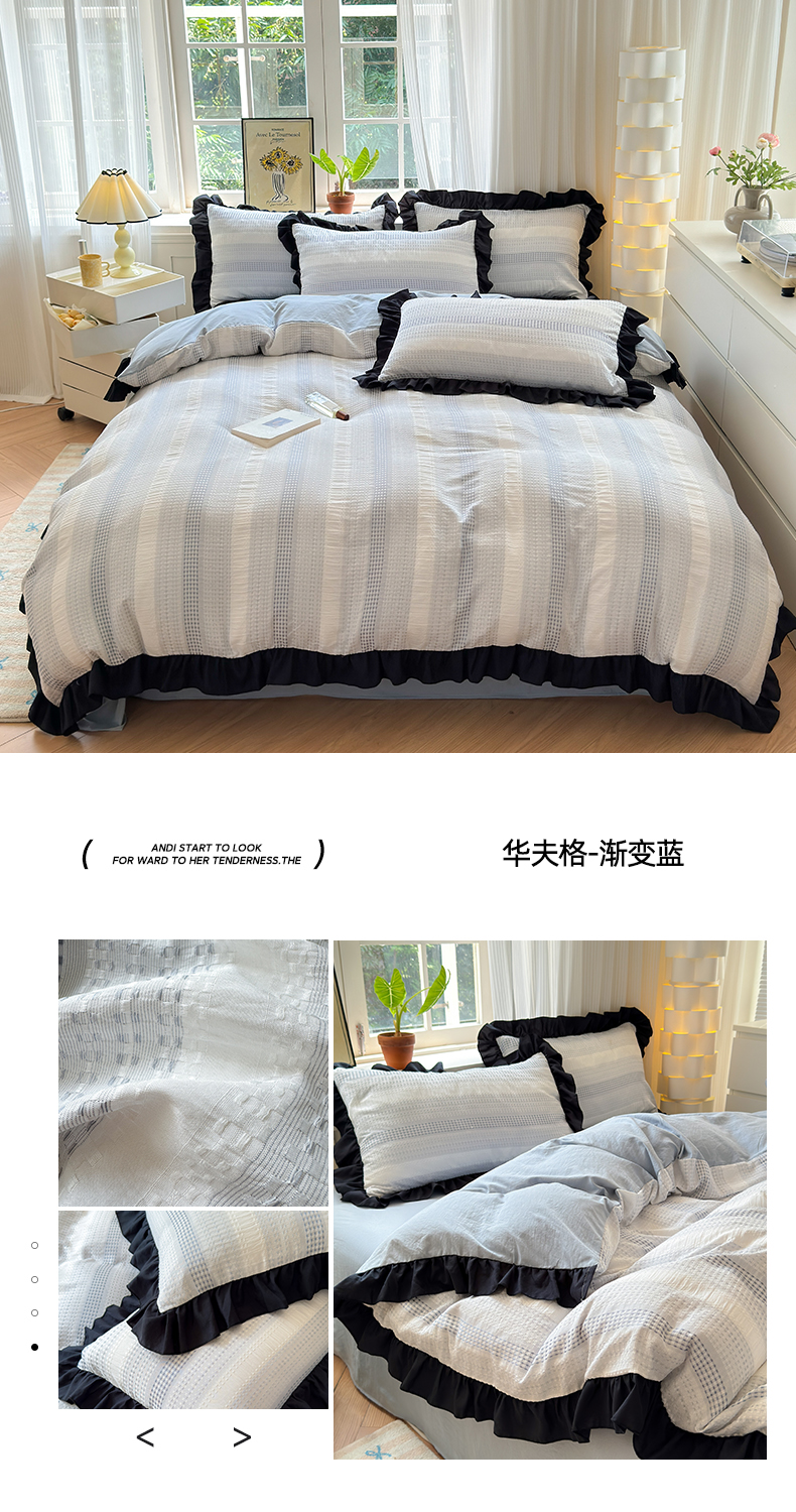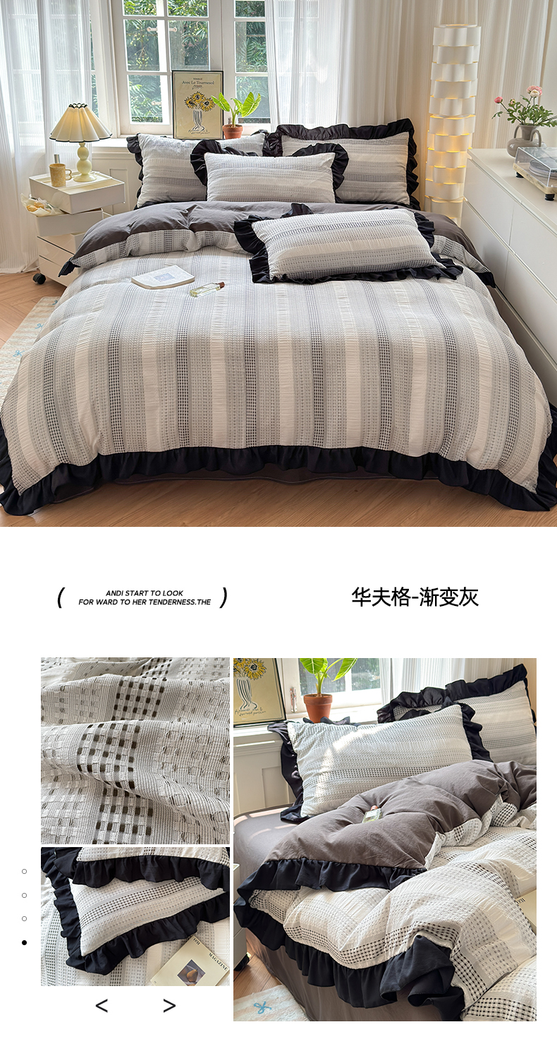 (总)老K (原美阁)2024新款法式华夫格渐变色水洗棉韩版公主风四件套