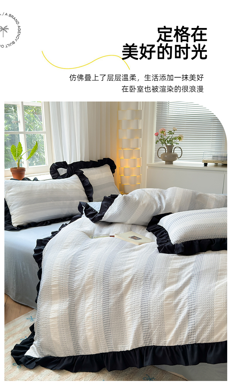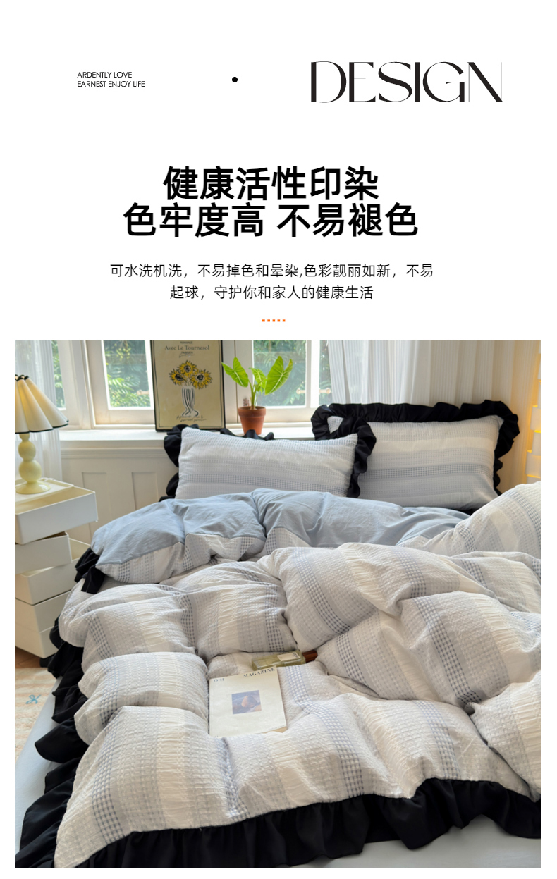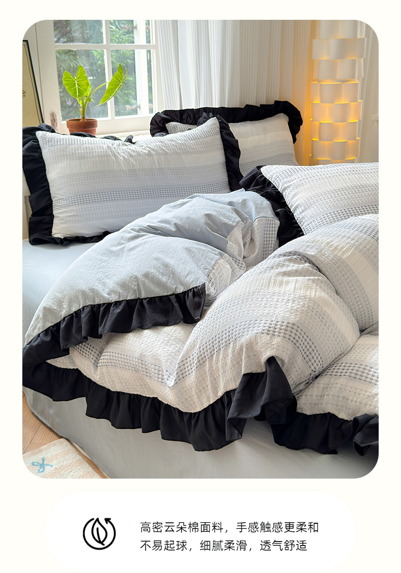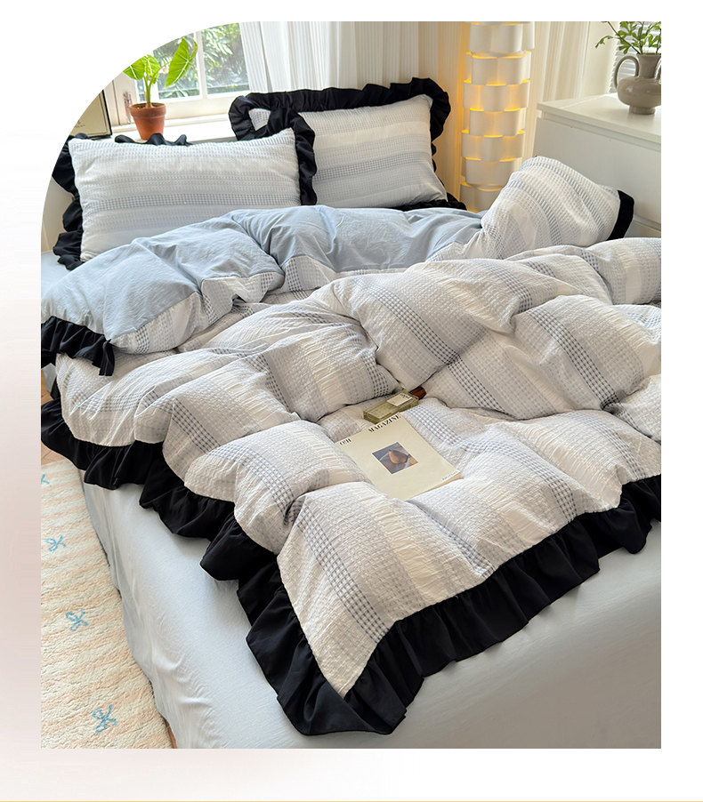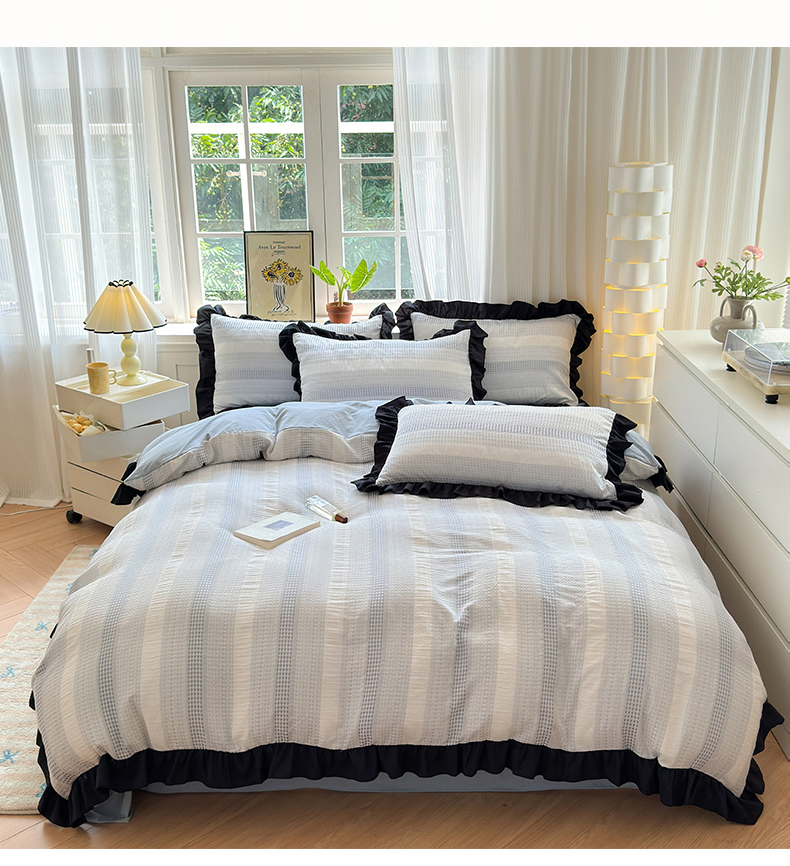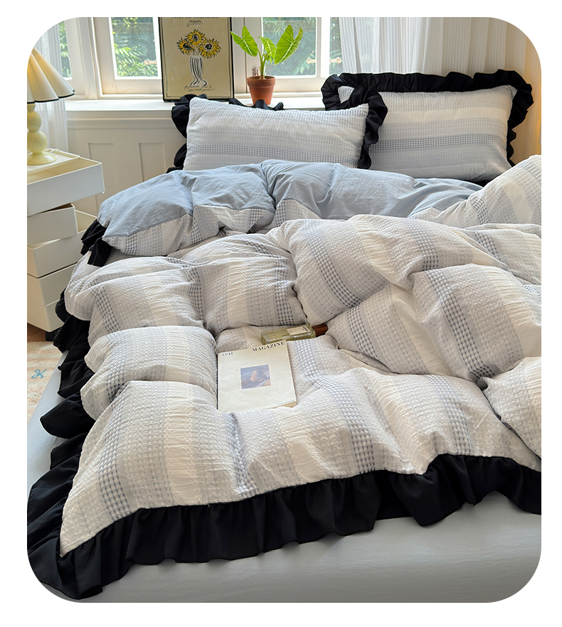 (总)老K (原美阁)2024新款法式华夫格渐变色水洗棉韩版公主风四件套