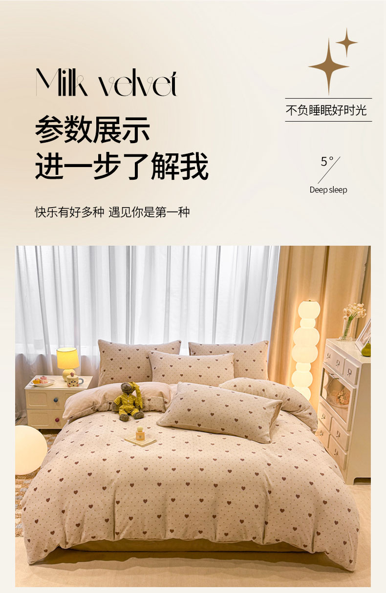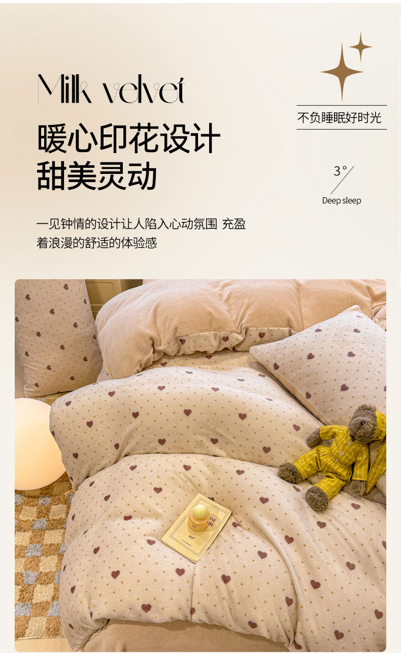二八年华 2024新款暖心系列高克重牛奶绒四件套 暖心-奶咖