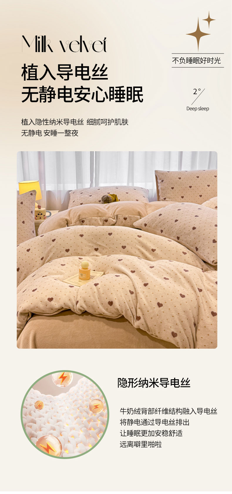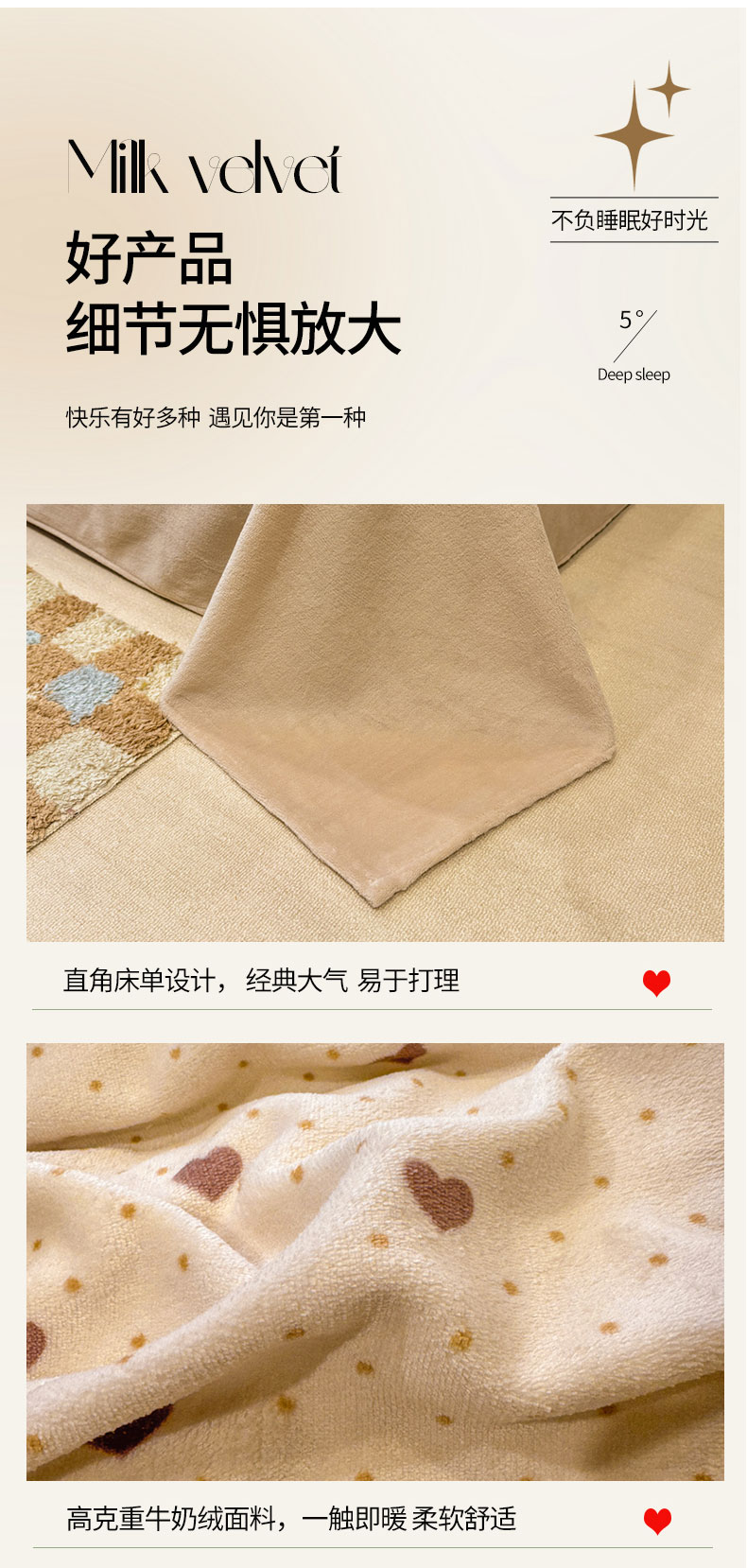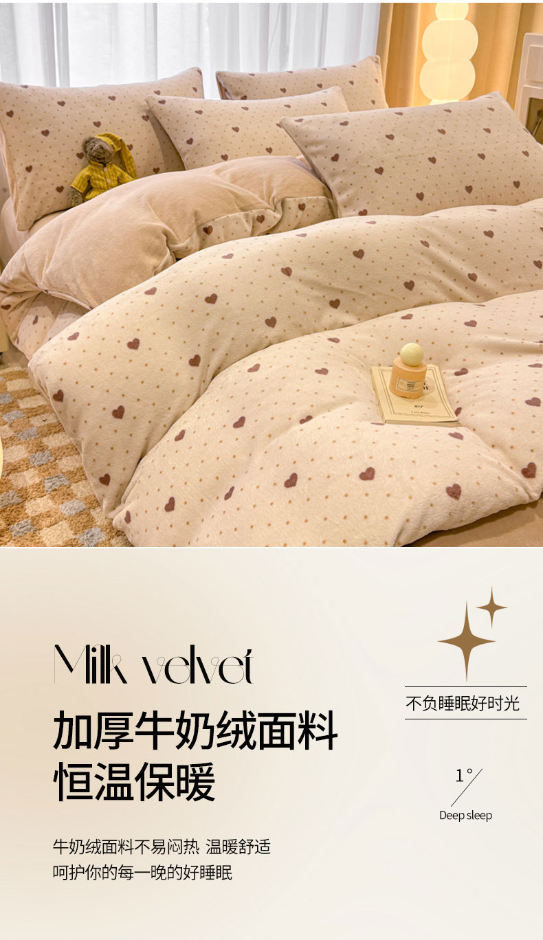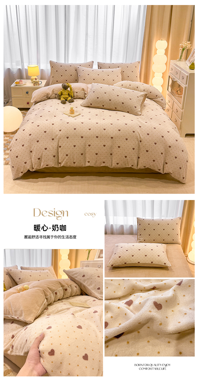 商品名称:二八年华 2024新款暖心系列高克重牛奶绒四件套 暖心-奶咖