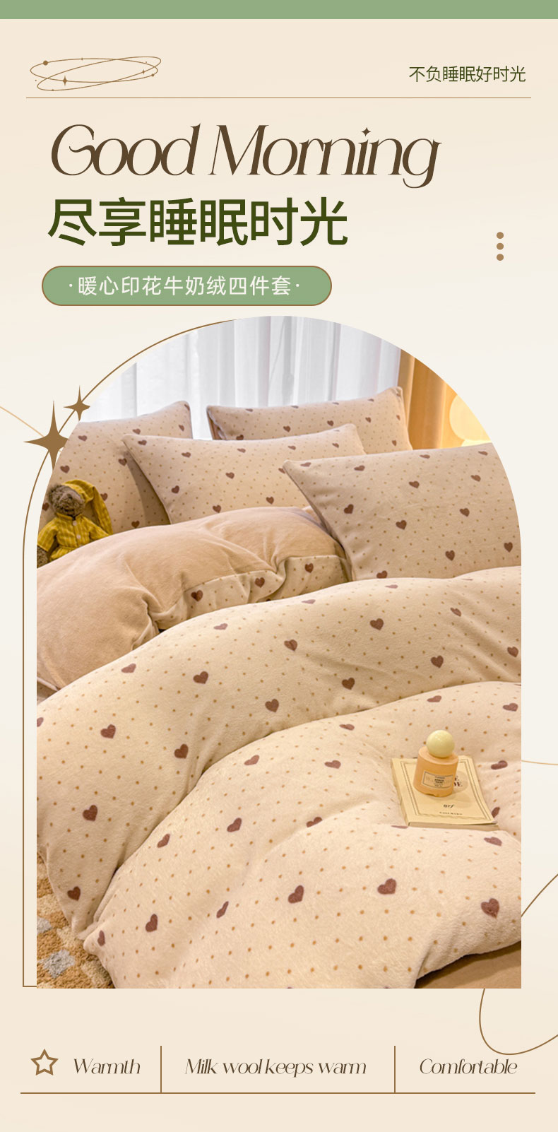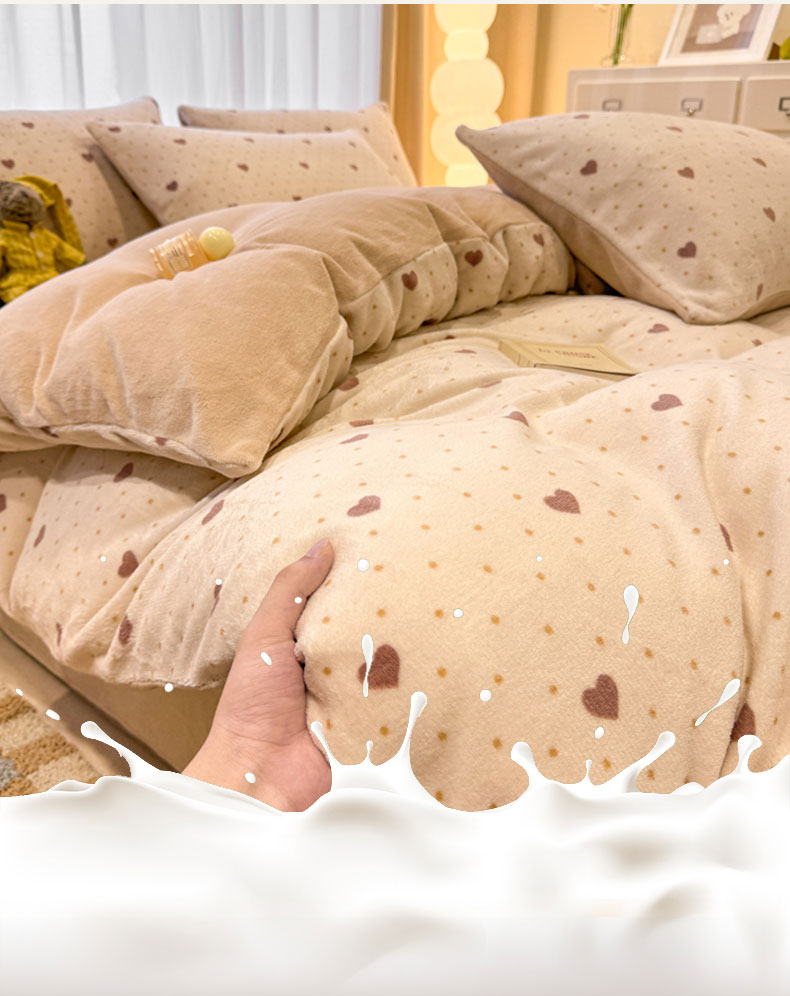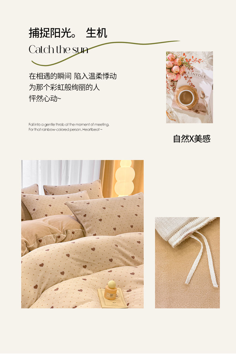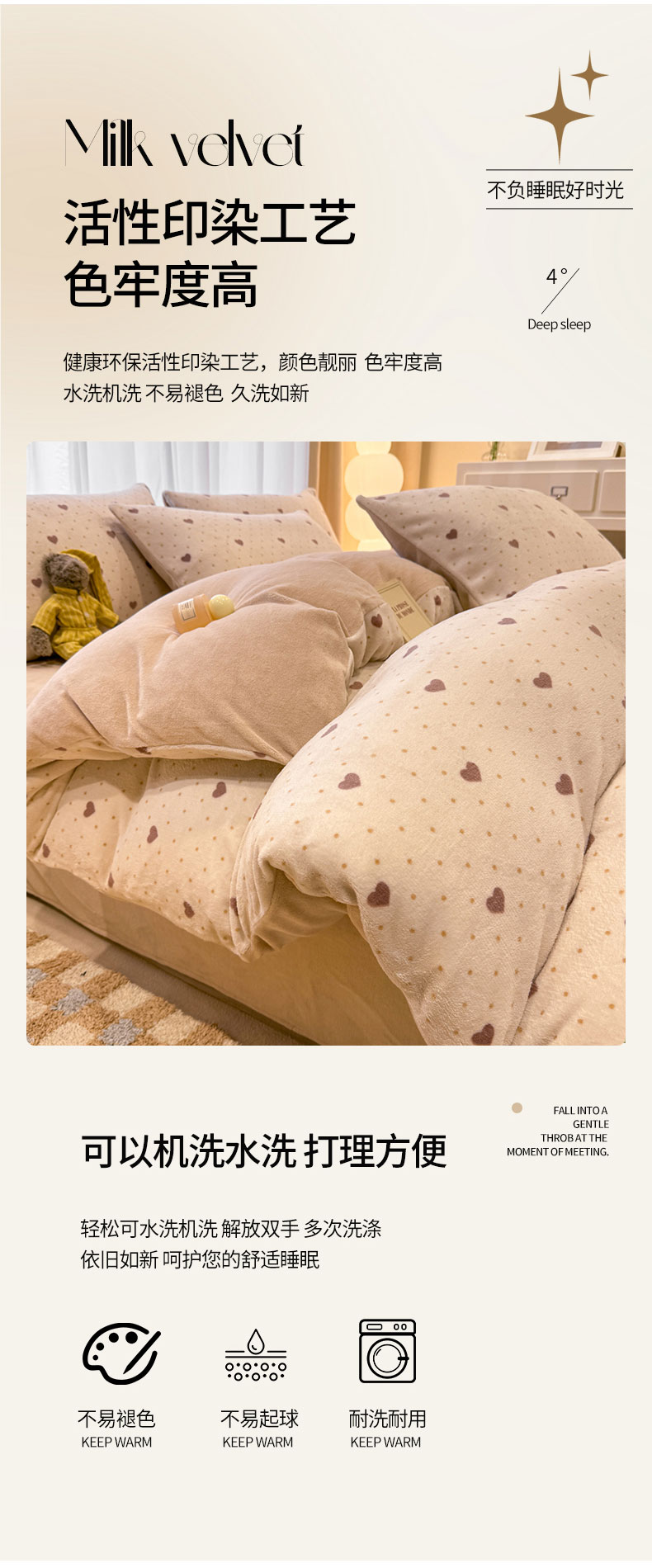 商品名称:二八年华 2024新款暖心系列高克重牛奶绒四件套 暖心-奶咖