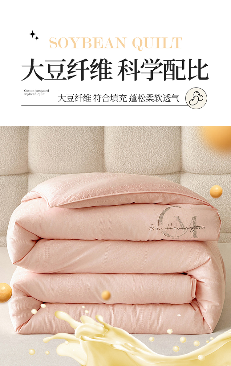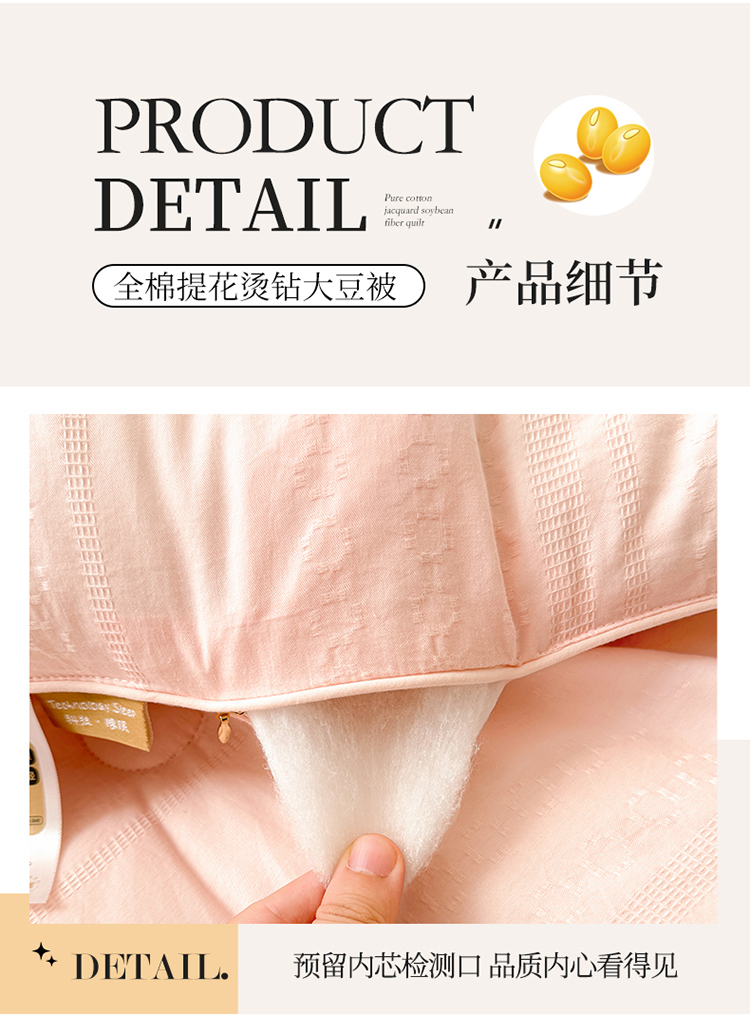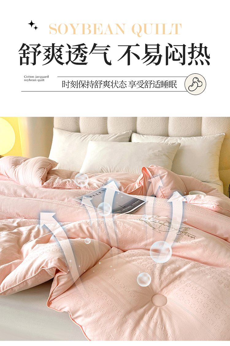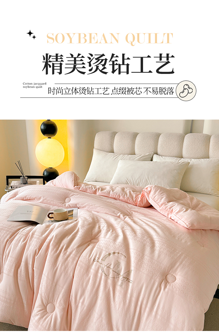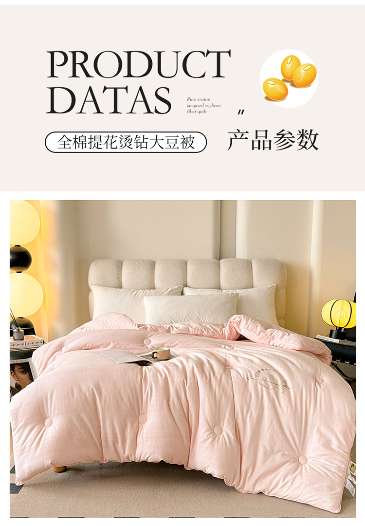 商品名称:2024新款提花冬被全棉冬被烫钻冬被滚绳被子被芯四季被春秋被夏被大豆被 素雅 淡粉