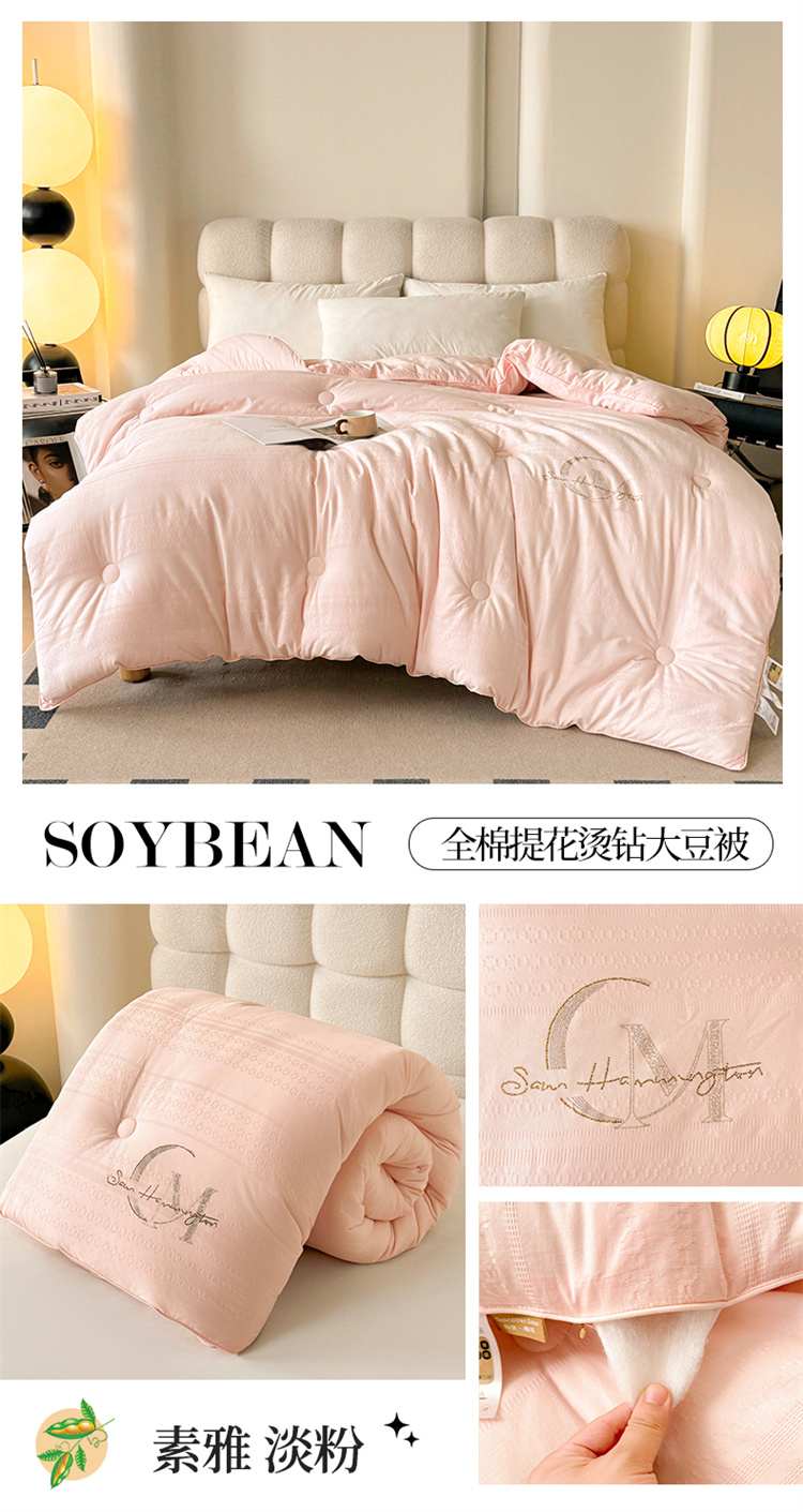 2024新款提花冬被全棉冬被烫钻冬被滚绳被子被芯四季被春秋被夏被大豆被 素雅 淡粉