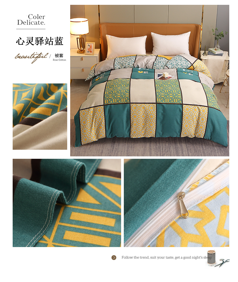 商品名称:晶缦家纺 2024新款典雅系-全棉活性磨毛多规格单品被套 心灵驿站蓝