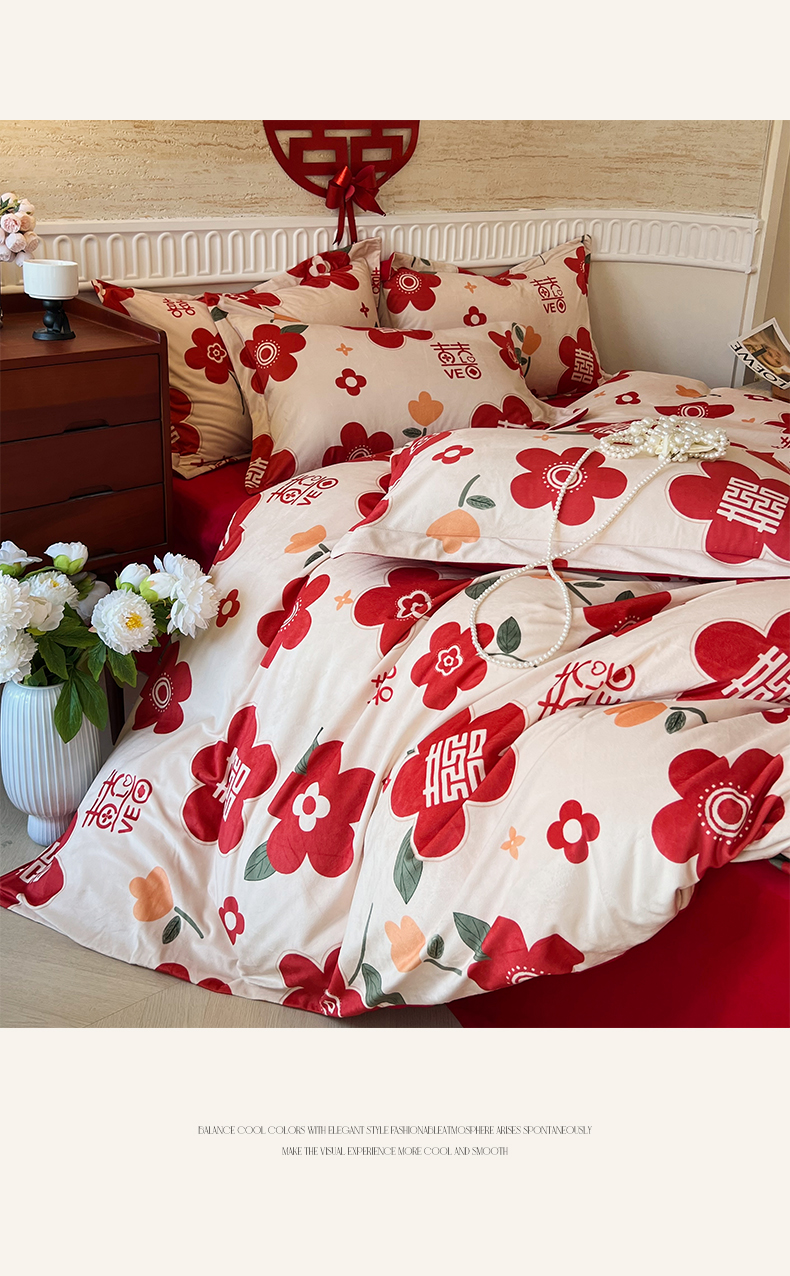 慕希家纺 2024新款A类婚庆款宝宝绒数码印花四件套 喜事临门