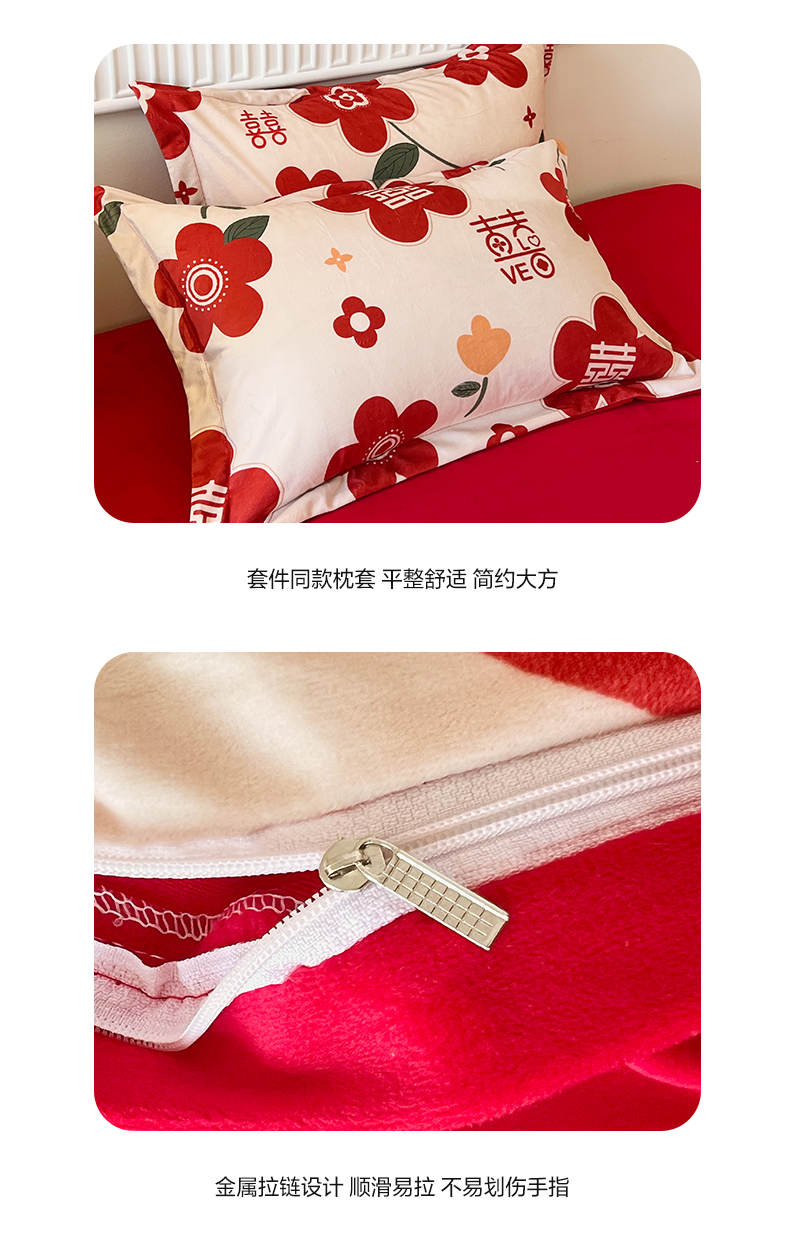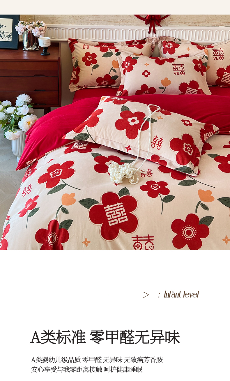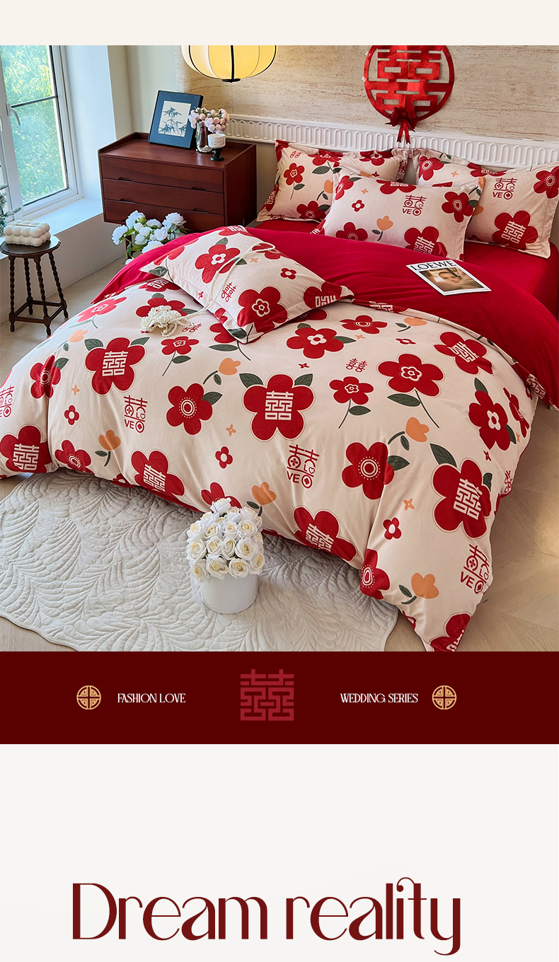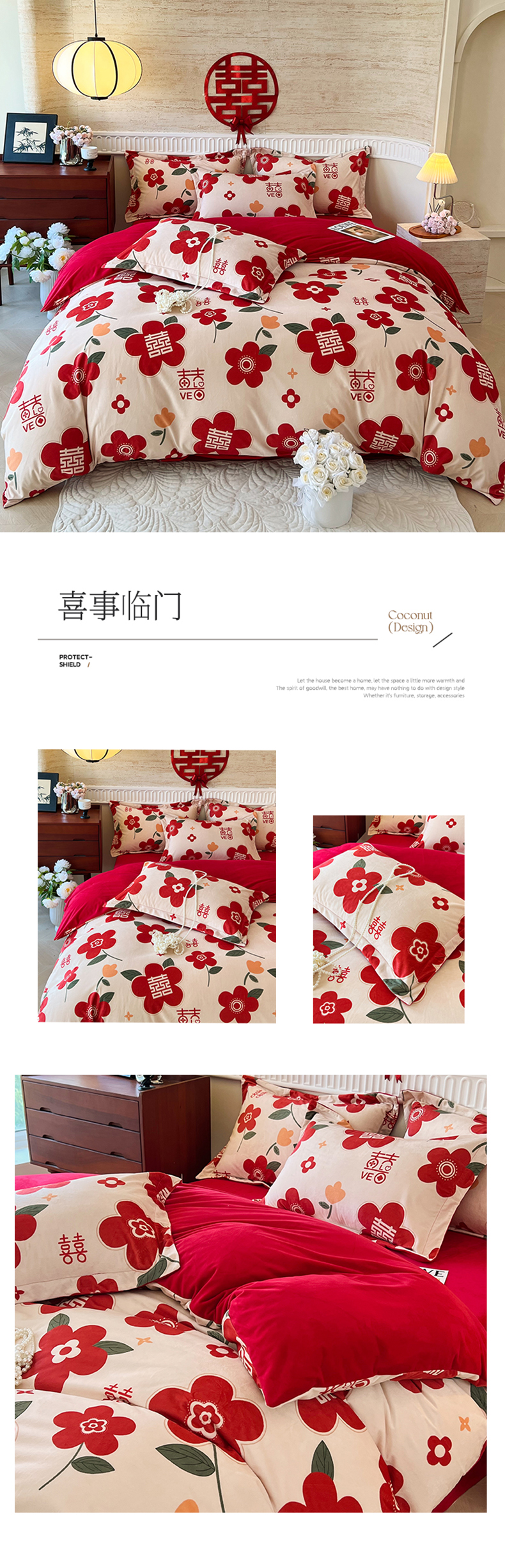 商品名称:慕希家纺 2024新款A类婚庆款宝宝绒数码印花四件套 喜事临门