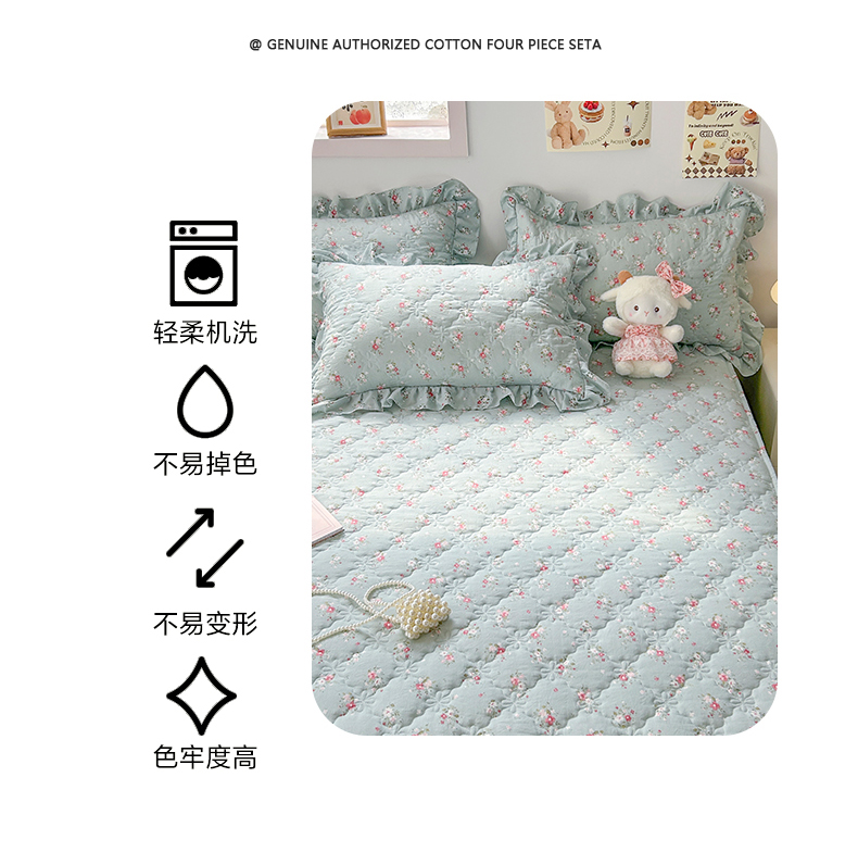 商品名称:忘忧草 2024亲肤水洗棉夹棉床裙--小清新系列 陌上花开